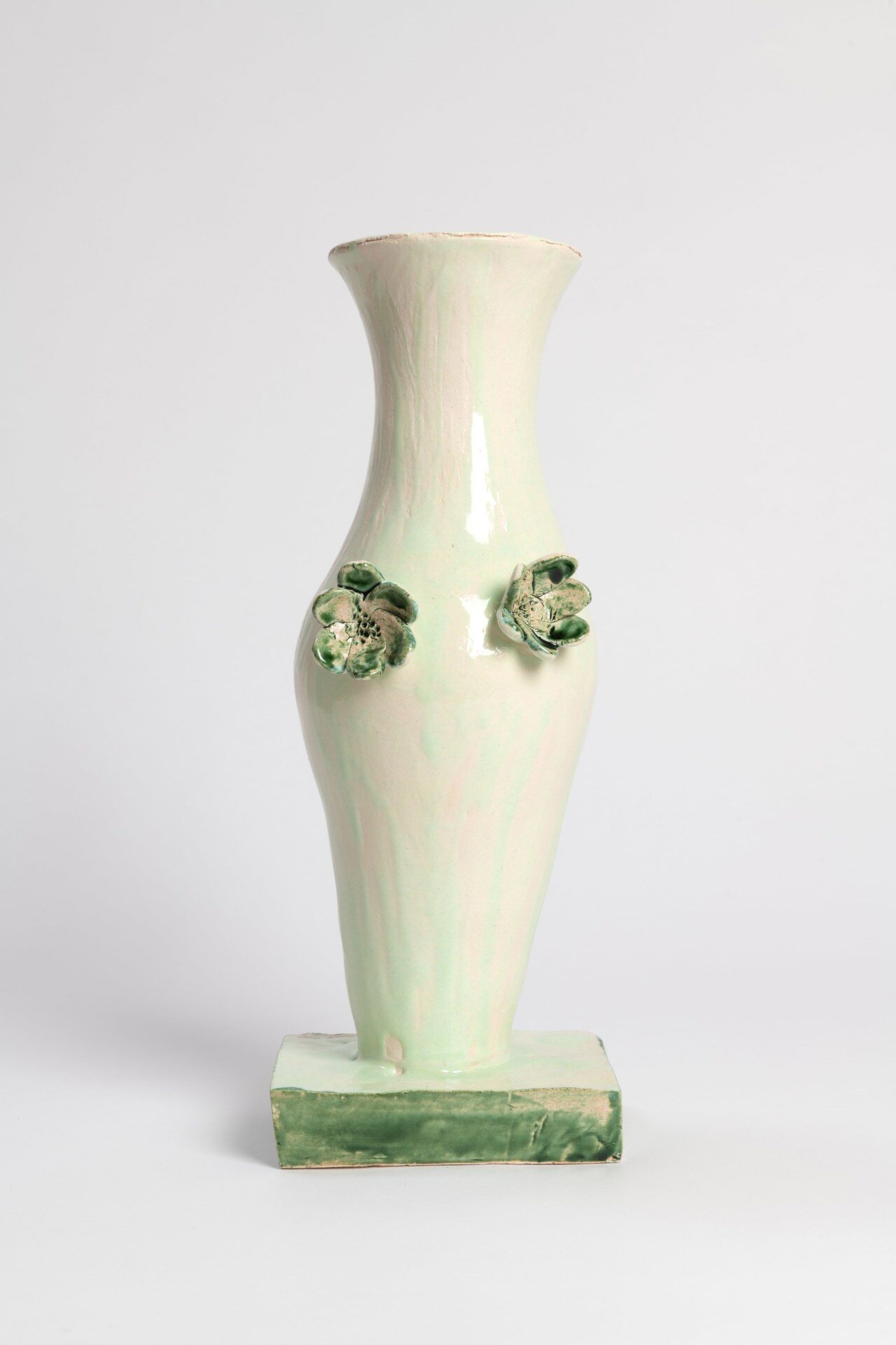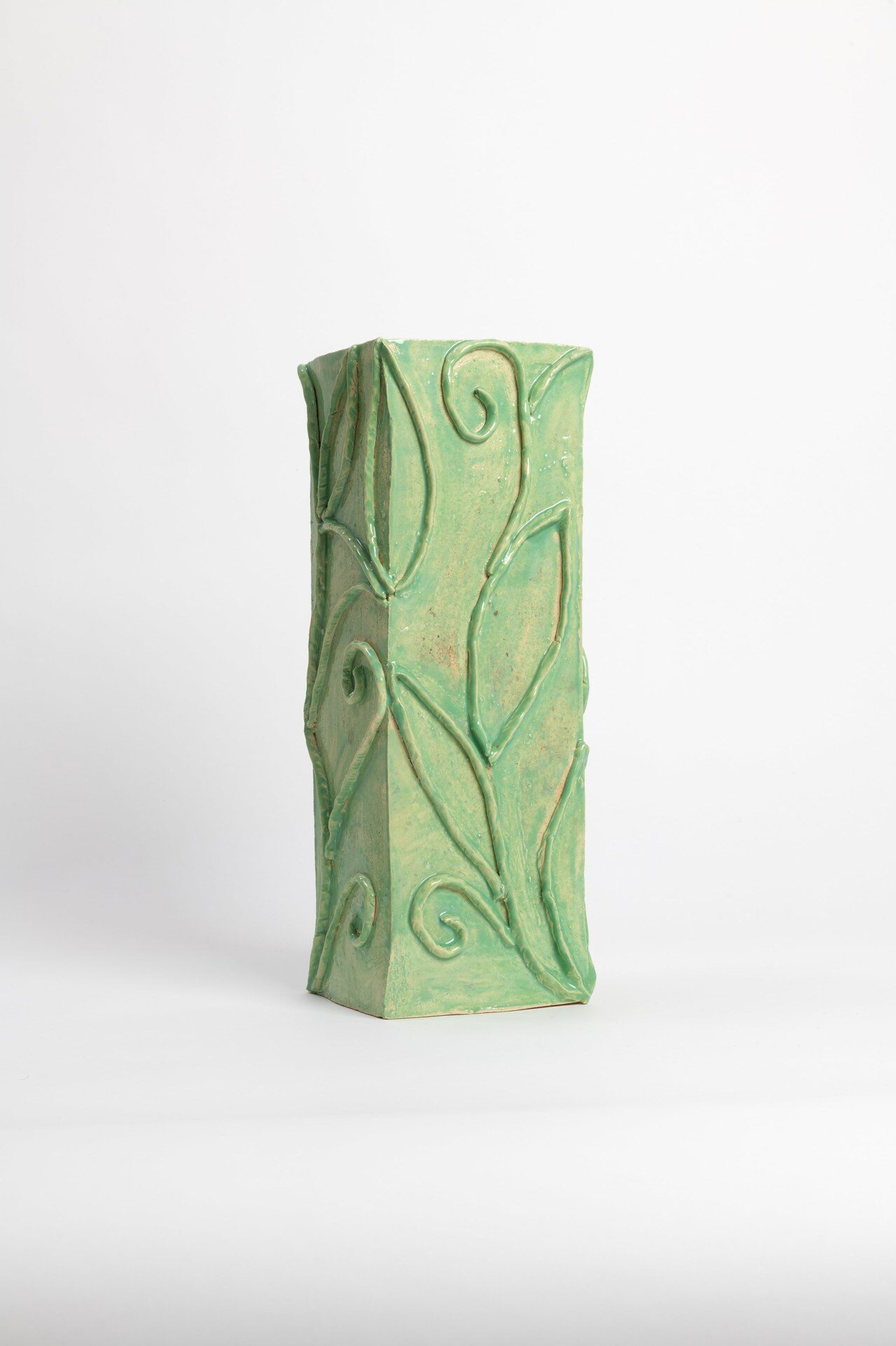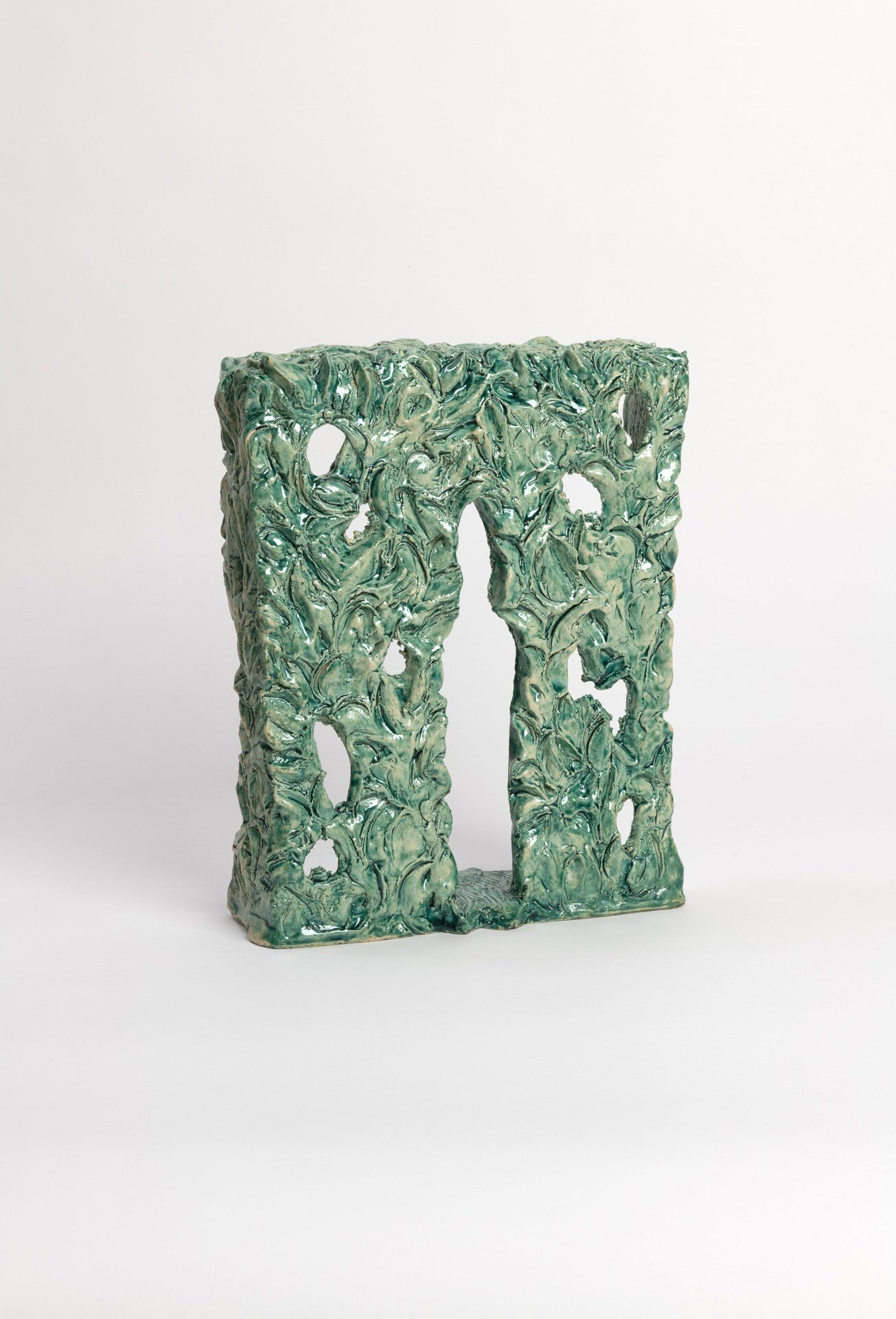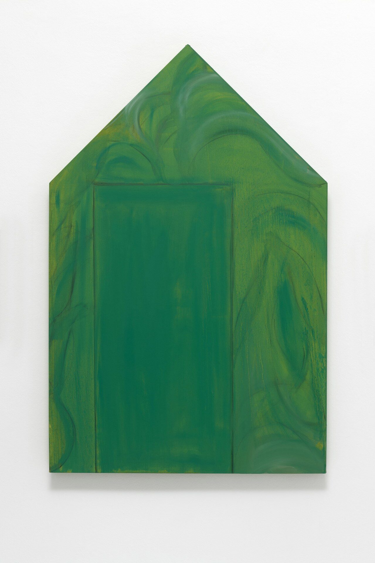 The title of the exhibition, grünende (greening), refers not only to green as a color but also to greening as an activity in nature—and an expression of growth and transformation. Ovid’s Metamorphosis vividly describes Daphne’s transformation into a tree: “…Her hair to leaves, her arms extend to boughs…” Rößner presents paintings and ceramics in shades of green.