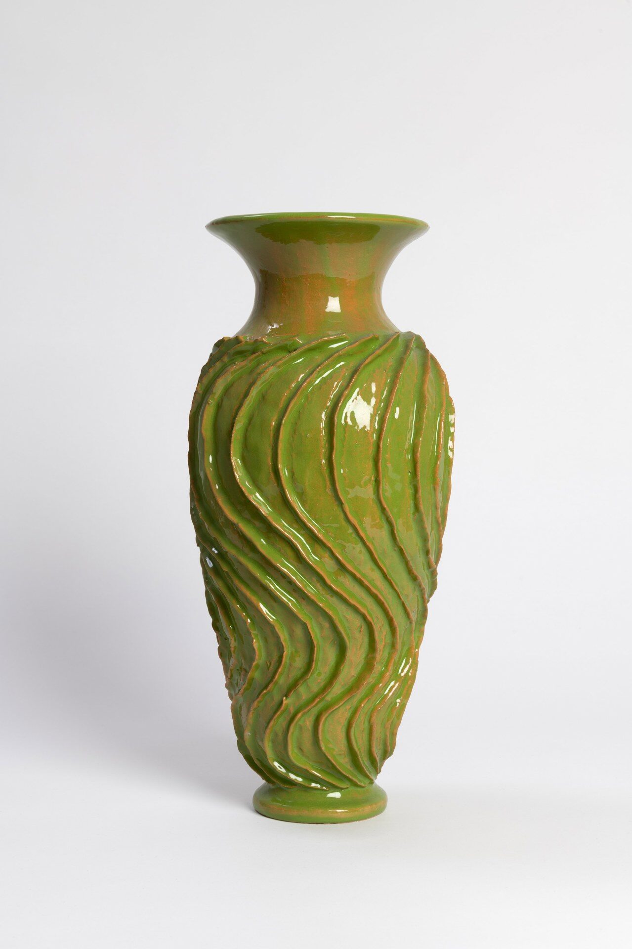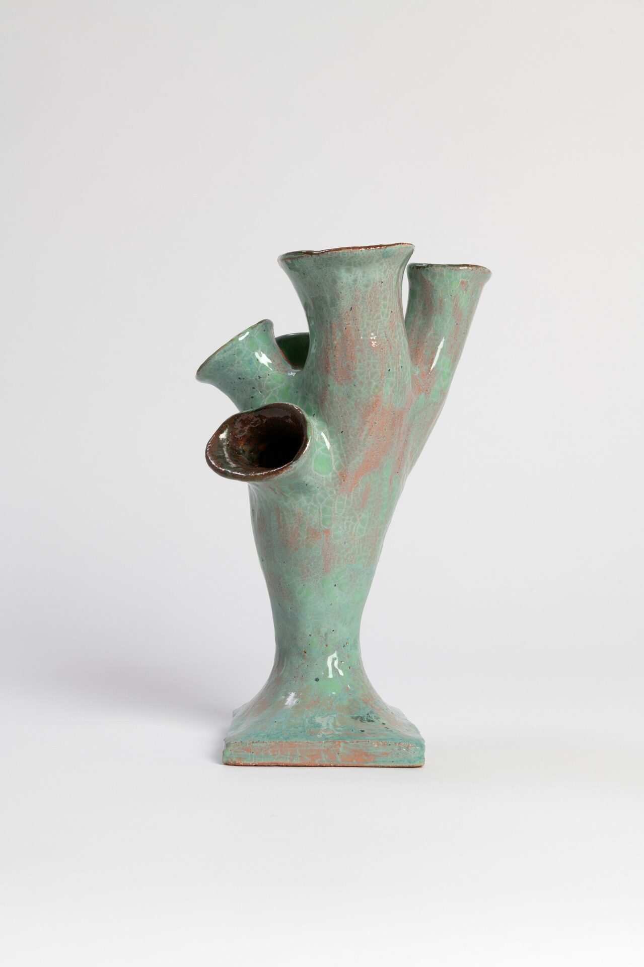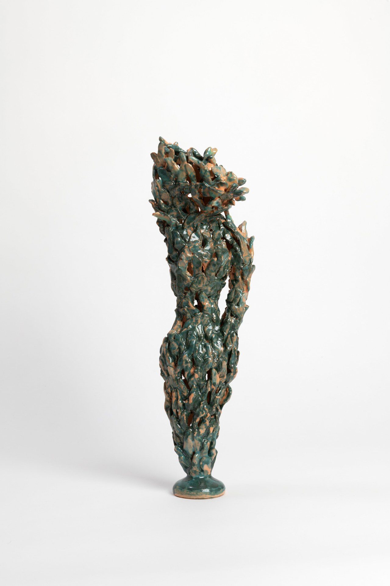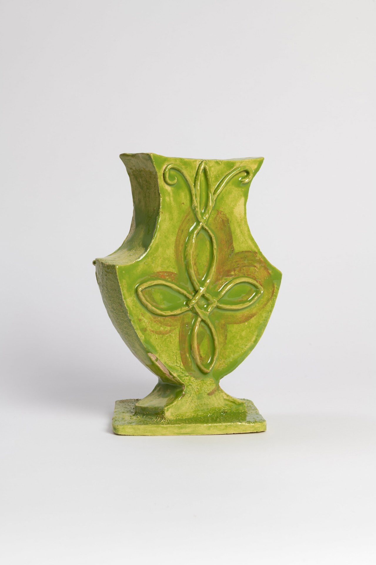 The title of the exhibition, grünende (greening), refers not only to green as a color but also to greening as an activity in nature—and an expression of growth and transformation. Ovid’s Metamorphosis vividly describes Daphne’s transformation into a tree: “…Her hair to leaves, her arms extend to boughs…” Rößner presents paintings and ceramics in shades of green.
