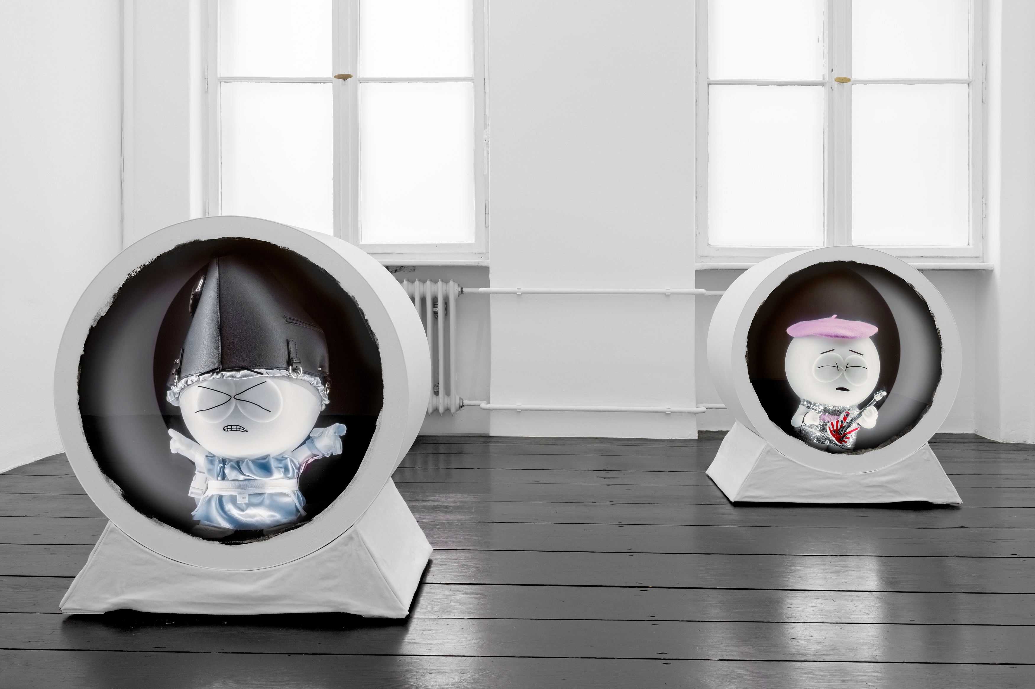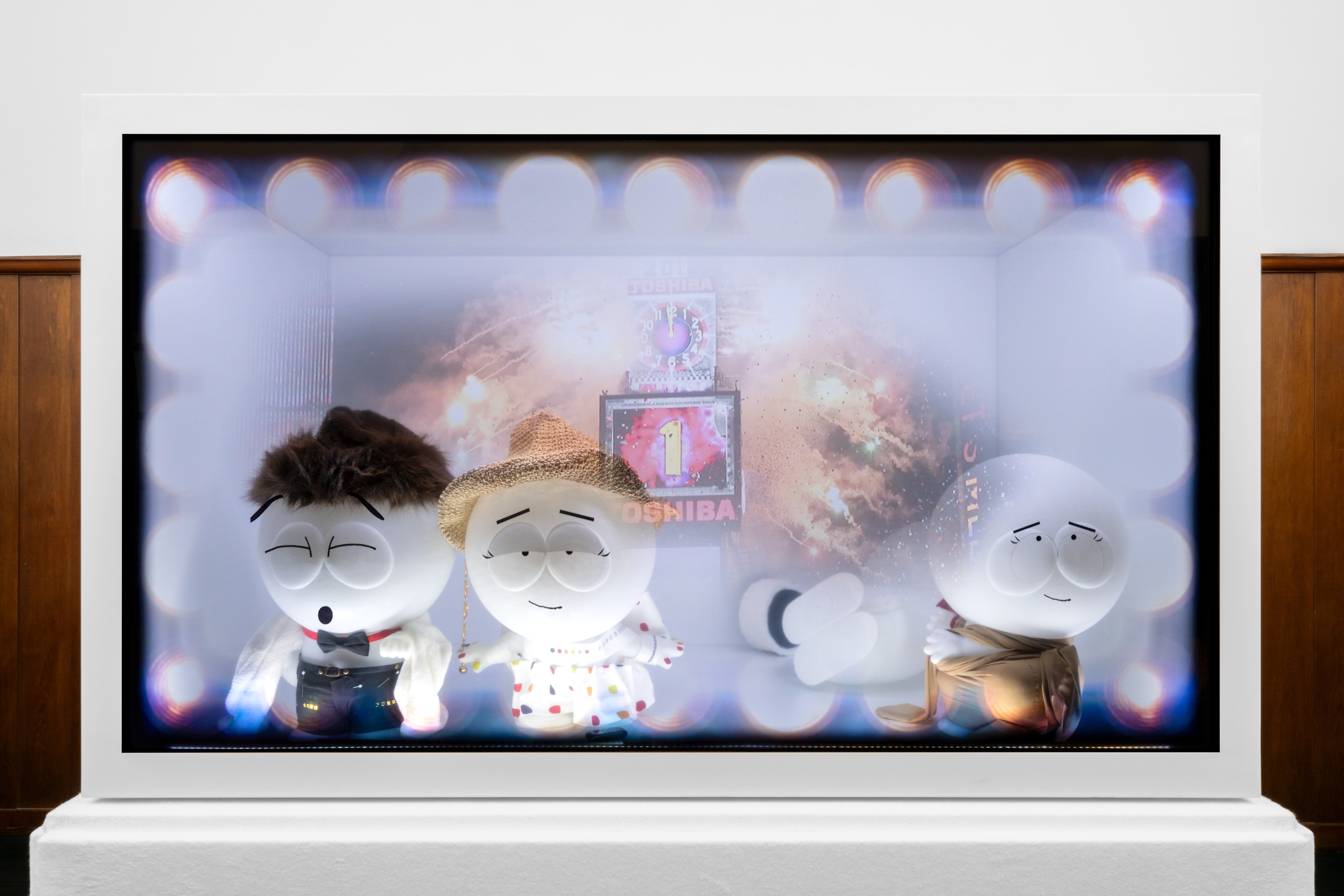 Eventually apathy gave way to dressing them up in some flashy clothing, giving them hobbies, talk shows. (Please avoid bright light) Once the curing time was complete, the blobs seemed ready to party, so the TV cabinets received their own upgrade into larger boxes and tubes. Consequently, we have giant playsets, or rather playsets for oversized children.