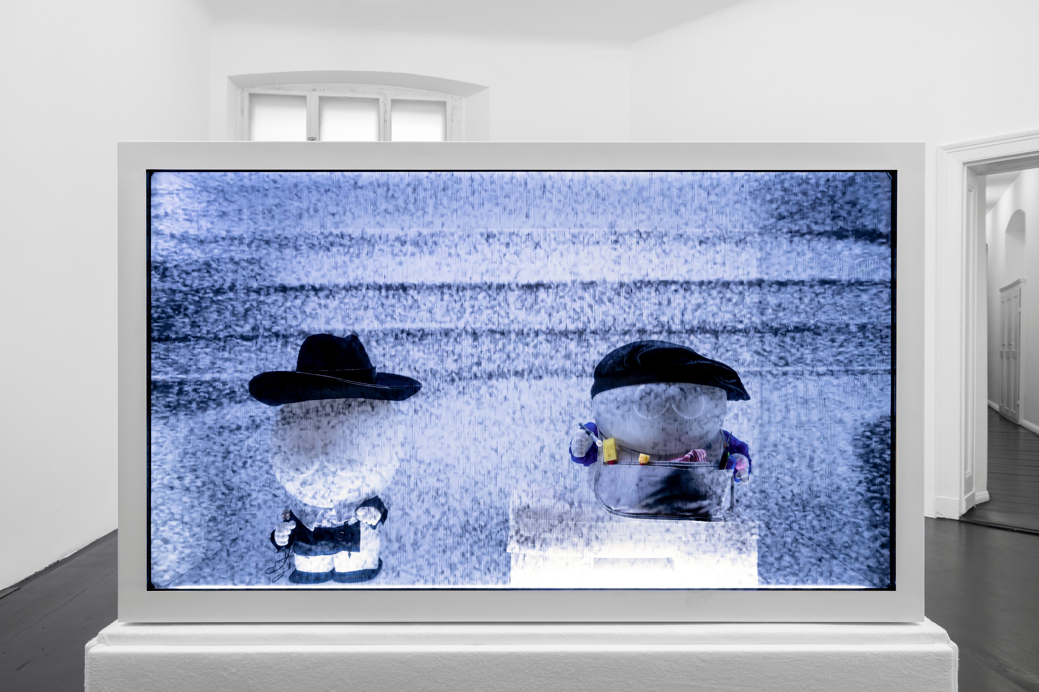There is a problem in the celestial test tube, the crystals in our TVs have a life of their own. Normally they would be in a more relaxed phase, but recently their globules have grown at an incalculable rate, creating their own sort of crude mindfulness. This was all a bit alarming, we generally always avoided working with the bodily figure, but maybe we are warming up a bit after years of working with the more automatic forms of toy design.