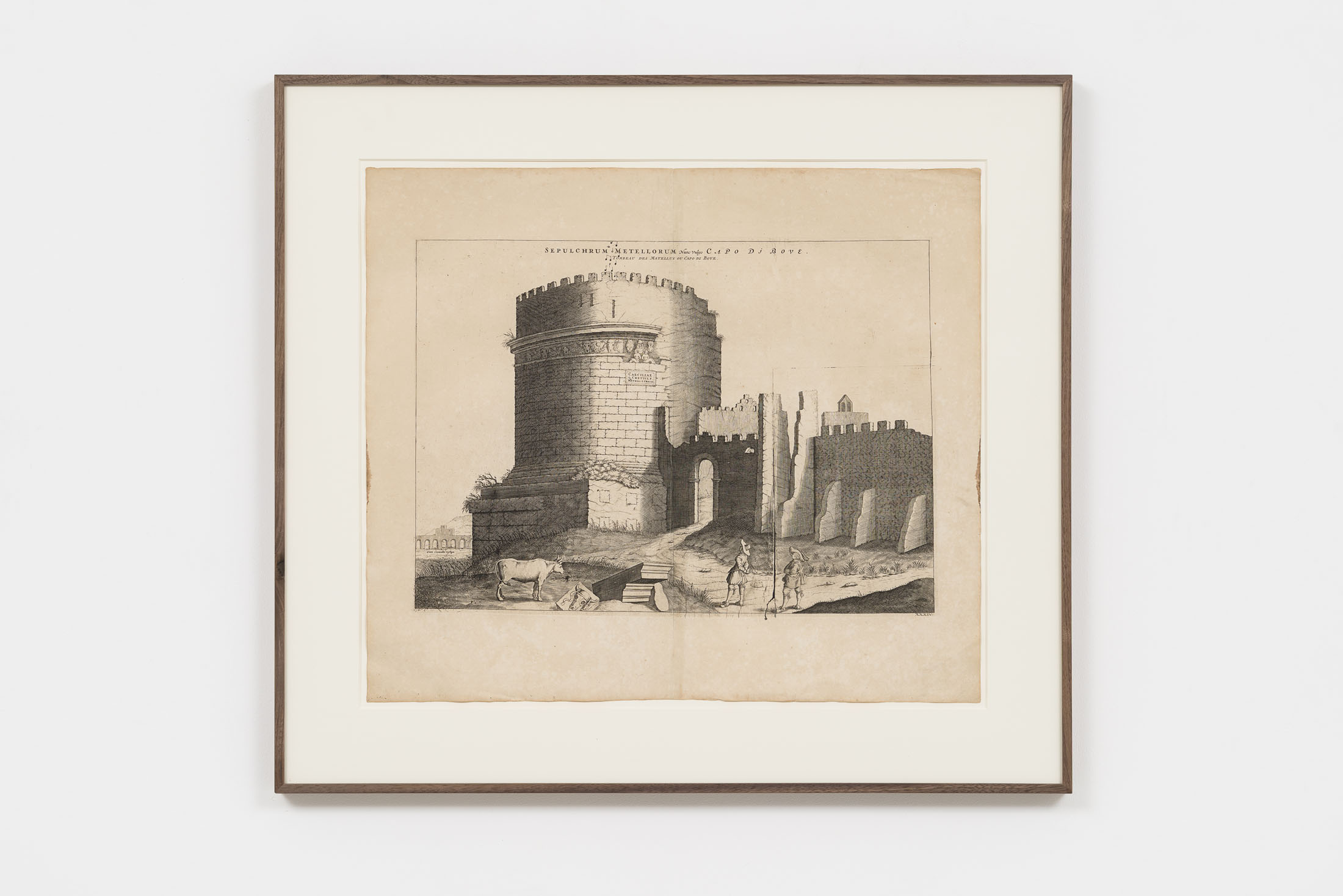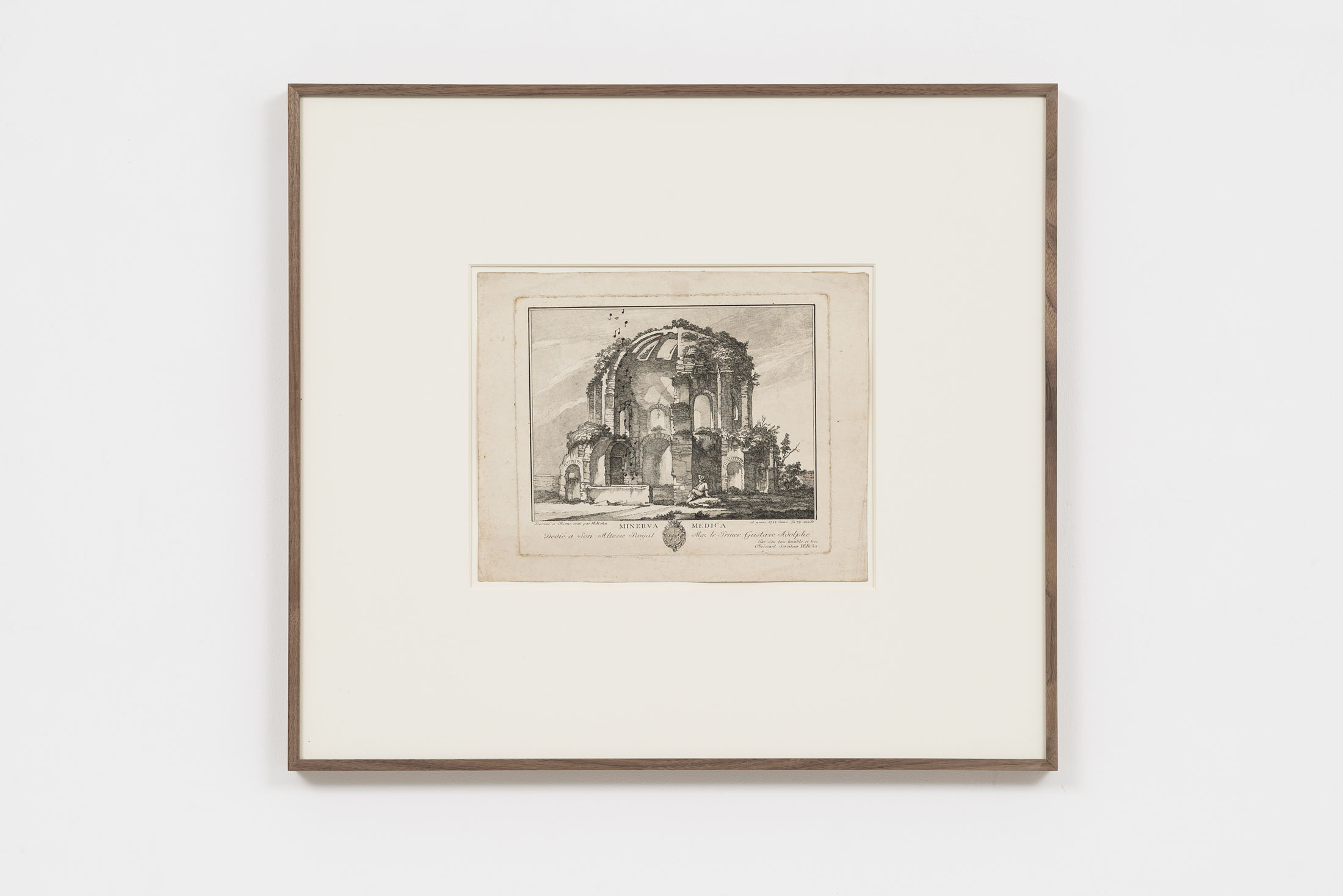 Since the late 1980s, Luca Vitone’s artistic practice has investigated the layered identity of places, exploring their geographical, political, social, and poetic dimensions. His works often take the form of conceptual portraits of places, constructed with site-specific materials, dust, pigments, maps, sounds, that embody memory, tensions, and transformations. The Capricci series, initiated in 2005, continues along this trajectory, unfolding around prints, engravings, lithographs, and period postcards by various authors — from Giovanni Battista Piranesi to Alexandre Calame, Félix Benoist, Giovanni Volpato, Giuseppe Vasi, Pierre Mortier, and other anonymous artists — which Vitone transforms through the addition of musical notes drawn in ink.