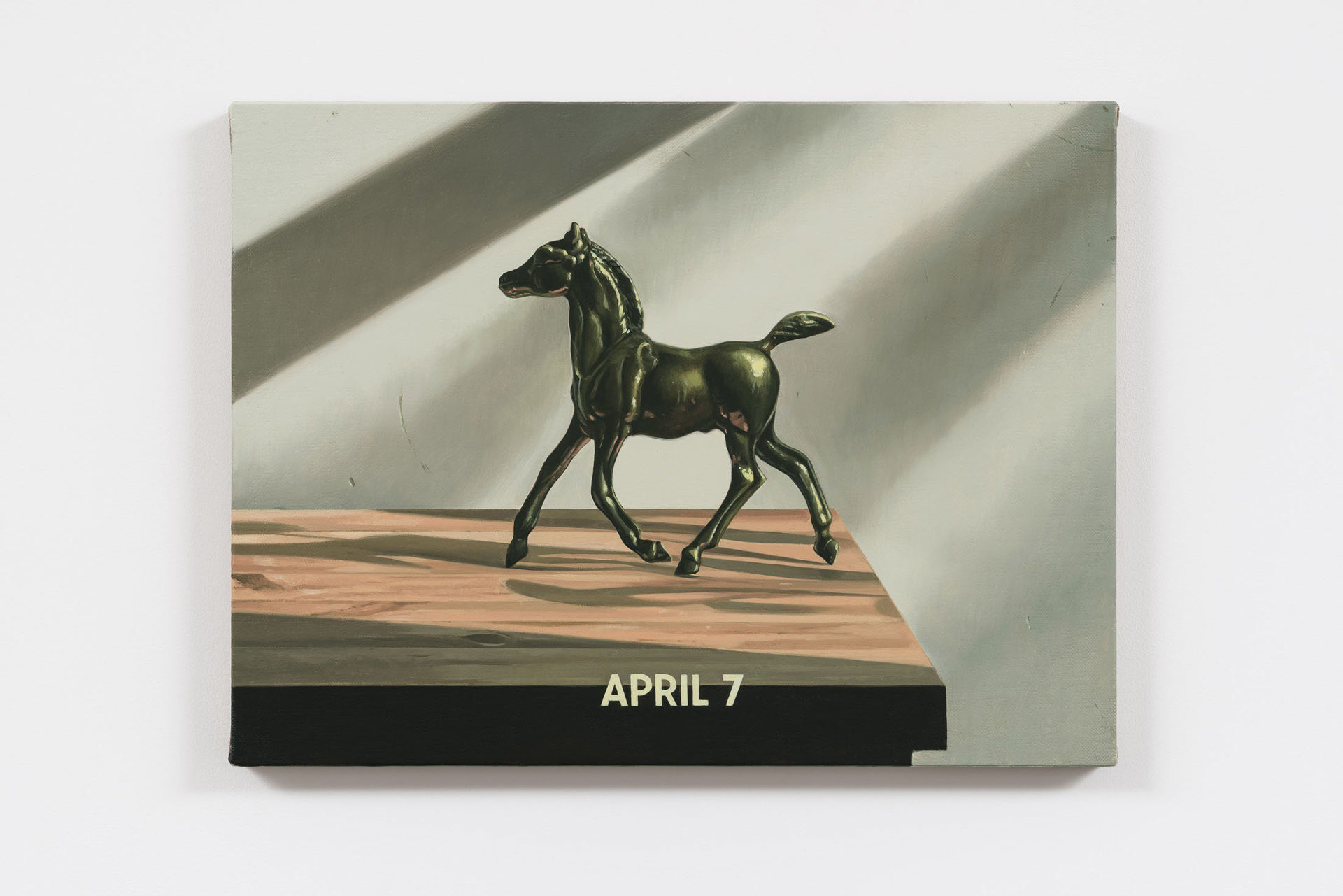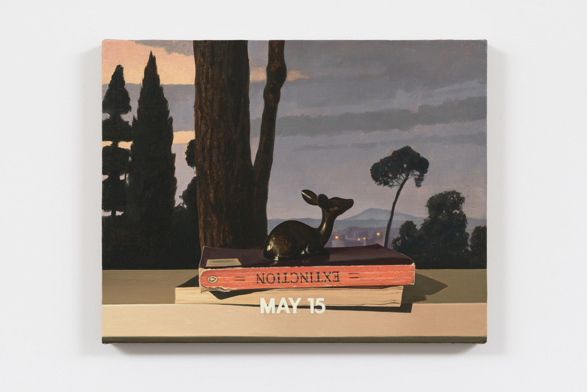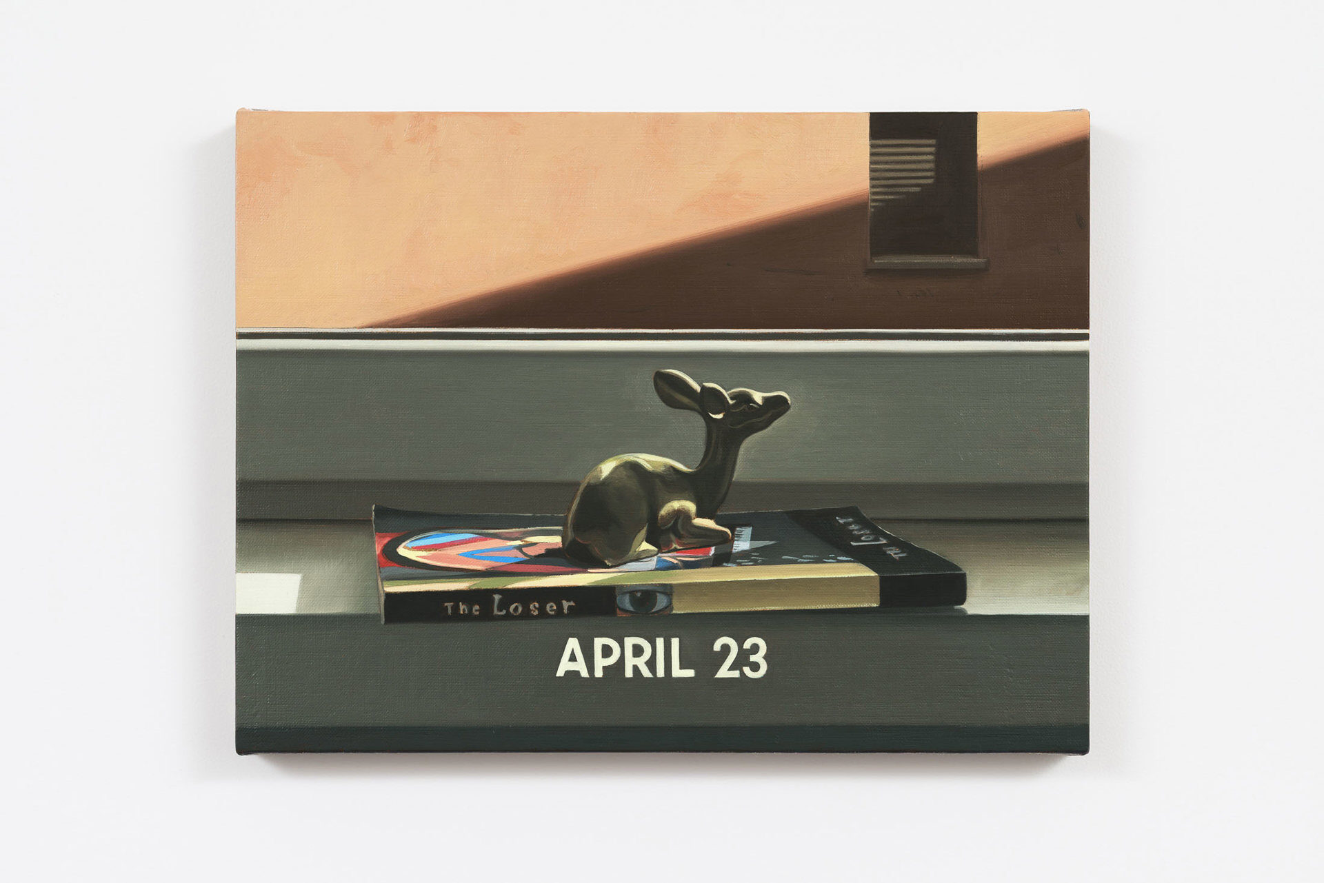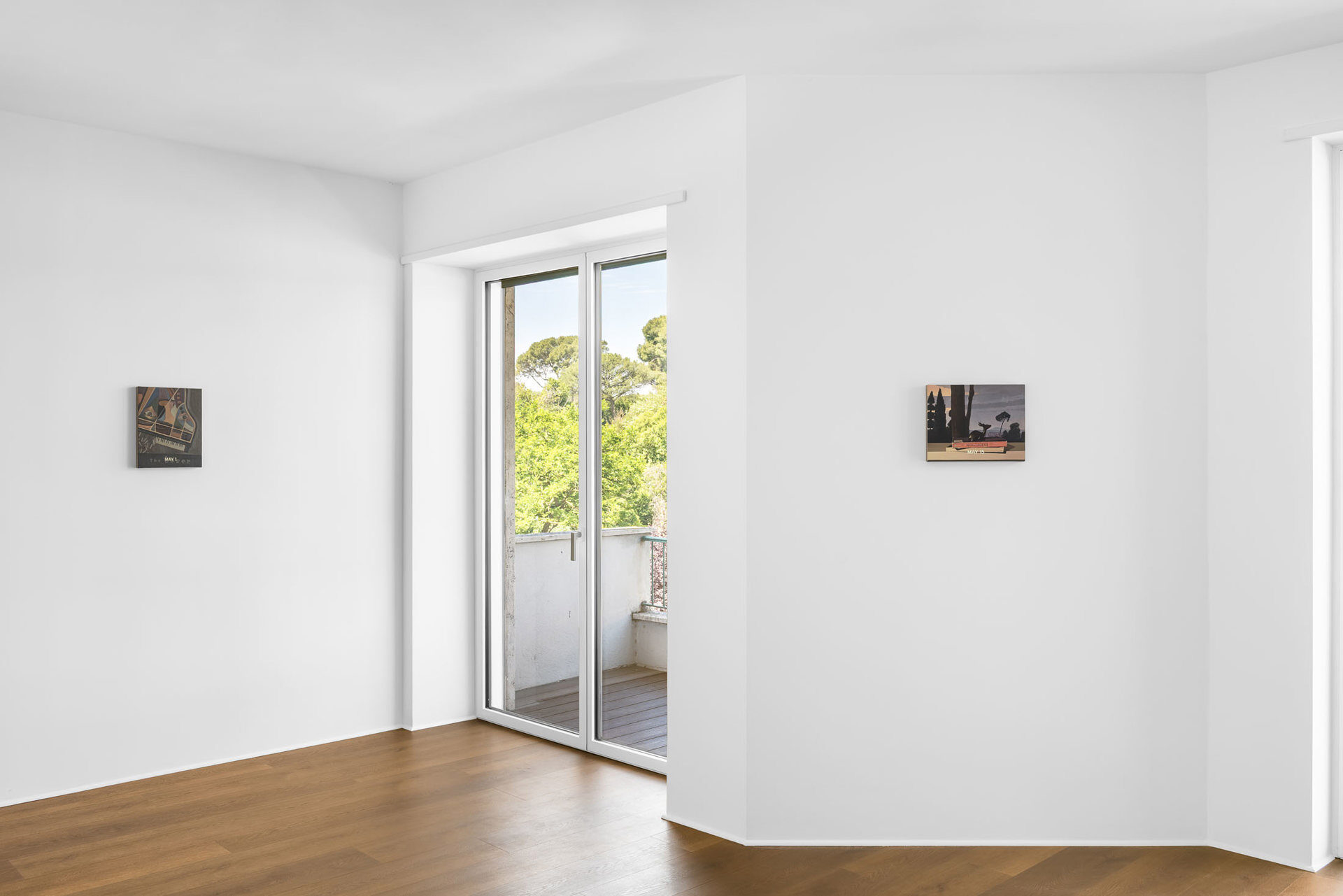 The show is composed by a series of five oil works created by the american artist Paul Rouphail during his five-week residency at the gallery’s space in Rome. Conceived as a visual diary, the series unfolds chronologically, with each painting titled by the date of its completion. This quiet yet evocative body of work reflects Rouphail’s ongoing exploration of the interior world, both physical and psychological, filtered through his temporary Roman surroundings. Inspired in part by the narrative rhythm of French New Wave cinema, particularly the films of Éric Rohmer and his recurring use of calendars as thematic anchors, the exhibition presents an ensemble of domestic interiors and still lifes that speak subtly to the passage of time. Among the recurring motifs: brass paperweights, windows, books, and fragments of calendar dates…
