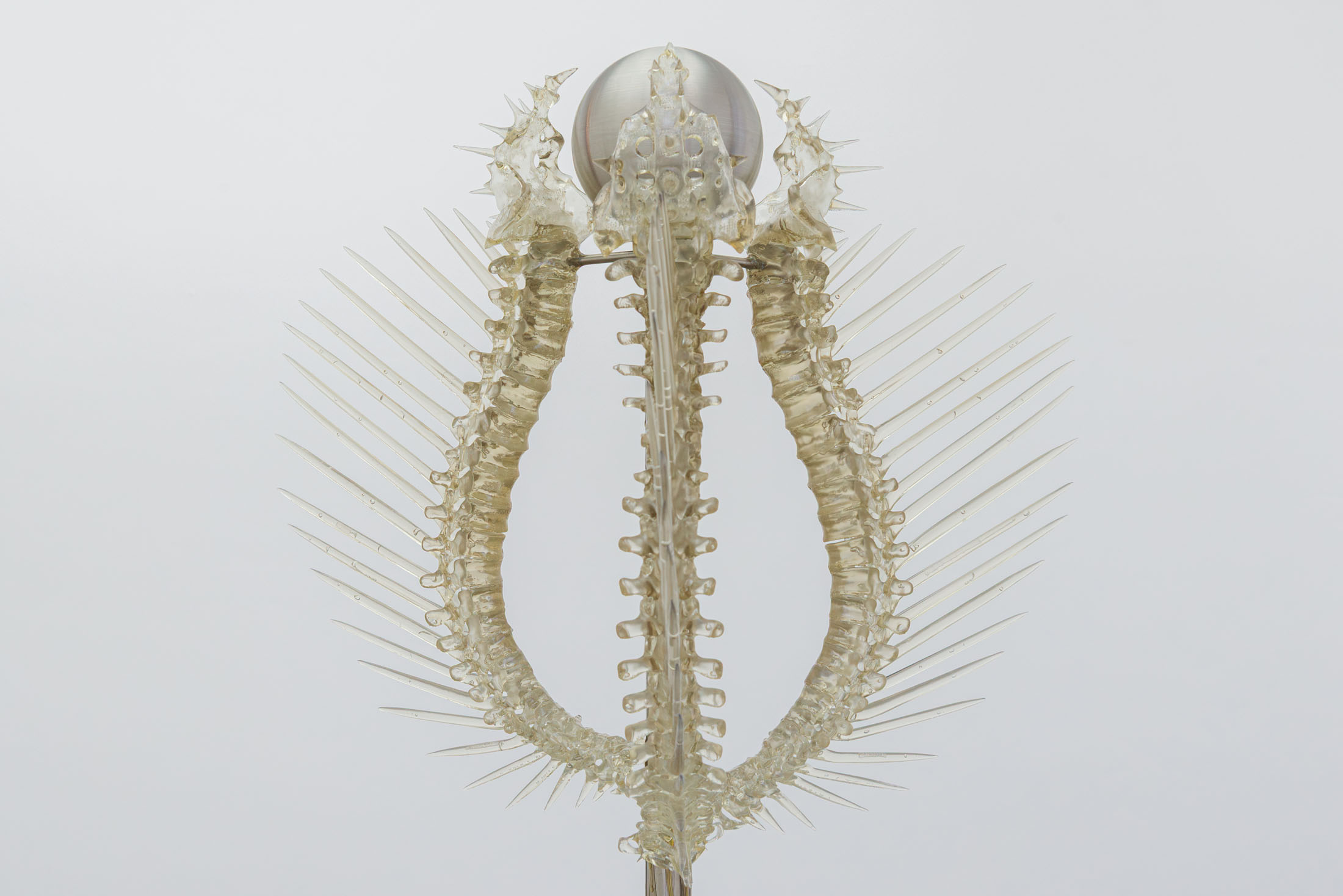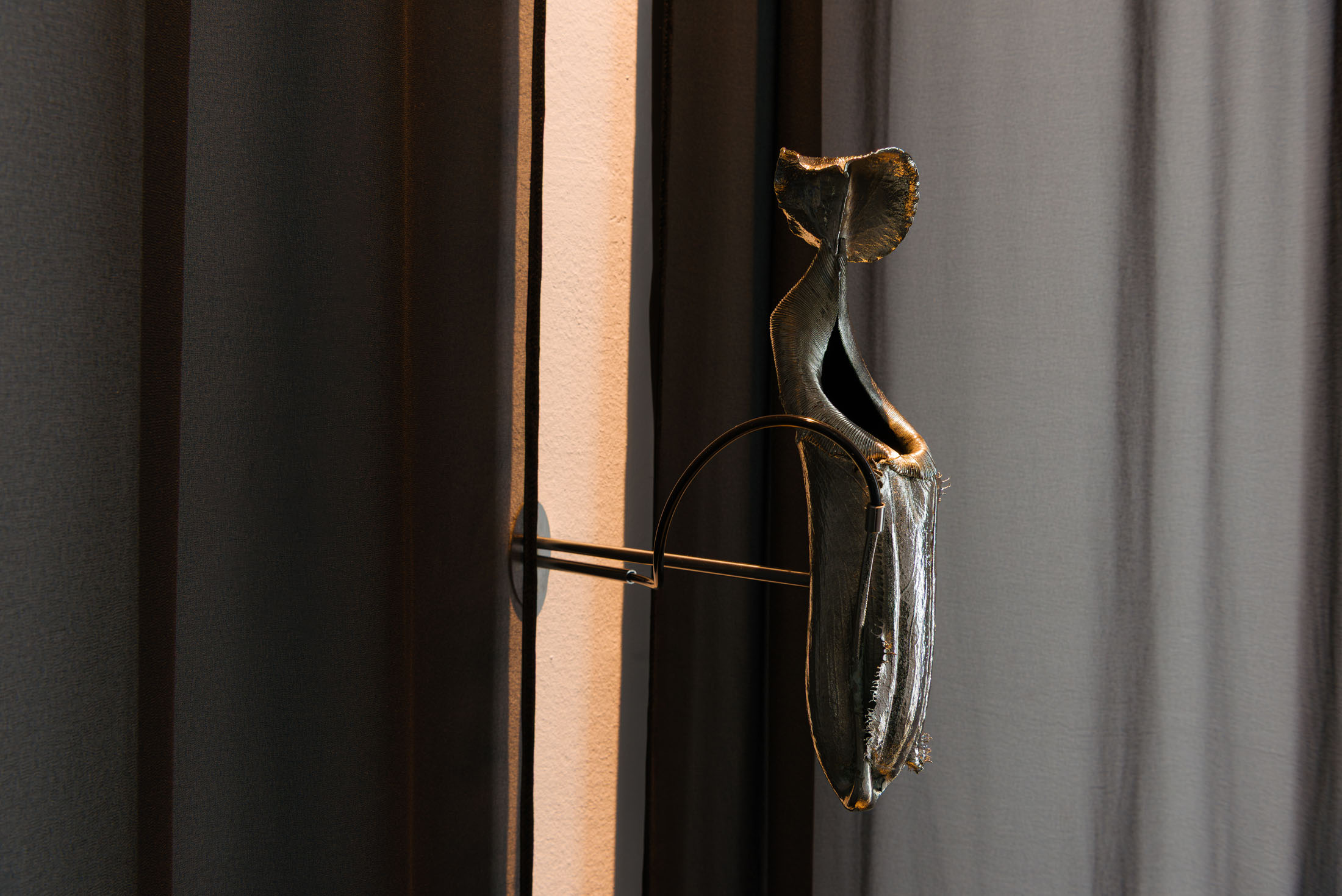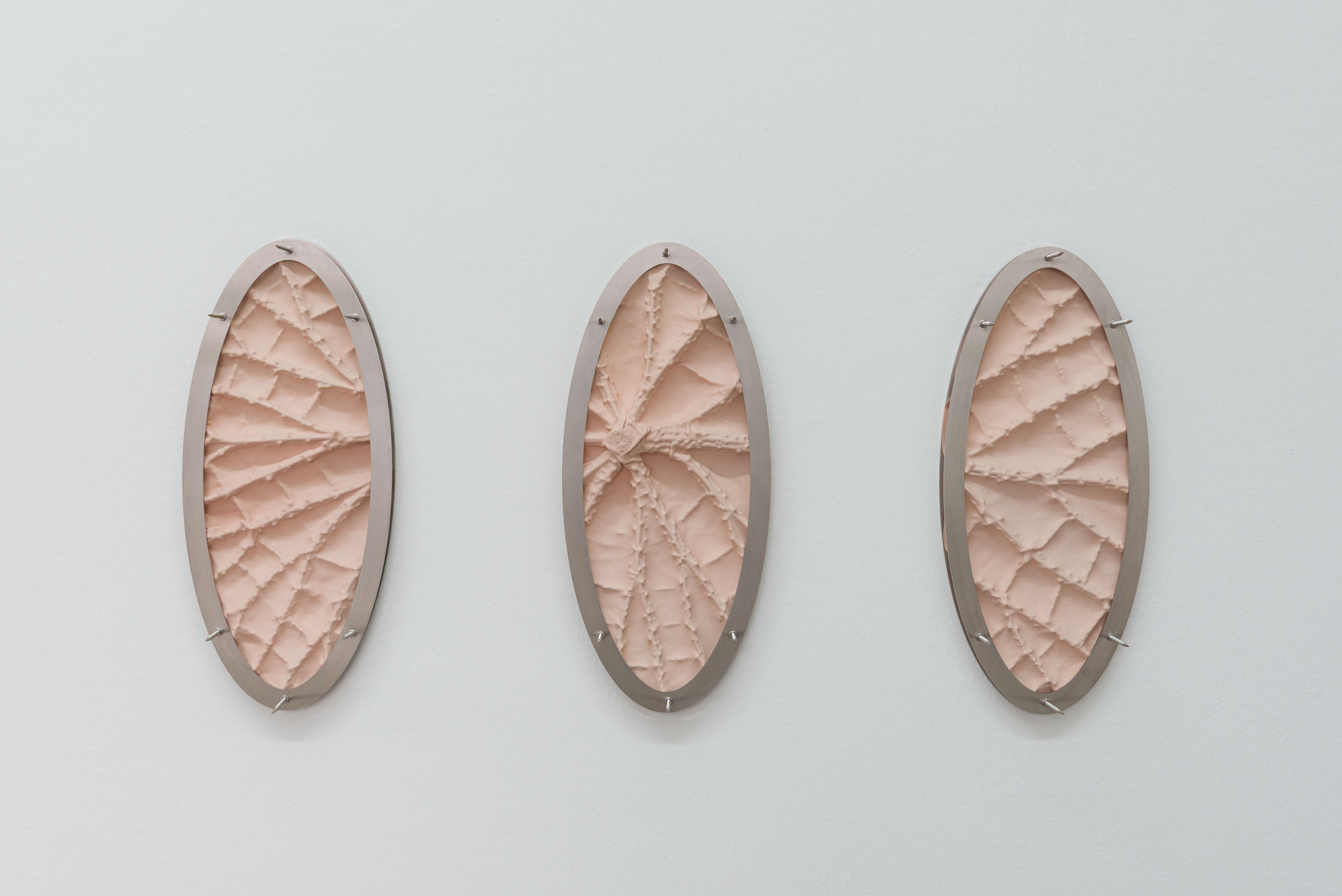 The windows of the exhibition spaces are covered by the fragile latex work Veil (2024–ongoing), which covers the glass surfaces like organically grown intertwining strands. The work depicts the process of sclerotization,…