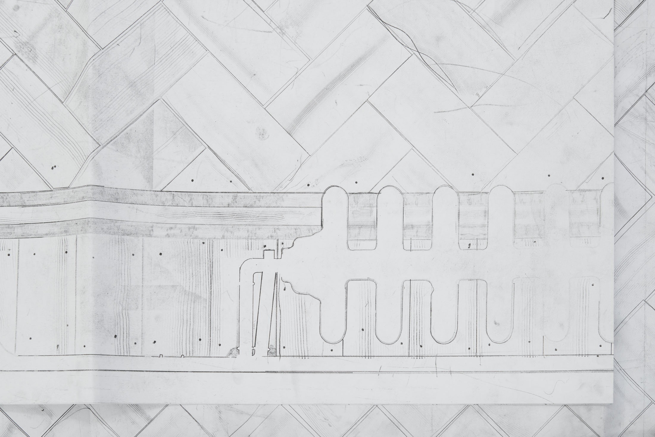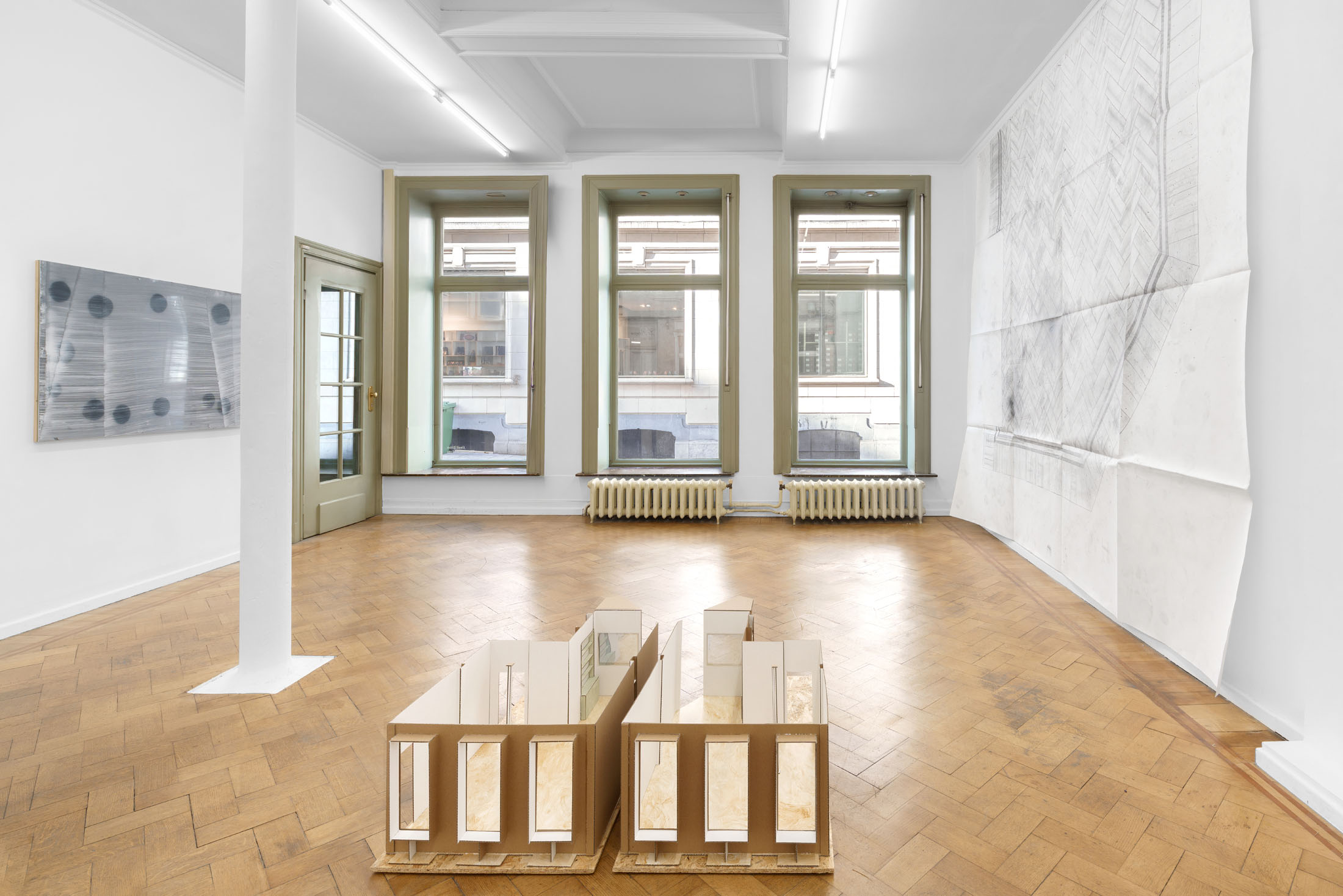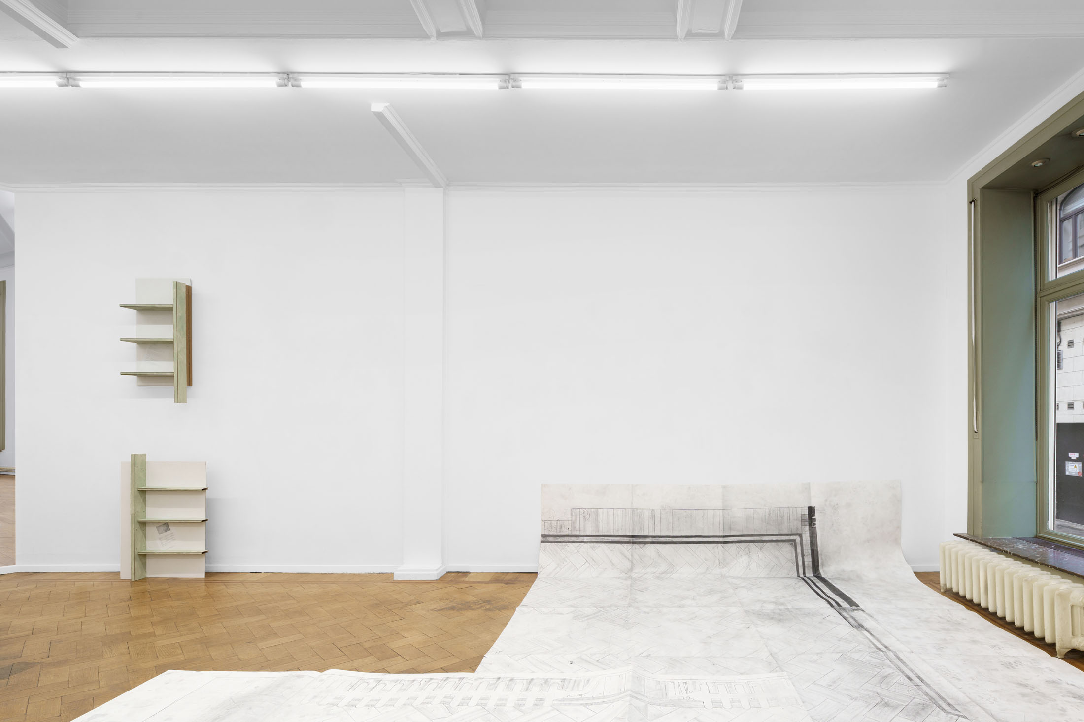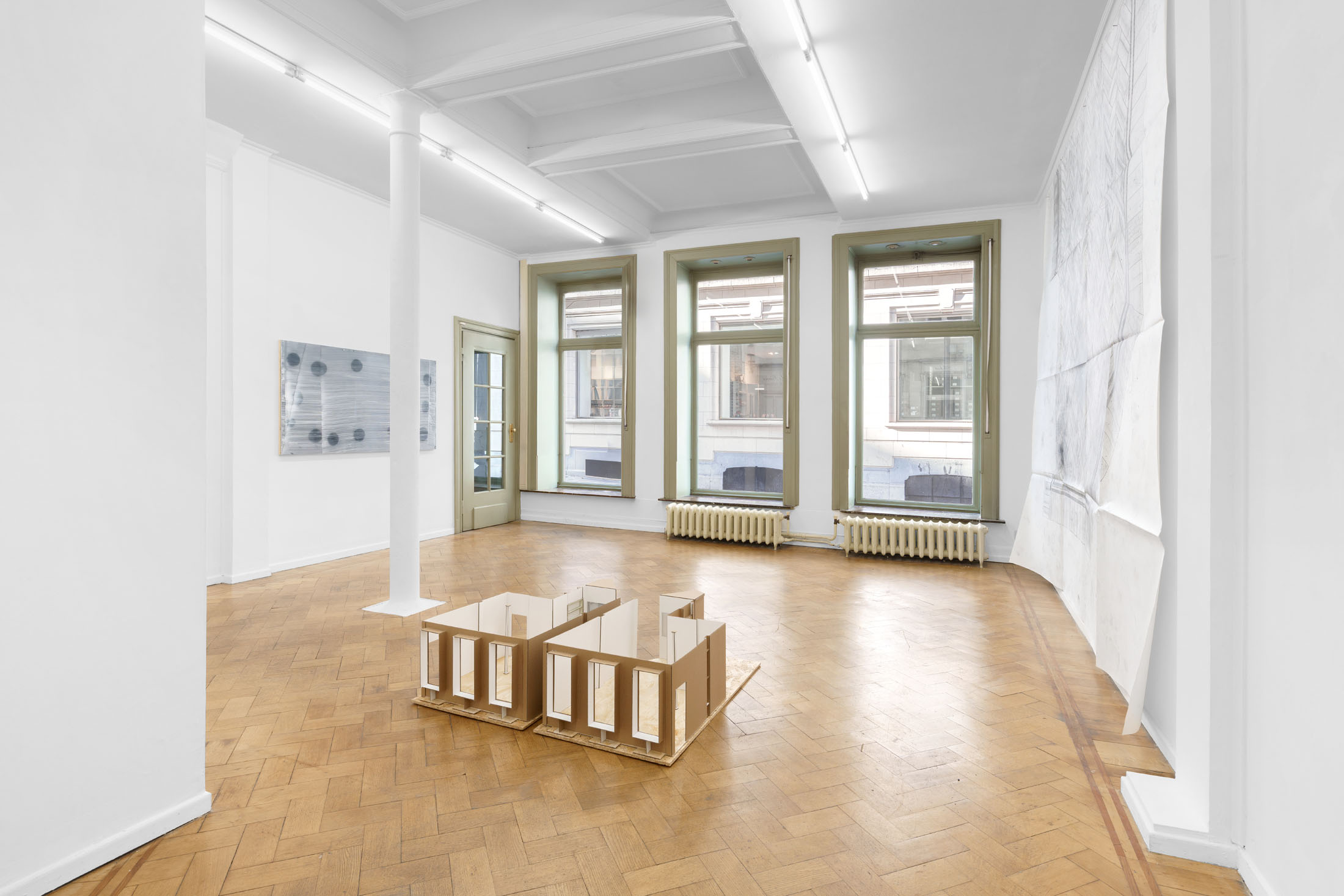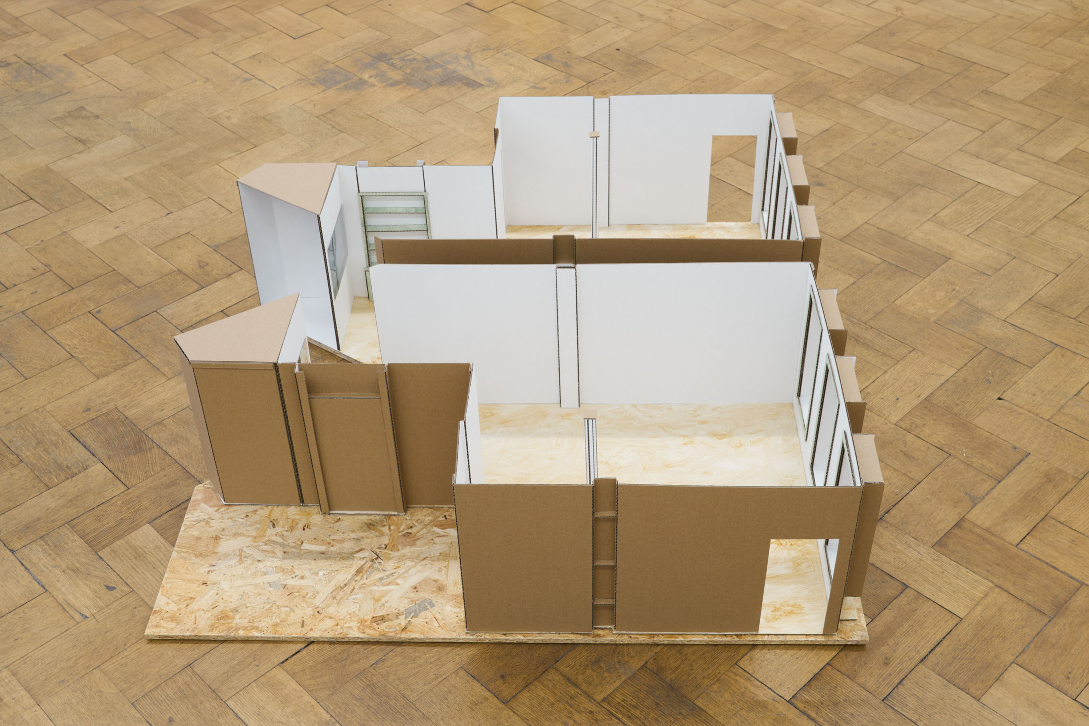 My only option, then, was to approach the exhibition as a true experiment: to follow through and see what is produced, without prior goals. I noticed, when mirroring the floor plan of the space, that the resulting diagram produced a gap in the negative space near where the twinned galleries met. I allowed this third space to be my guide.