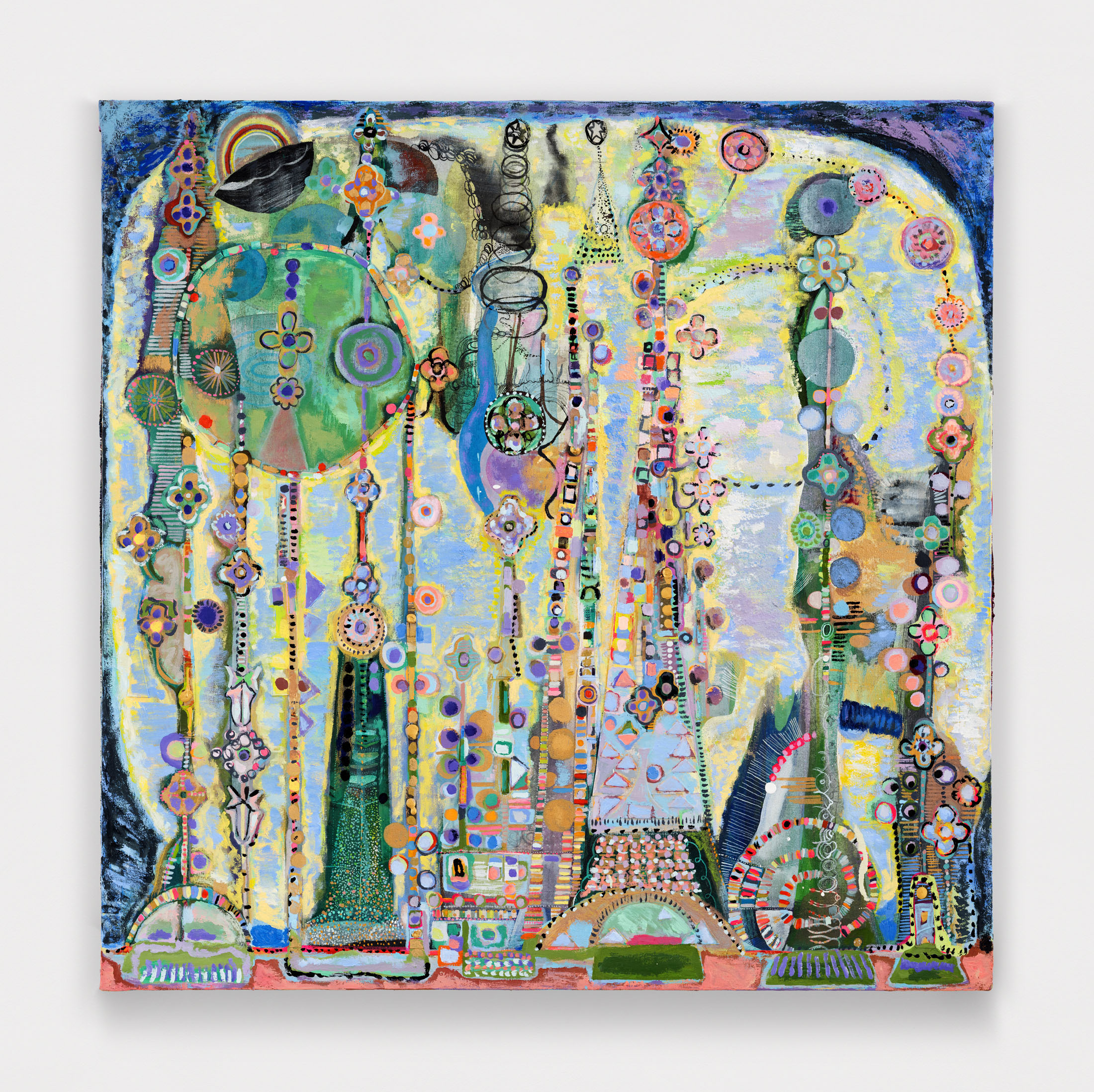 Harkawik is delighted to announce Brainwaves and Wavestorms, our second exhibition with Bay Area painter Karen Barbour, and the first in New York. Brainwaves evidences a deep meditation into the delicate and subtle boundaries between the sensible world, and its teeming irrational beyond (the sort witnessed only by cats, mystics, and long-haul truck drivers). It is filled with forms that elicit childlike delight but also act as a vehicle for serious perceptual and philosophical investigations.