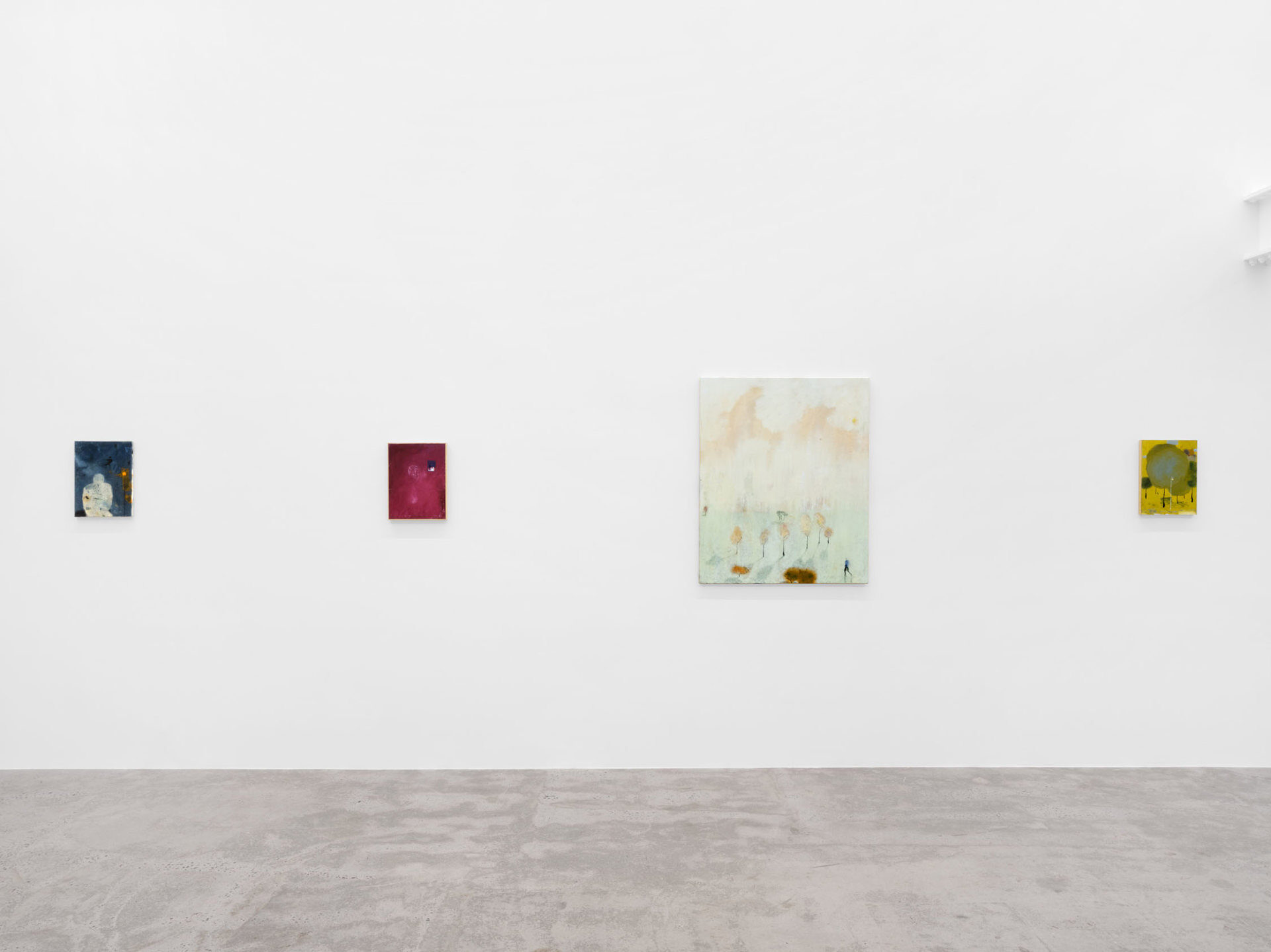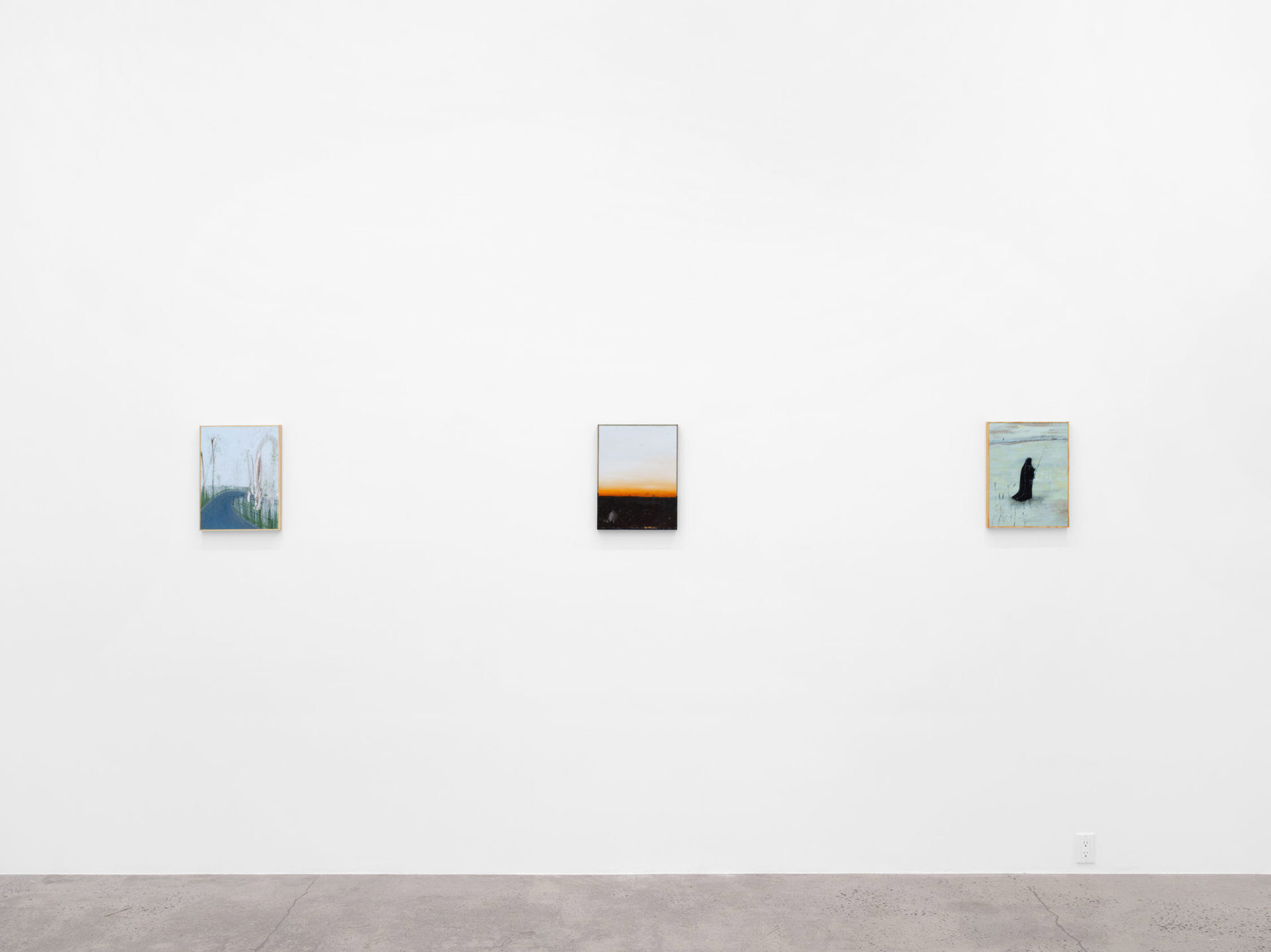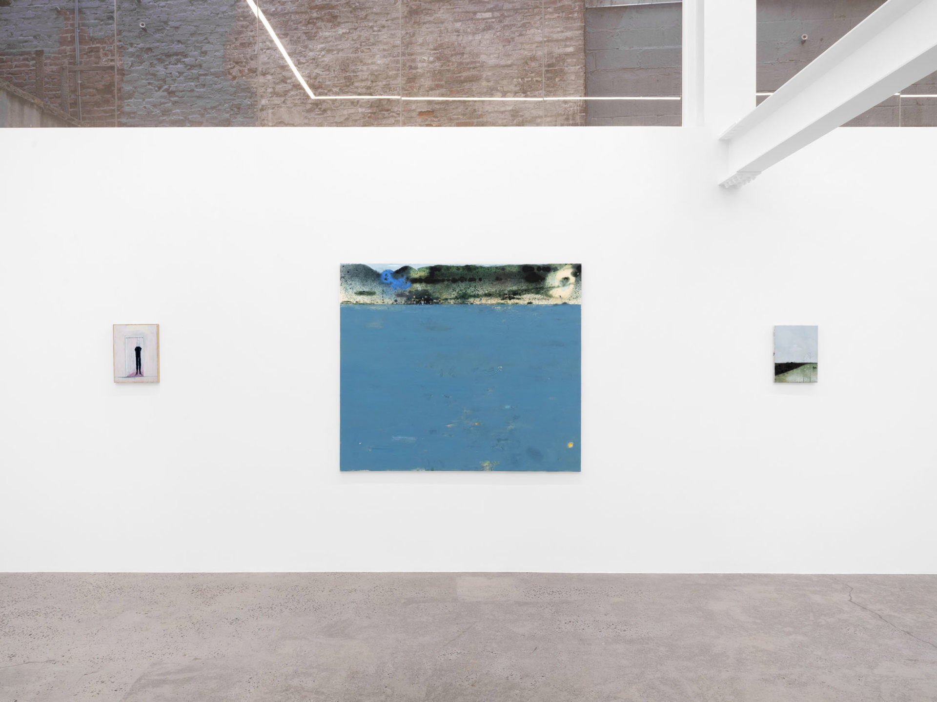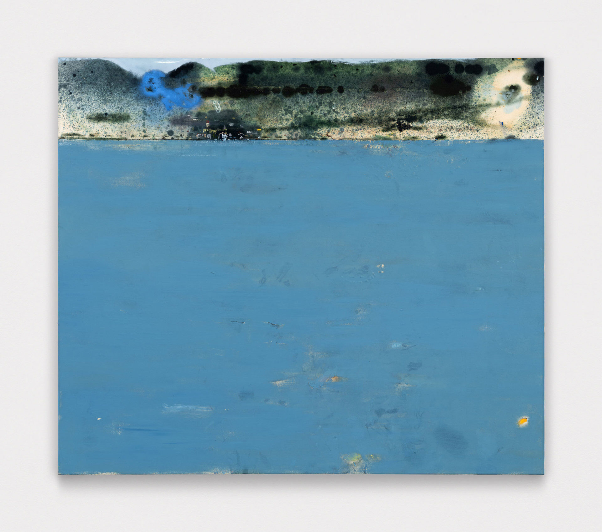 There’s a moment when you first see See bei Tag oder Die andere Seite (Loosely, “The Other Side of the Lake”), the largest work in Closer Look, our second solo exhibition with Austrian painter Eiko G. In this moment, the work’s subject cannot be determined; the eye is lost in a large expanse of cerulean blue, seeking, parsing, straining to make familiar forms out of smears and splotches. Those forms include ripples in the water’s surface that might be limbs, creatures, or nothing at all, an outcropping of buildings, outlined but not filled-in, perched delicately at the lake’s edge, rolling hills that seem to be composed of celluloid, combusting in a film projector, and a hovering periwinkle cloud, more phantom than ordinary cumulus. In this pre-recognition moment, we understand we are facing something familiar, something that represents a concrete place, yet, we are full of doubt. This is the moment Eiko seeks to expand, to turn from a split-second flash into an ocean of experience.…