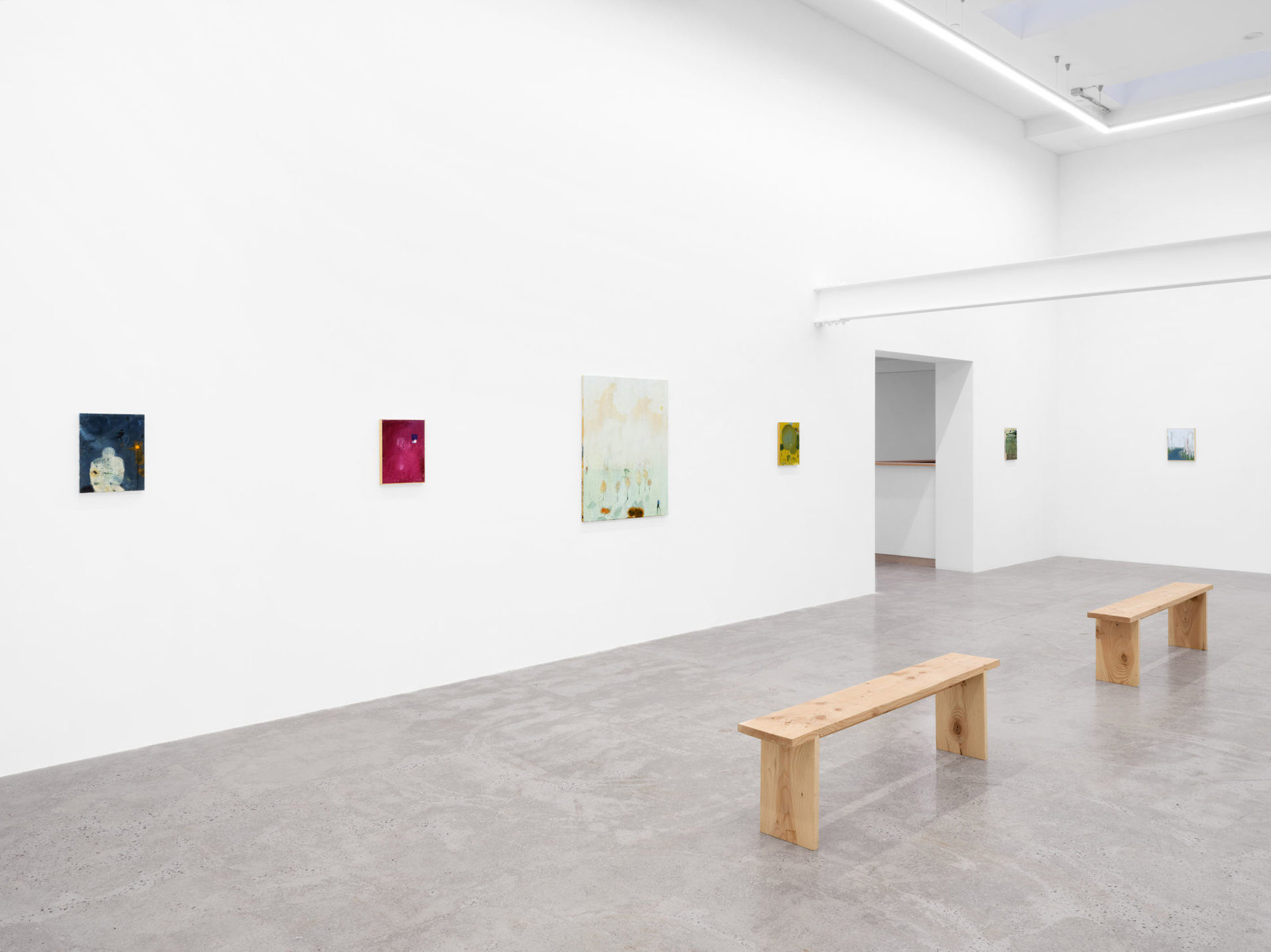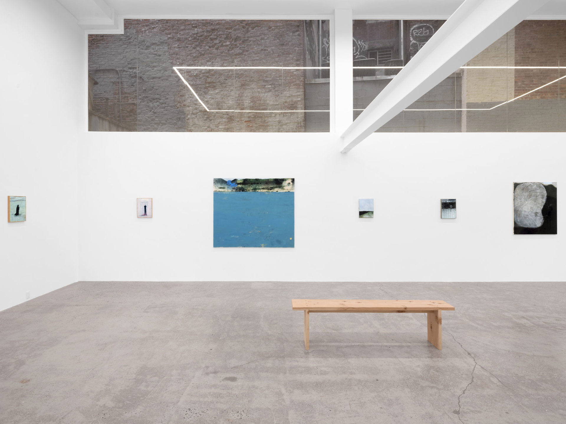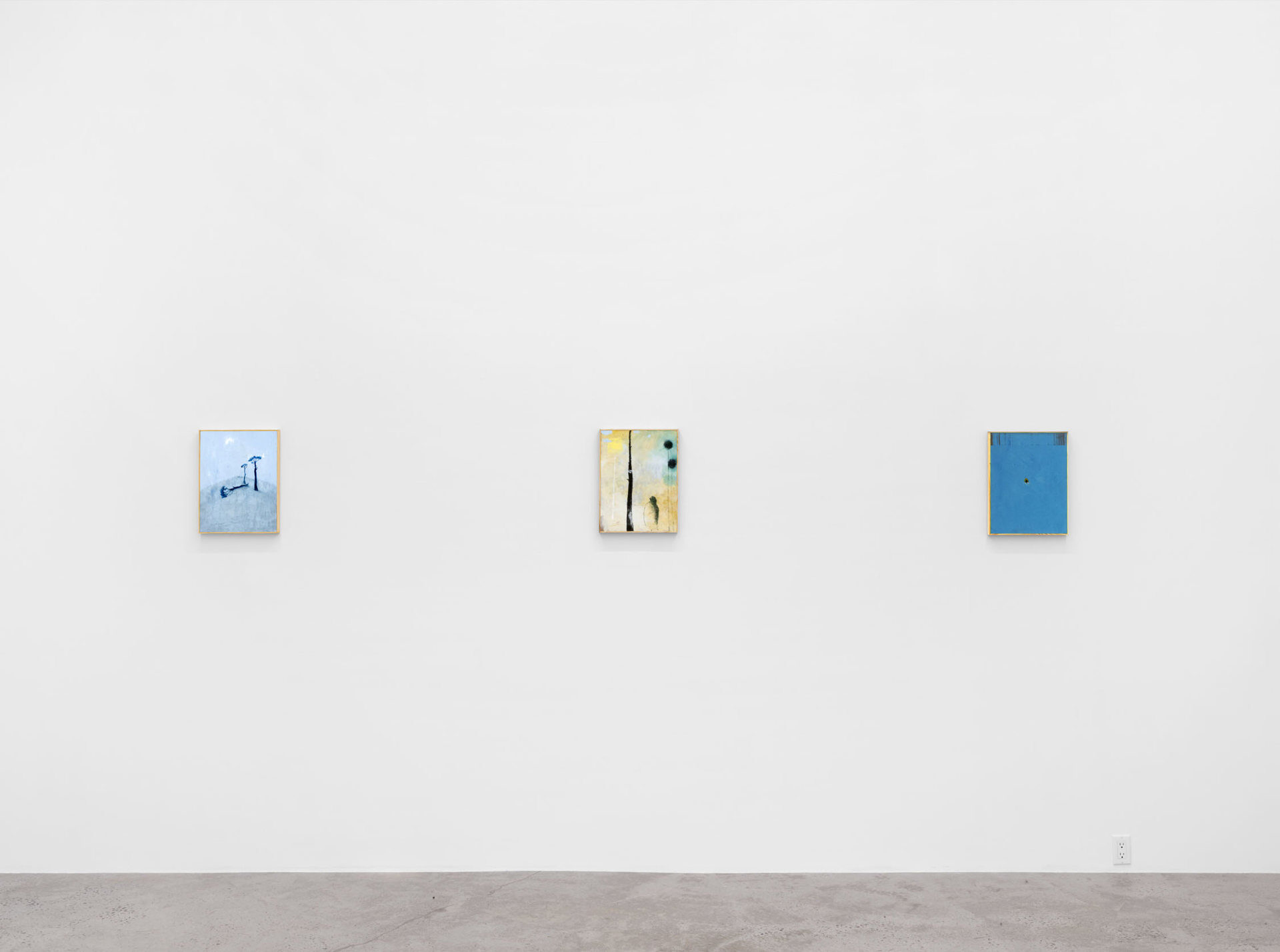 There’s a moment when you first see See bei Tag oder Die andere Seite (Loosely, “The Other Side of the Lake”), the largest work in Closer Look, our second solo exhibition with Austrian painter Eiko G. In this moment, the work’s subject cannot be determined; the eye is lost in a large expanse of cerulean blue, seeking, parsing, straining to make familiar forms out of smears and splotches. Those forms include ripples in the water’s surface that might be limbs, creatures, or nothing at all, an outcropping of buildings, outlined but not filled-in, perched delicately at the lake’s edge, rolling hills that seem to be composed of celluloid, combusting in a film projector, and a hovering periwinkle cloud, more phantom than ordinary cumulus. In this pre-recognition moment, we understand we are facing something familiar, something that represents a concrete place, yet, we are full of doubt. This is the moment Eiko seeks to expand, to turn from a split-second flash into an ocean of experience.…