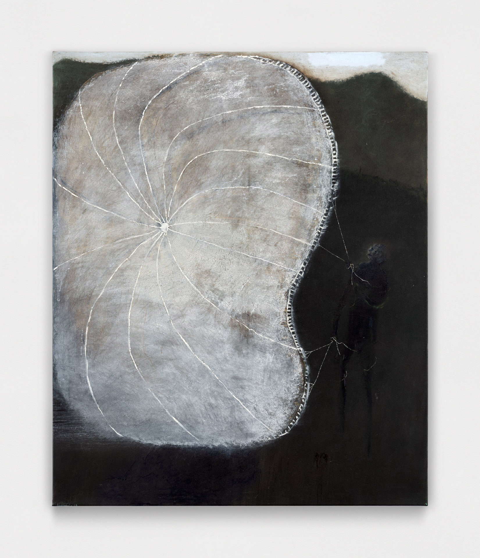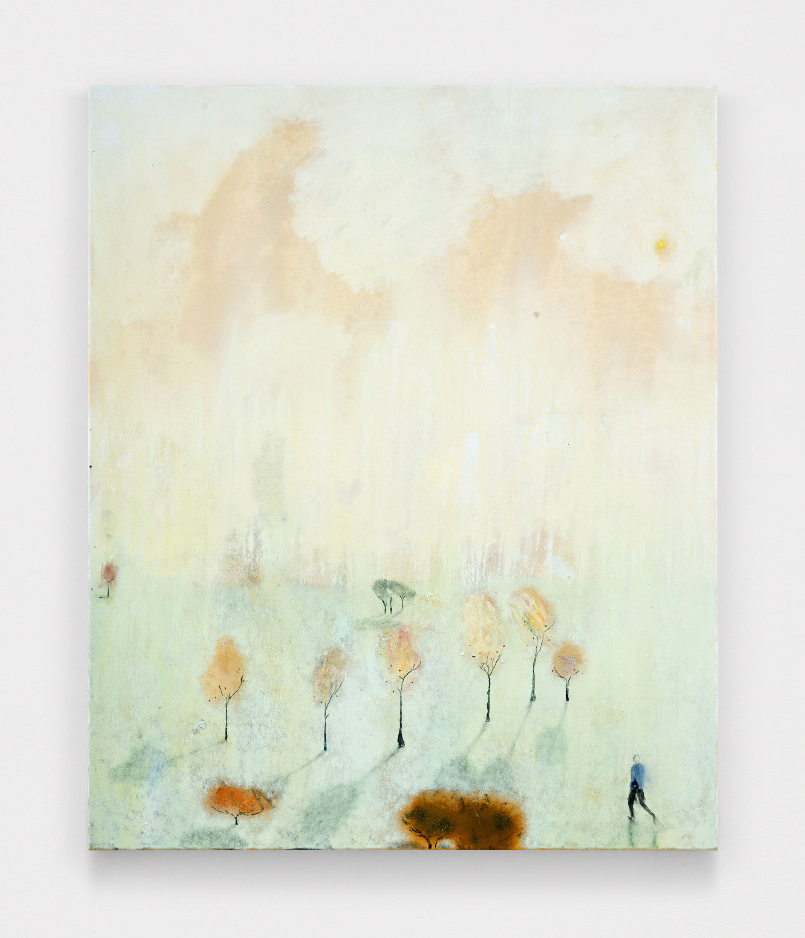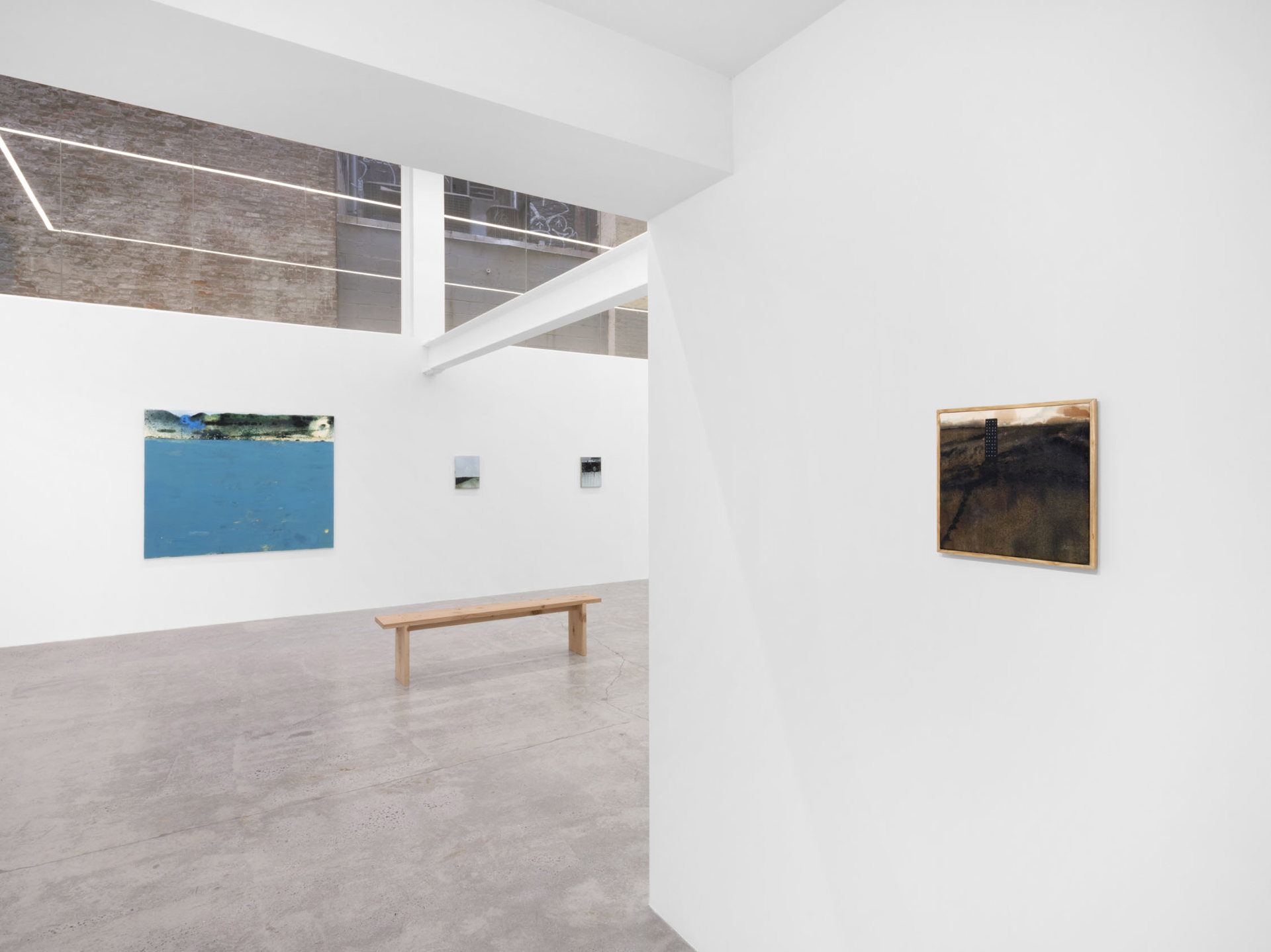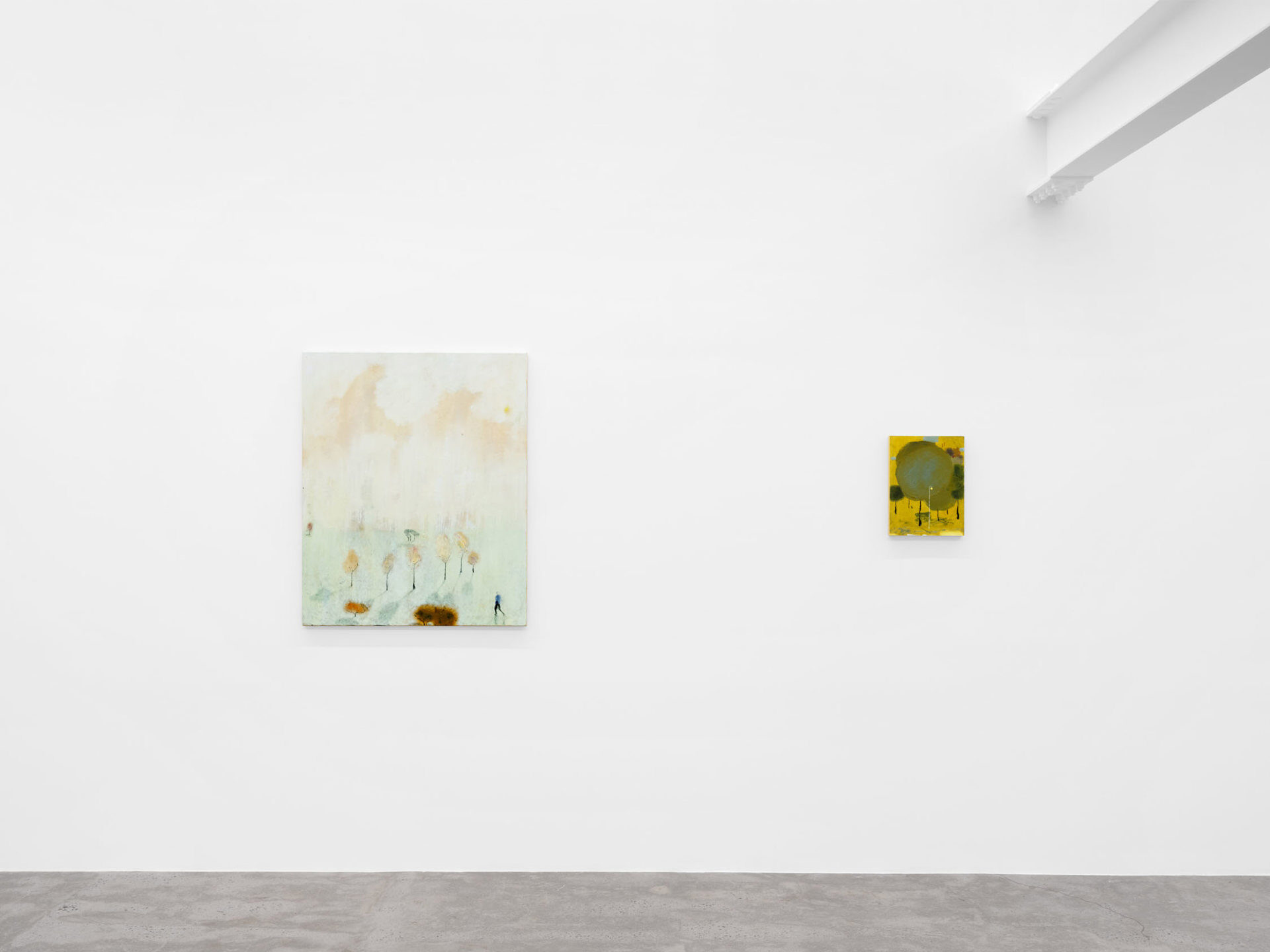 There’s a moment when you first see See bei Tag oder Die andere Seite (Loosely, “The Other Side of the Lake”), the largest work in Closer Look, our second solo exhibition with Austrian painter Eiko G. In this moment, the work’s subject cannot be determined; the eye is lost in a large expanse of cerulean blue, seeking, parsing, straining to make familiar forms out of smears and splotches. Those forms include ripples in the water’s surface that might be limbs, creatures, or nothing at all, an outcropping of buildings, outlined but not filled-in, perched delicately at the lake’s edge, rolling hills that seem to be composed of celluloid, combusting in a film projector, and a hovering periwinkle cloud, more phantom than ordinary cumulus. In this pre-recognition moment, we understand we are facing something familiar, something that represents a concrete place, yet, we are full of doubt. This is the moment Eiko seeks to expand, to turn from a split-second flash into an ocean of experience.…