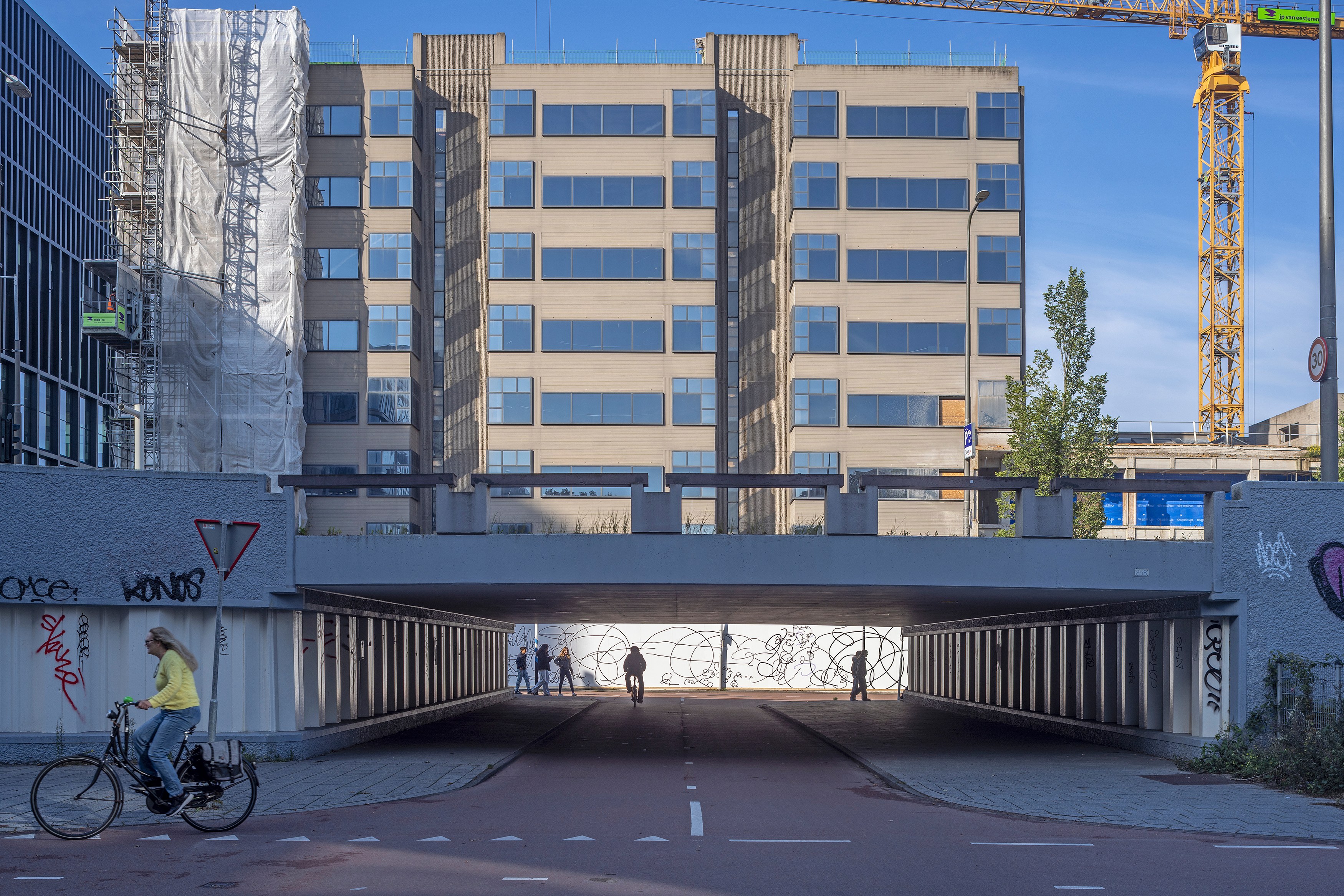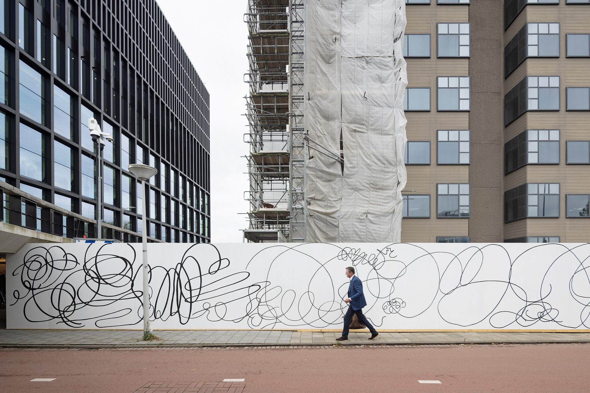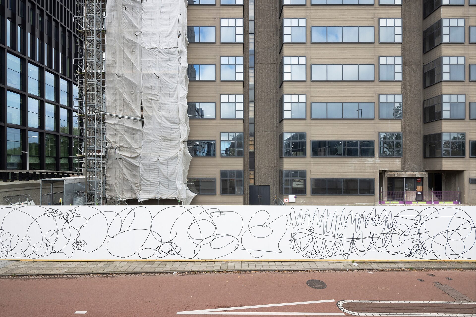 With Nothing Wall, a 92-meter hand-painted mural, she transforms the construction fence of the future Hartwig Museum into a place of enlarged scribbles, curls and doodles that seem like writing but say nothing at all. Van der Stokker calls this “the scandal of effortlessly painting nothing”—a reminder that nothing can still be beautiful, decorative, fun, photogenic, and even worth stopping for.