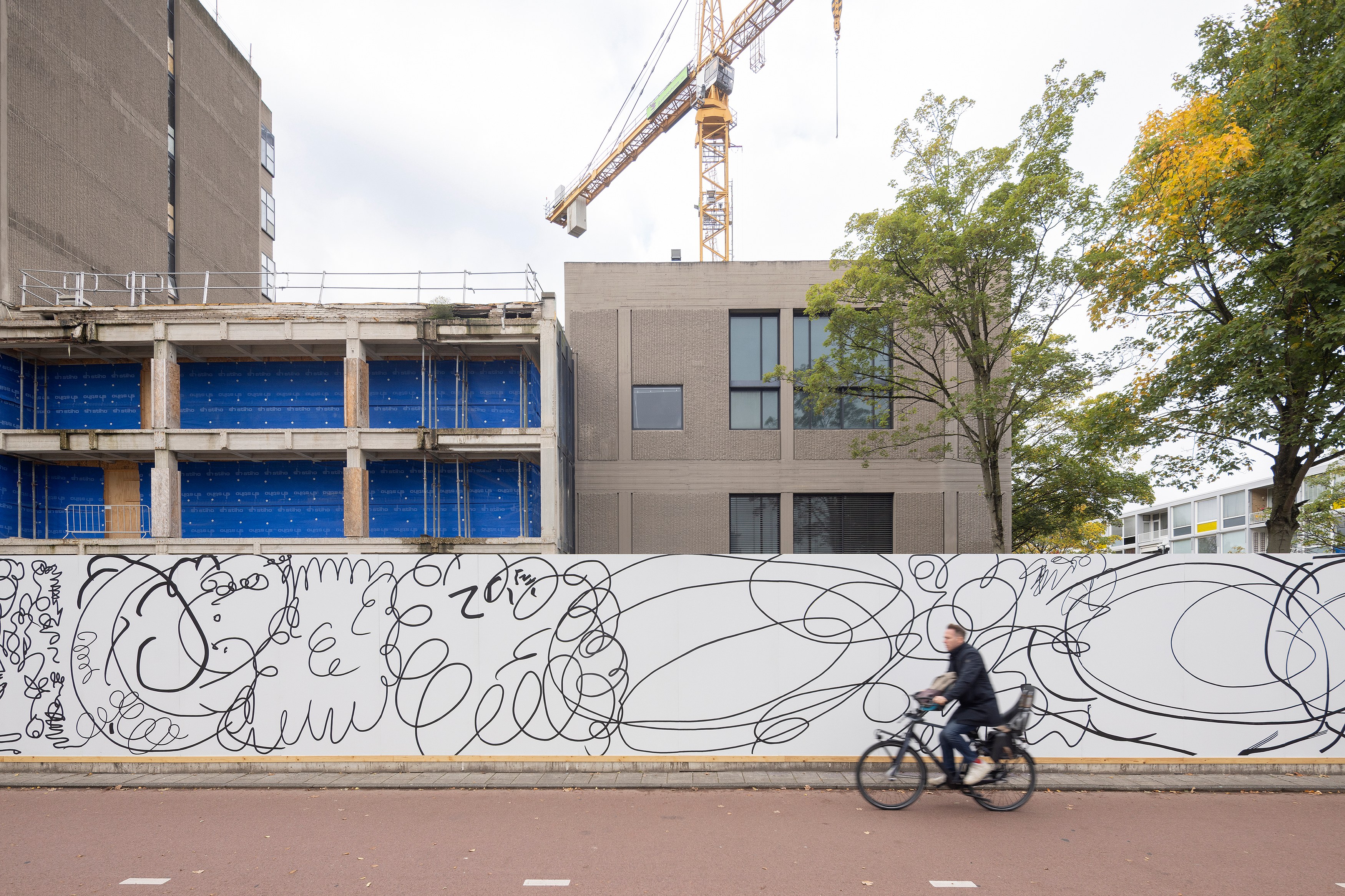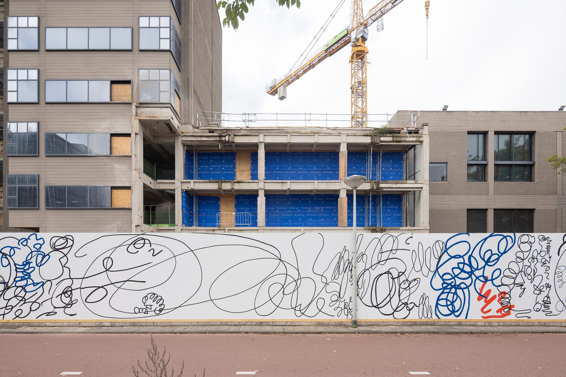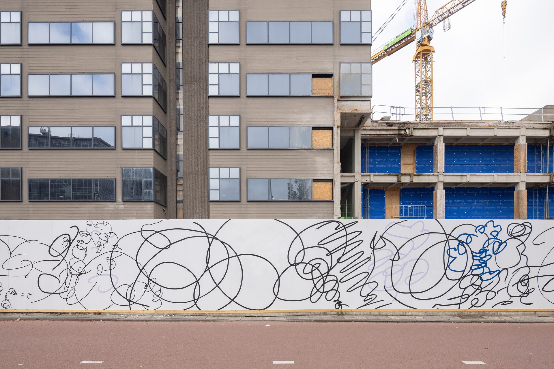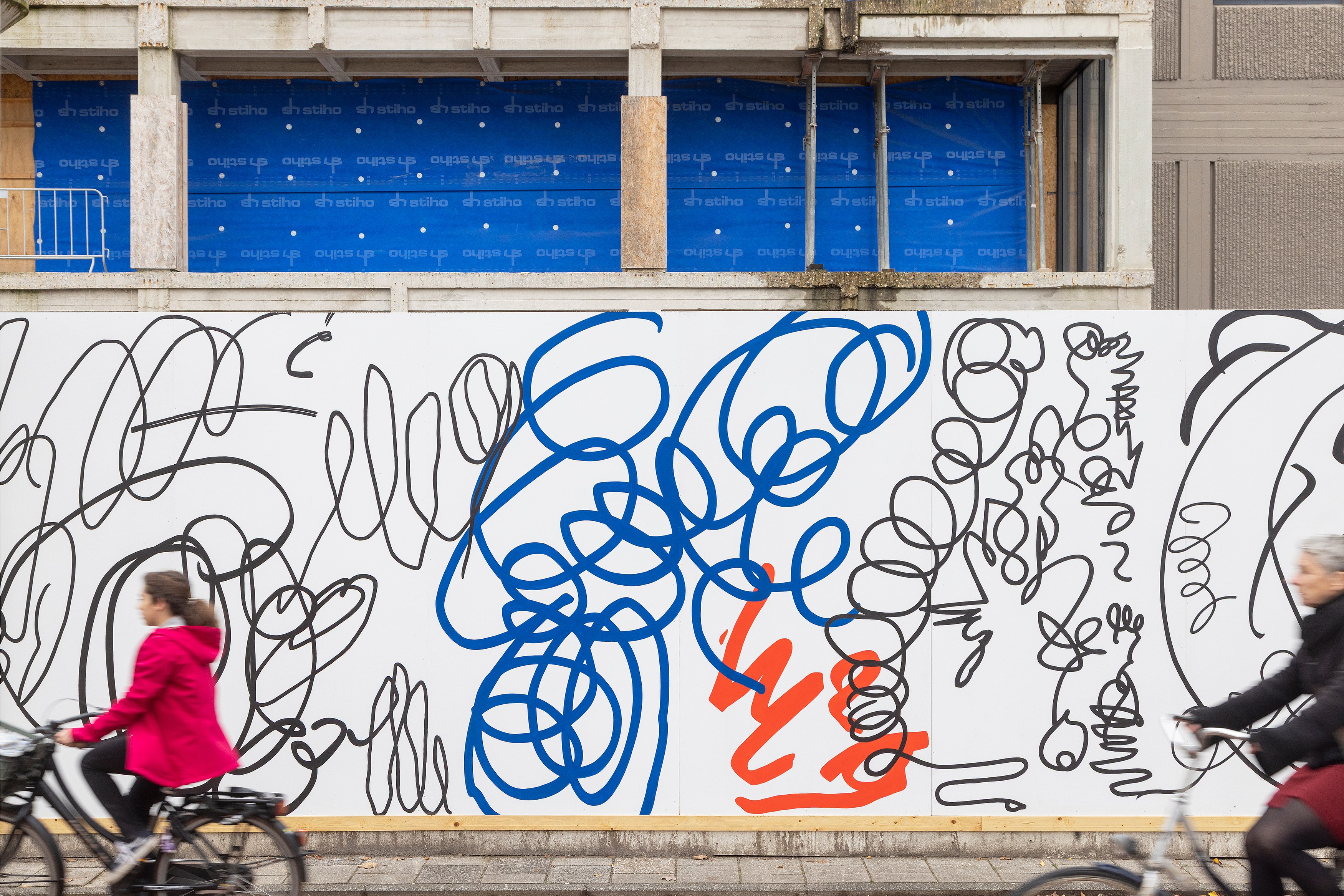 Lily van der Stokker has been commissioned to make a wall painting for the construction fence of the future Hartwig Museum.