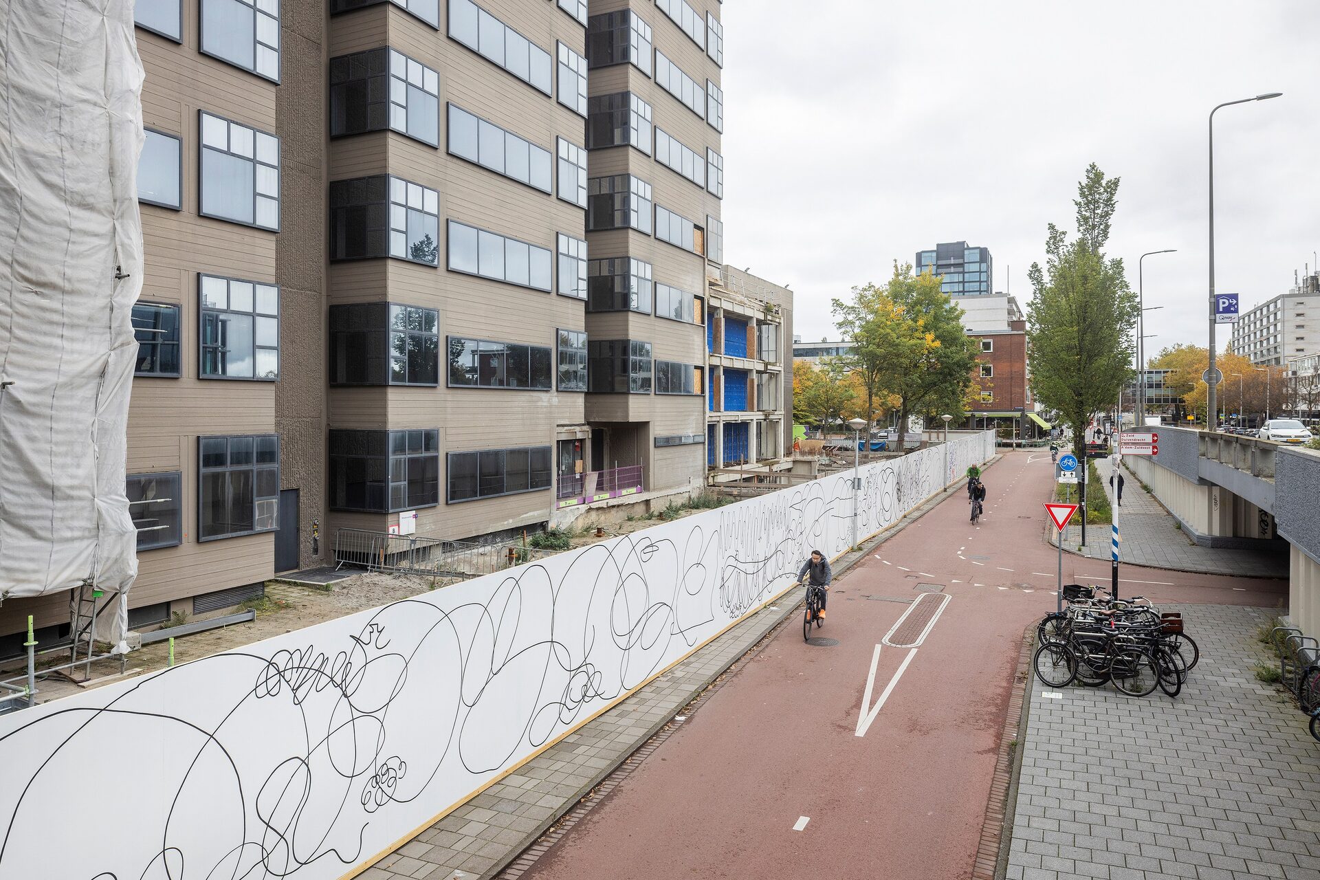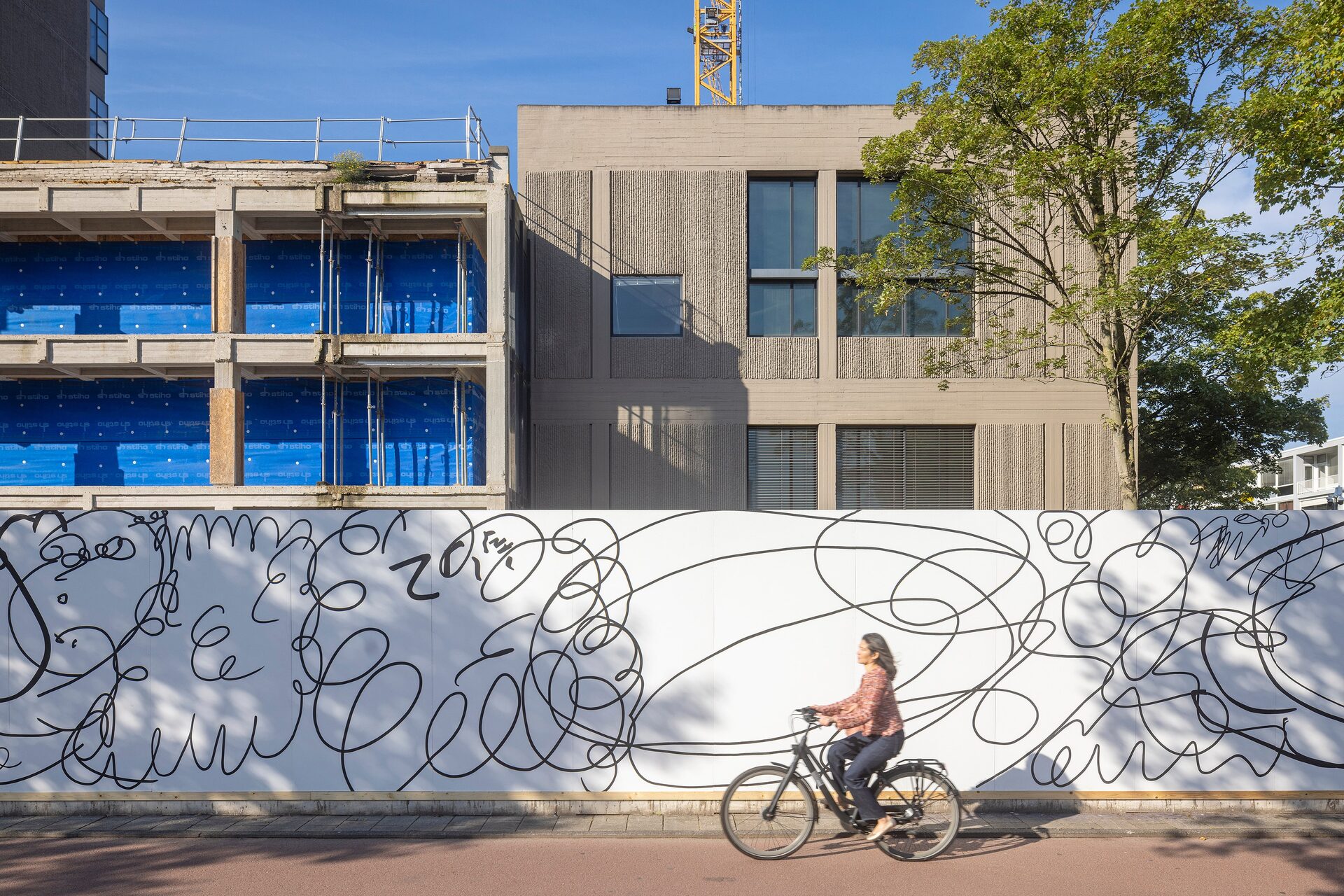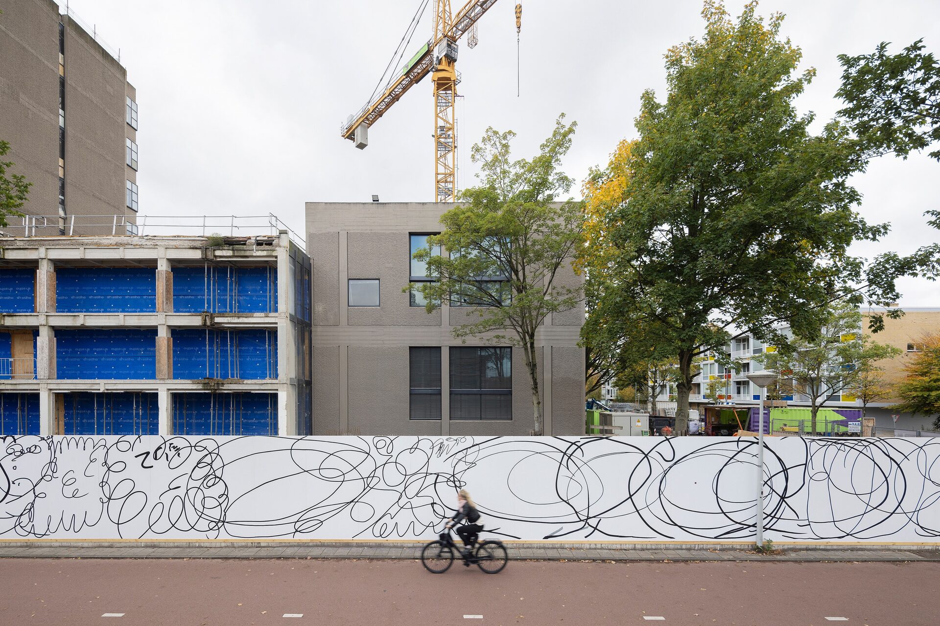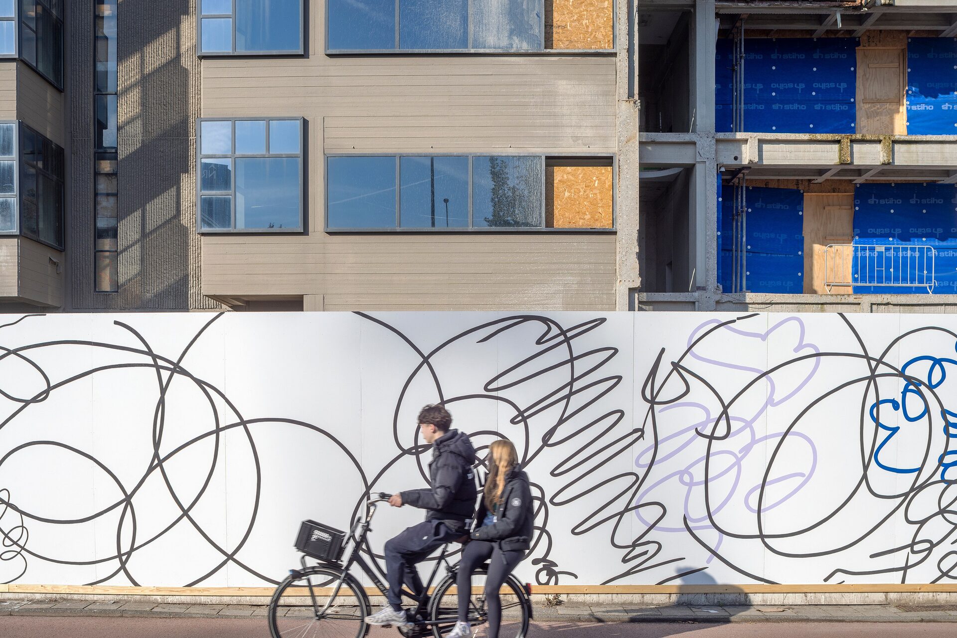 Lily van der Stokker has been commissioned to make a wall painting for the construction fence of the future Hartwig Museum.