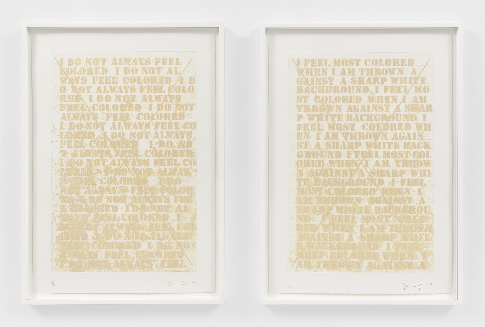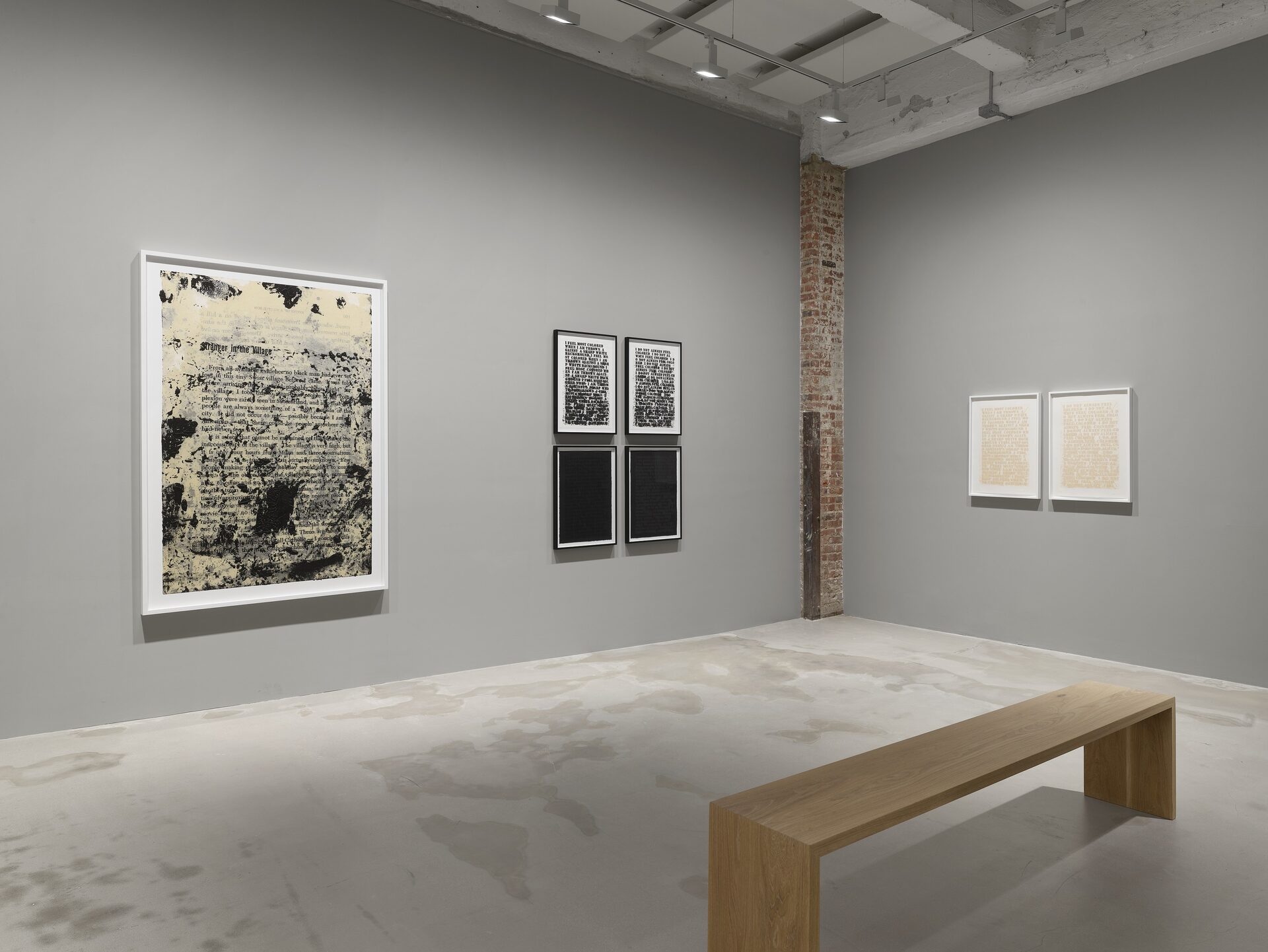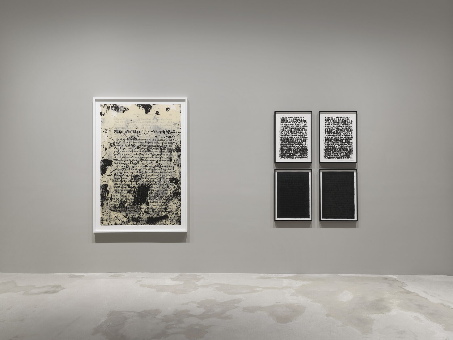 Hauser & Wirth is pleased to present ‘Late at night, early in the morning, at noon,’ a two-part exhibition of new and historic works on paper by Glenn Ligon. This presentation extends the artist’s longstanding engagement with language and abstraction through a series of richly layered compositions that meditate on the color blue and its emotional, historical and cultural inflections. In dialogue with the writings of James Baldwin, Ligon’s latest work here traverses the space between legibility and sensation, where text dissolves into atmosphere and meaning into light.
