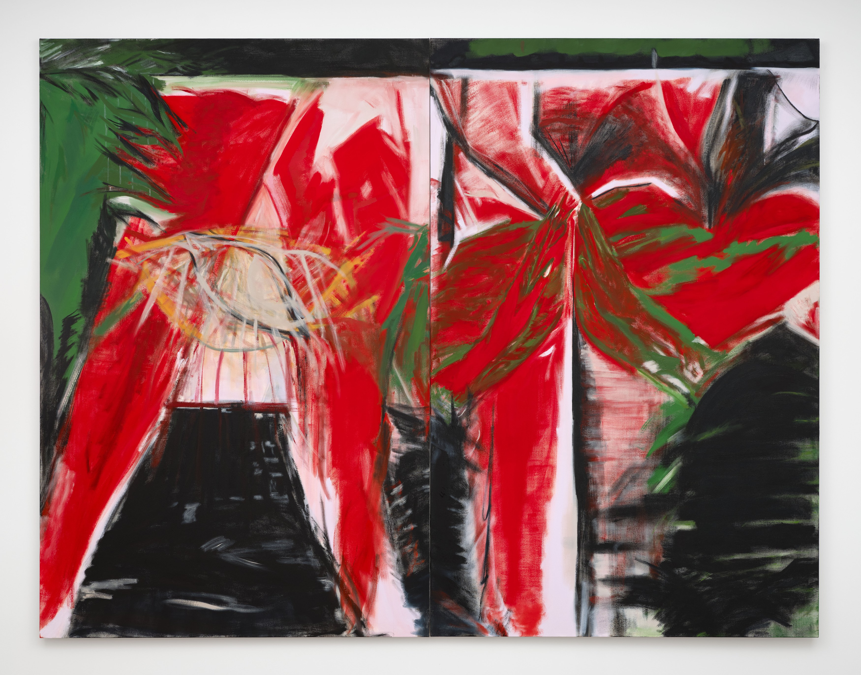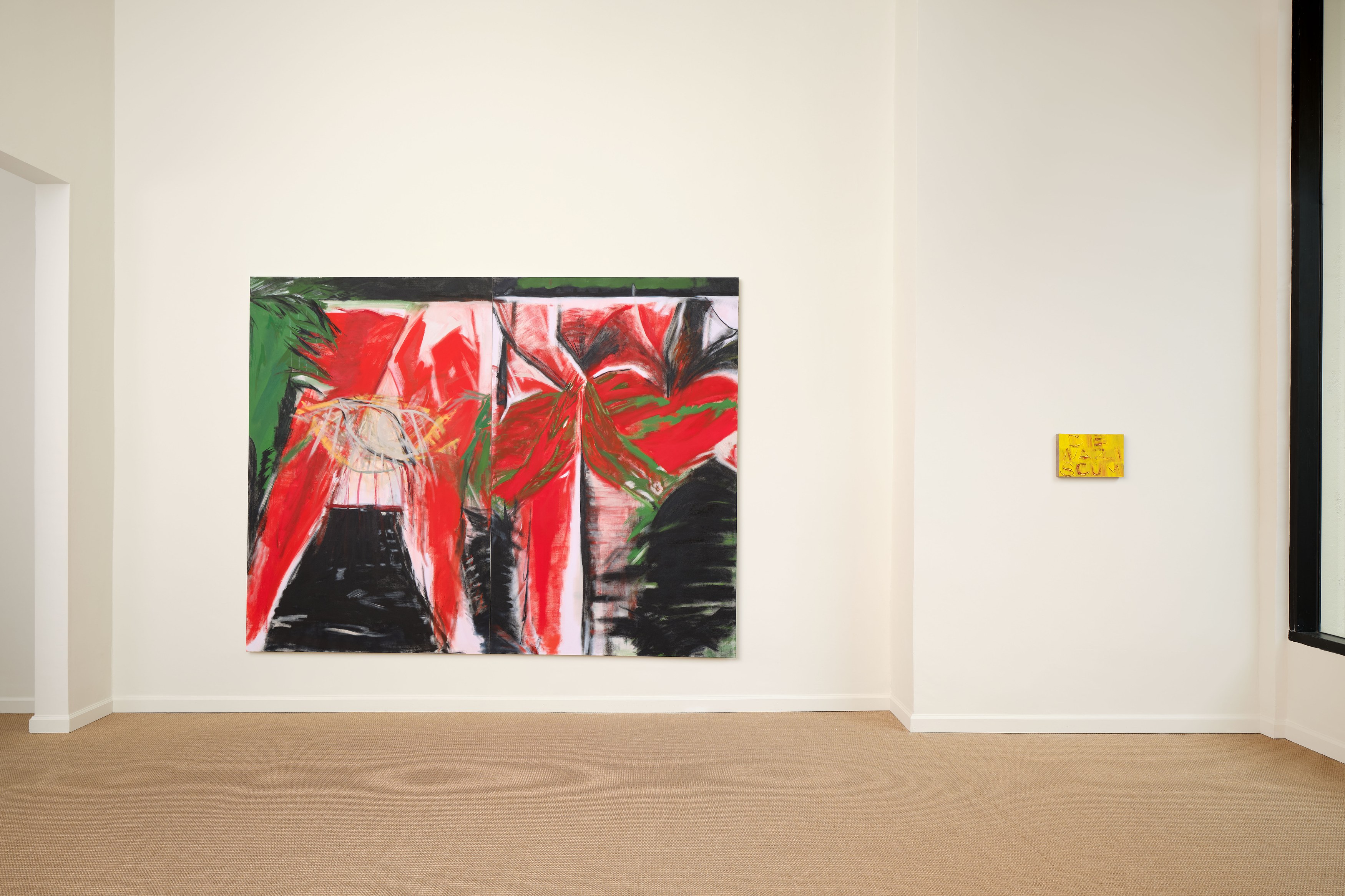 Hoffman Donahue is pleased to present a solo exhibition of work by Sydney Acosta. Textured, visceral, and direct, these works maintain a strictly rigid color palette. Her saturated reds and greens, concentrated whites and blacks avoid realism and instead function as symbols for emotional immediacy. These paintings emerge from the night, the street, the club, the present.