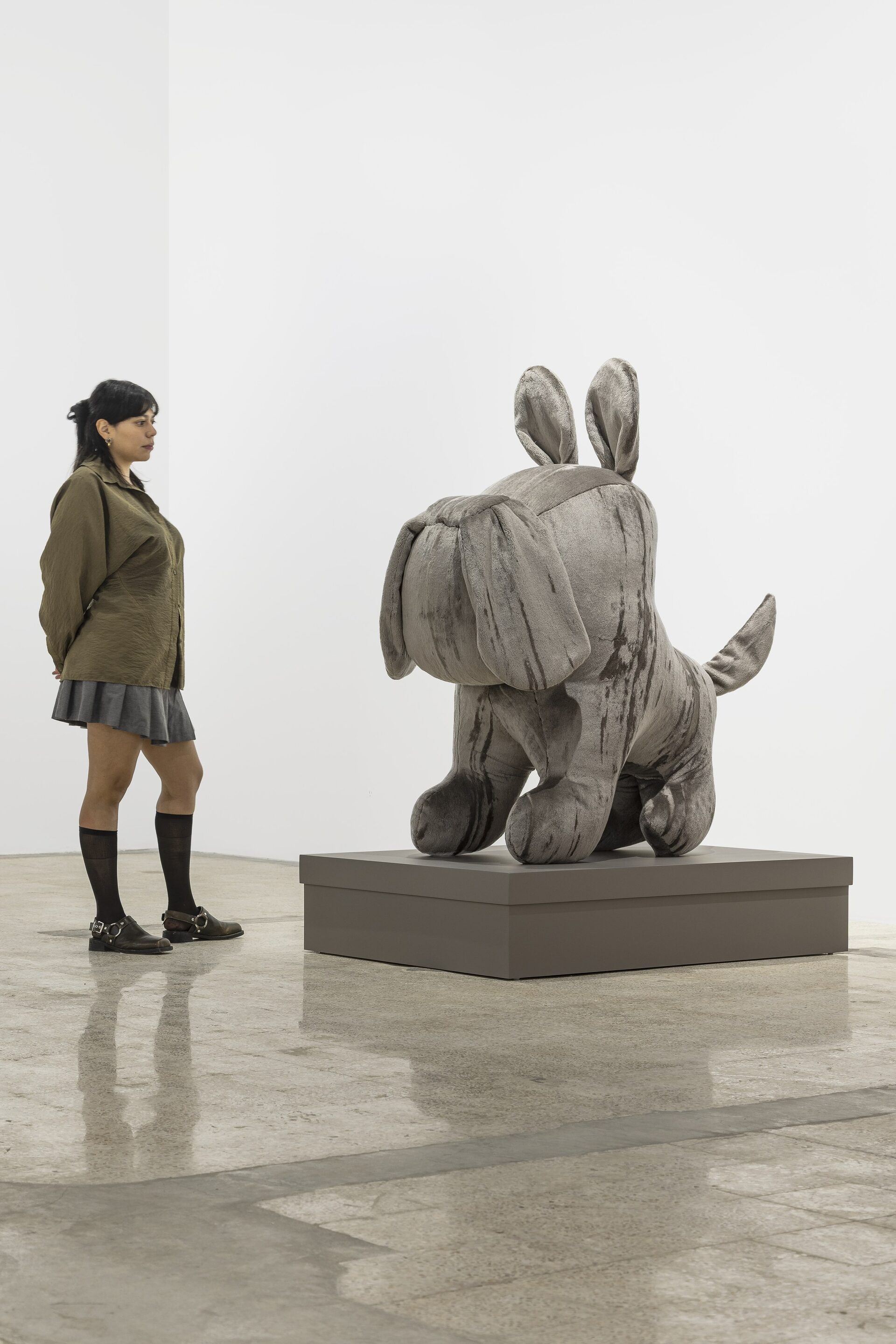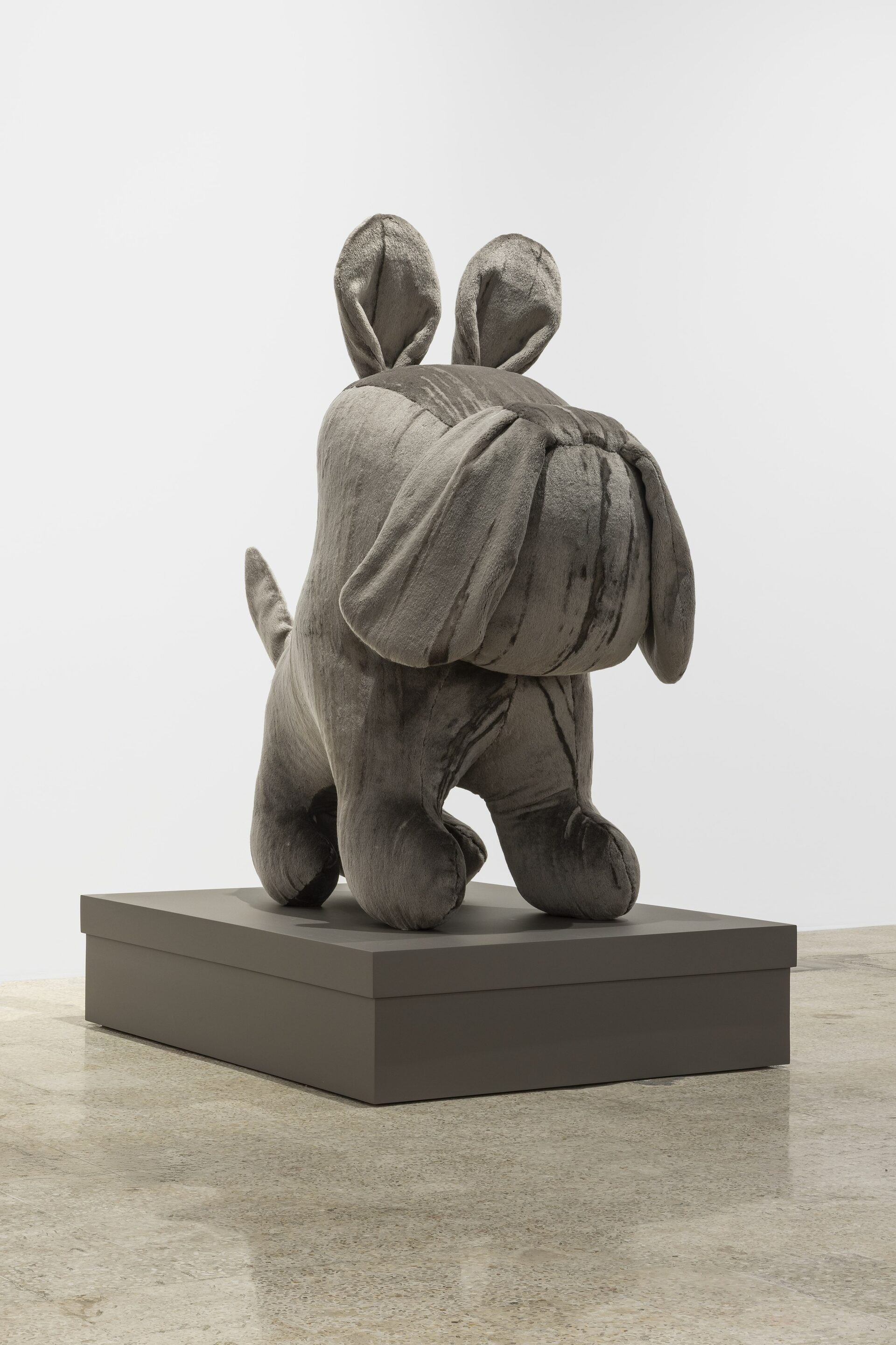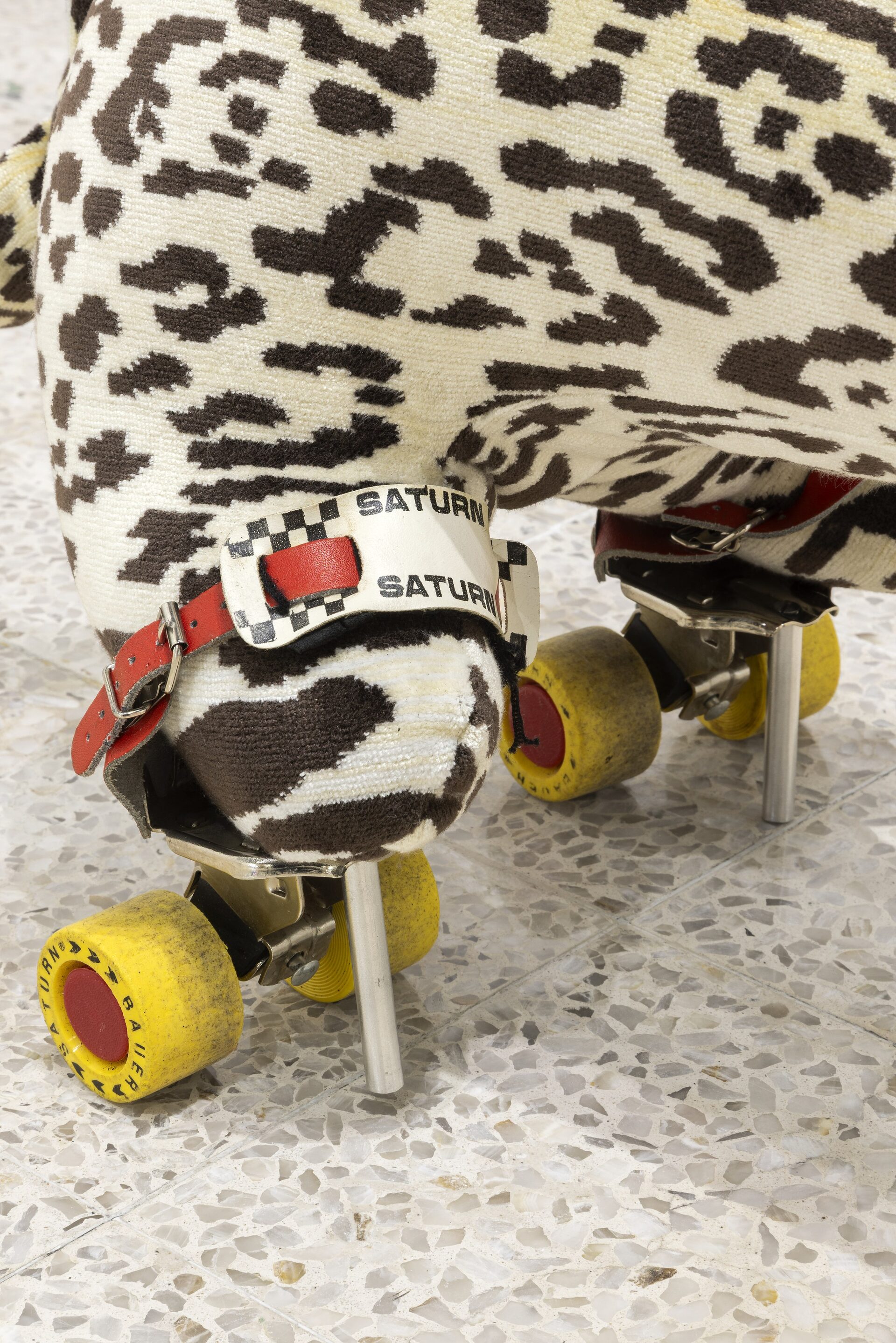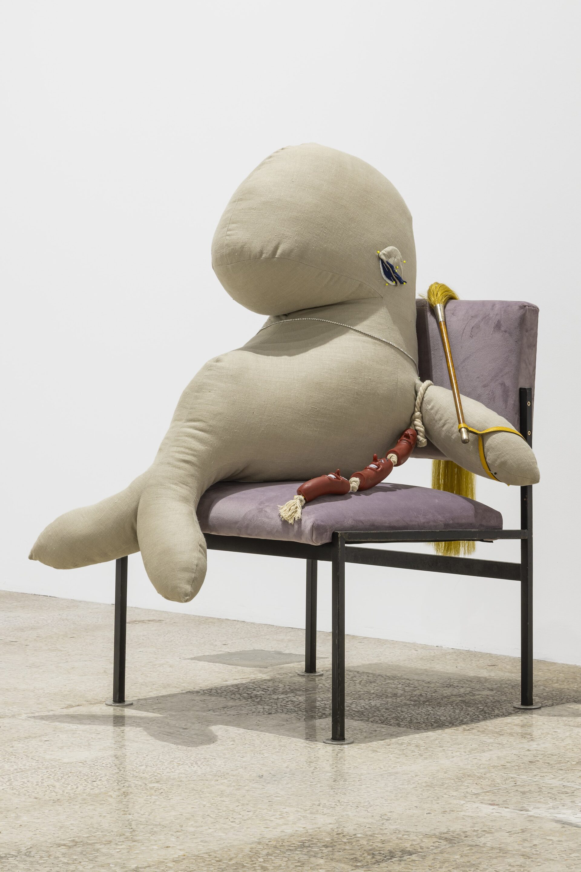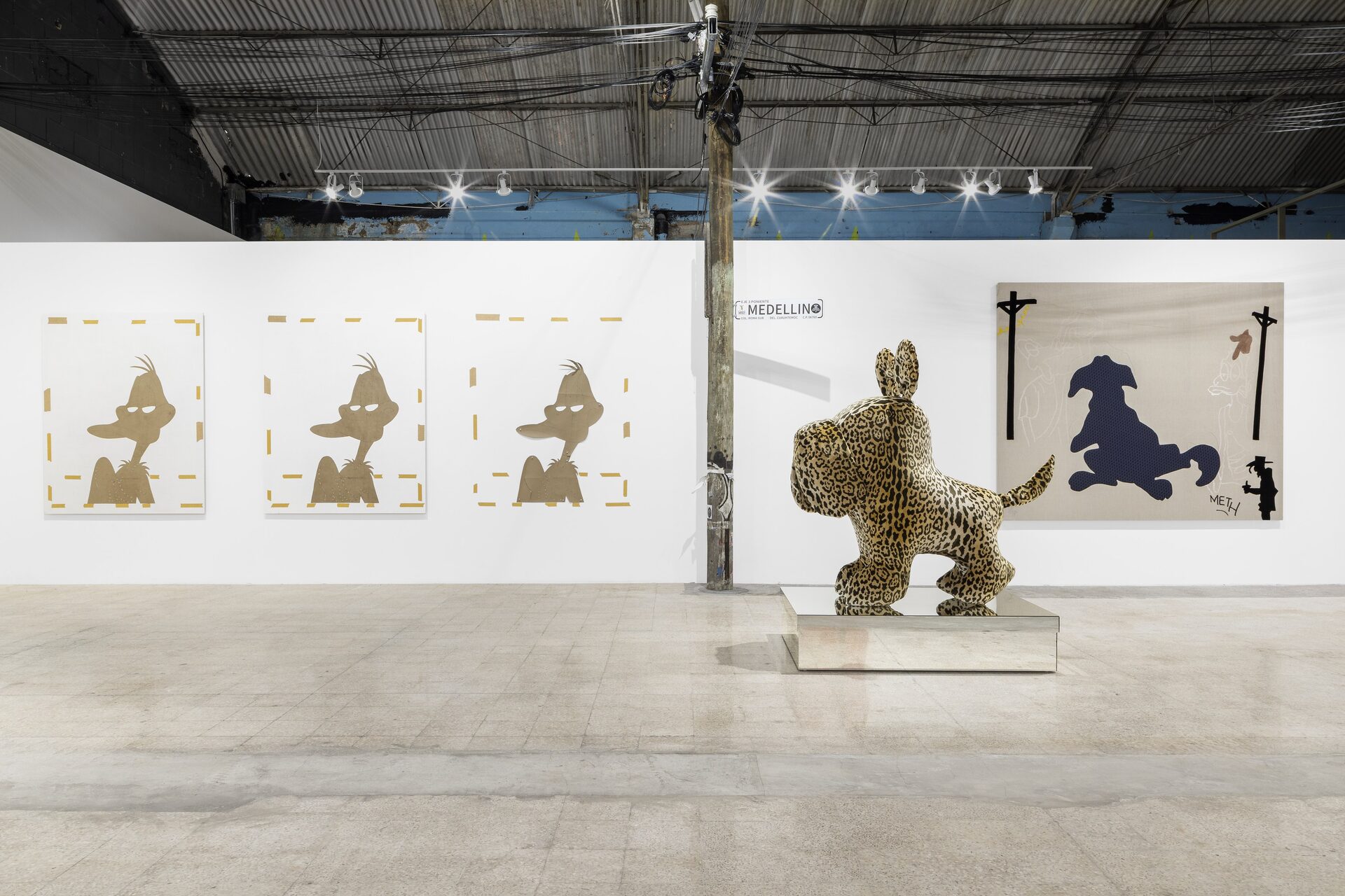 Nor should I also refrain from writing anything about those stuffed dachshunds that so charmingly cross the gallery, or about those enormous bulldogs covered in leopard print?