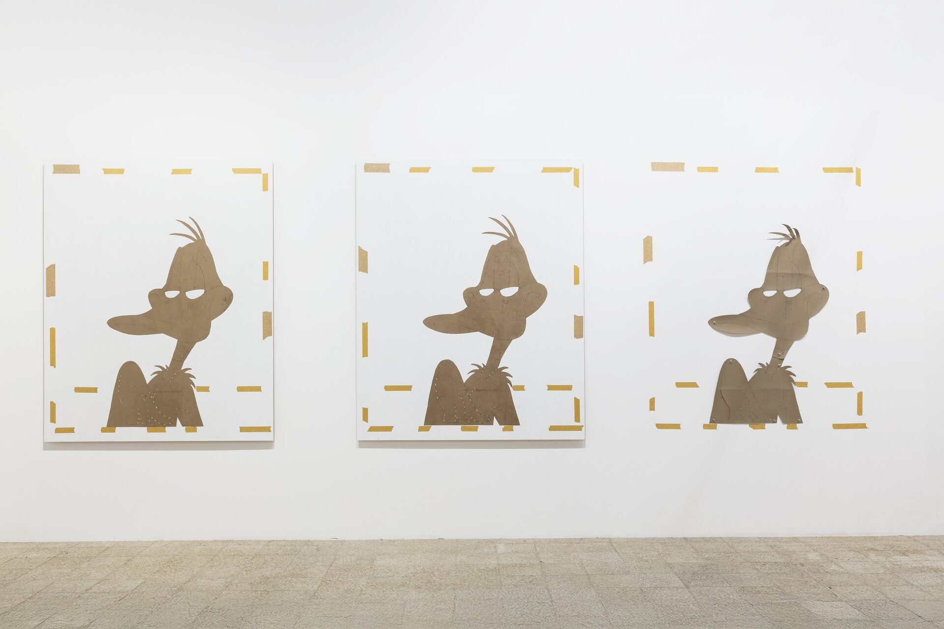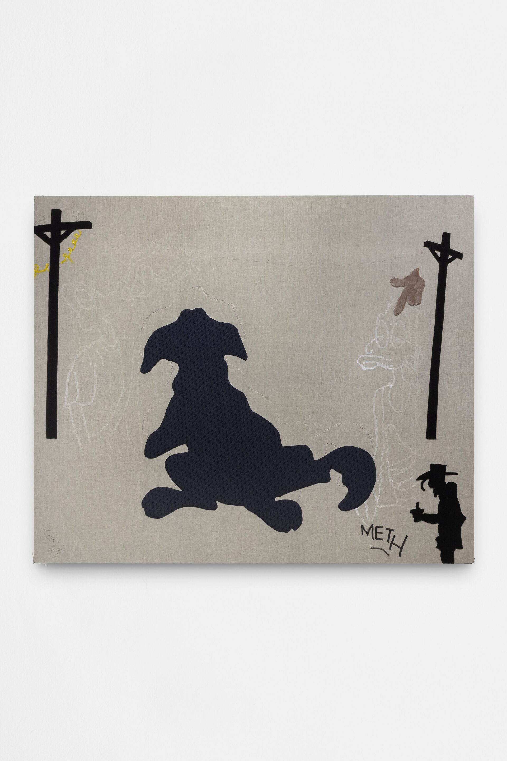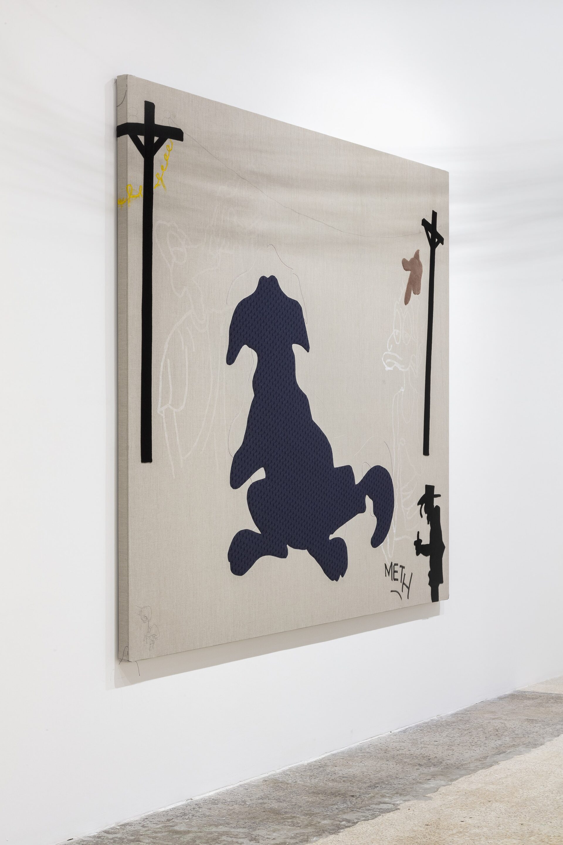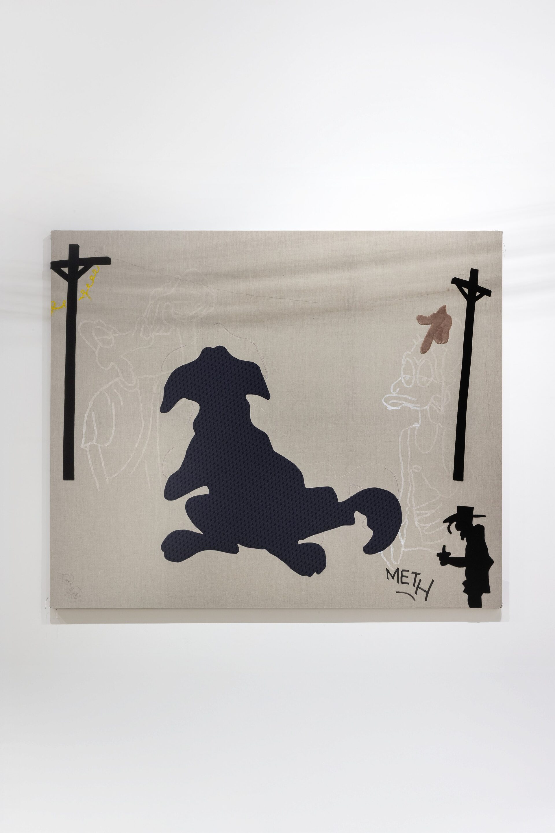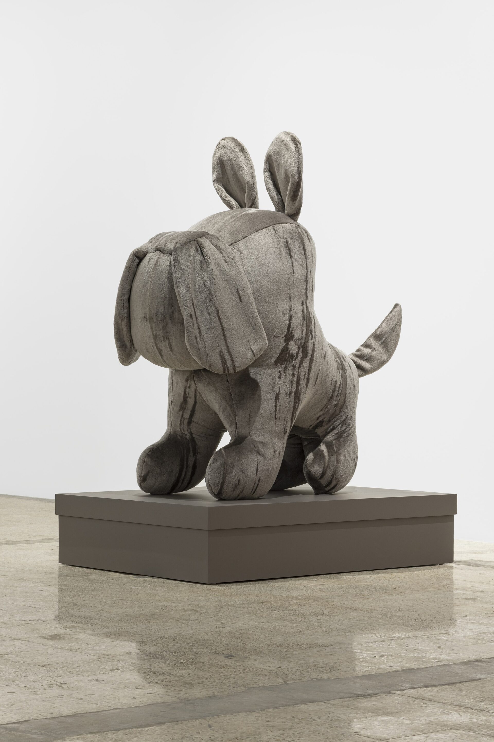 Nor should I also refrain from writing anything about those stuffed dachshunds that so charmingly cross the gallery, or about those enormous bulldogs covered in leopard print?