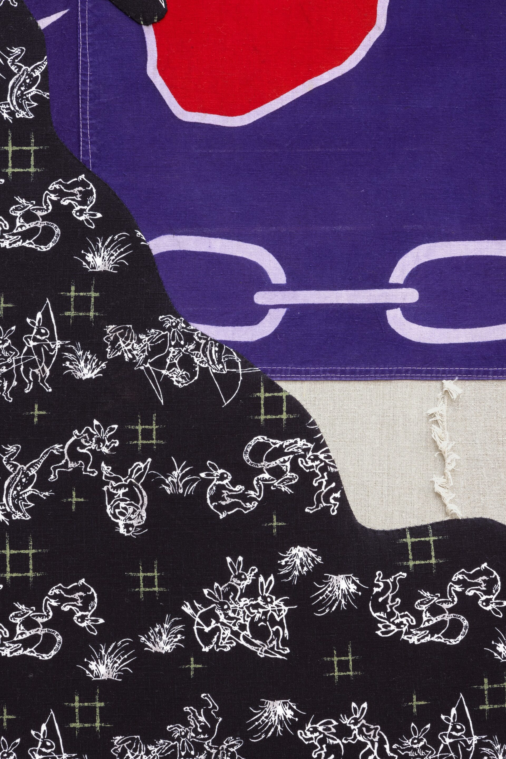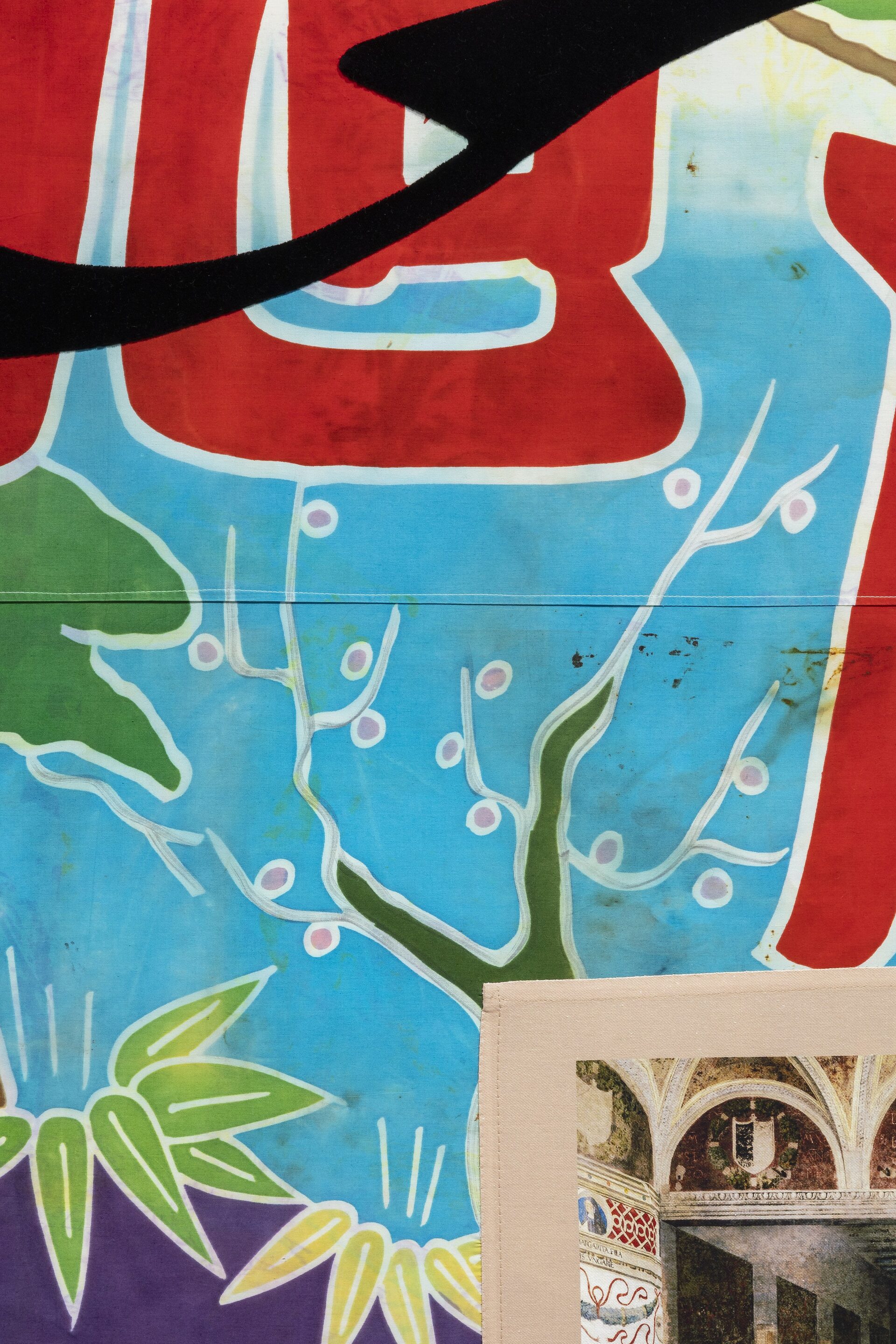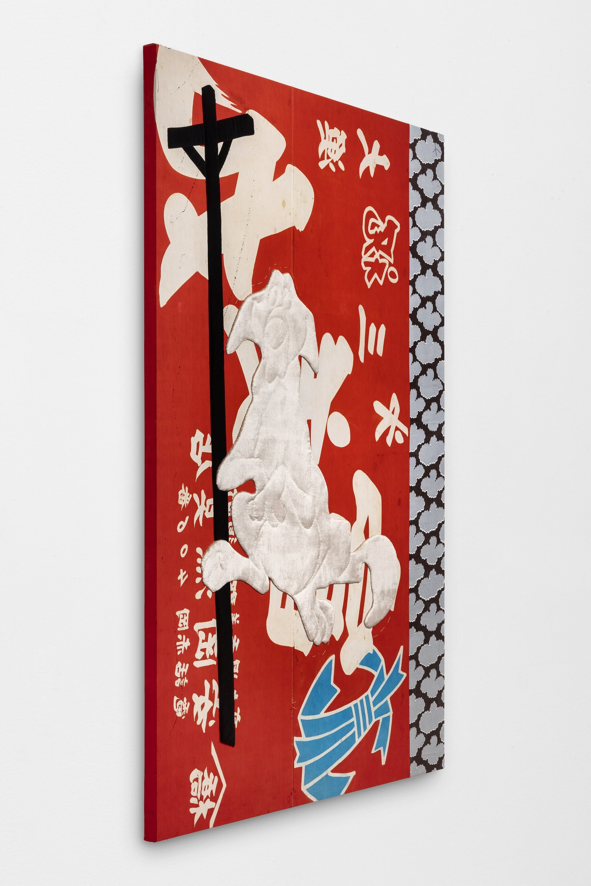 Perhaps if I had the modesty to simply try to describe Cosima’s work without falling into the traps of discourse and interpretation, I might be able to say something: to write, for example, that most of the artworks that make up The Ritz are made from fabrics of the most diverse origins, from Japanese fishing boat…