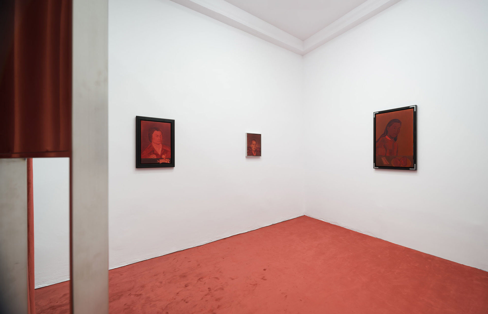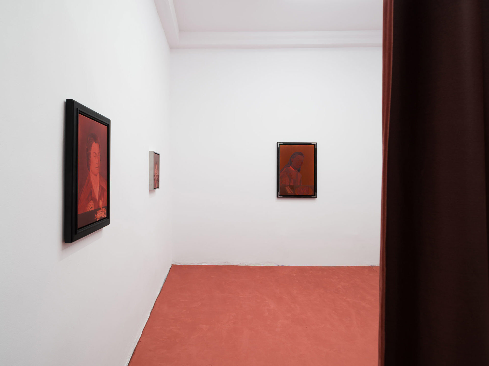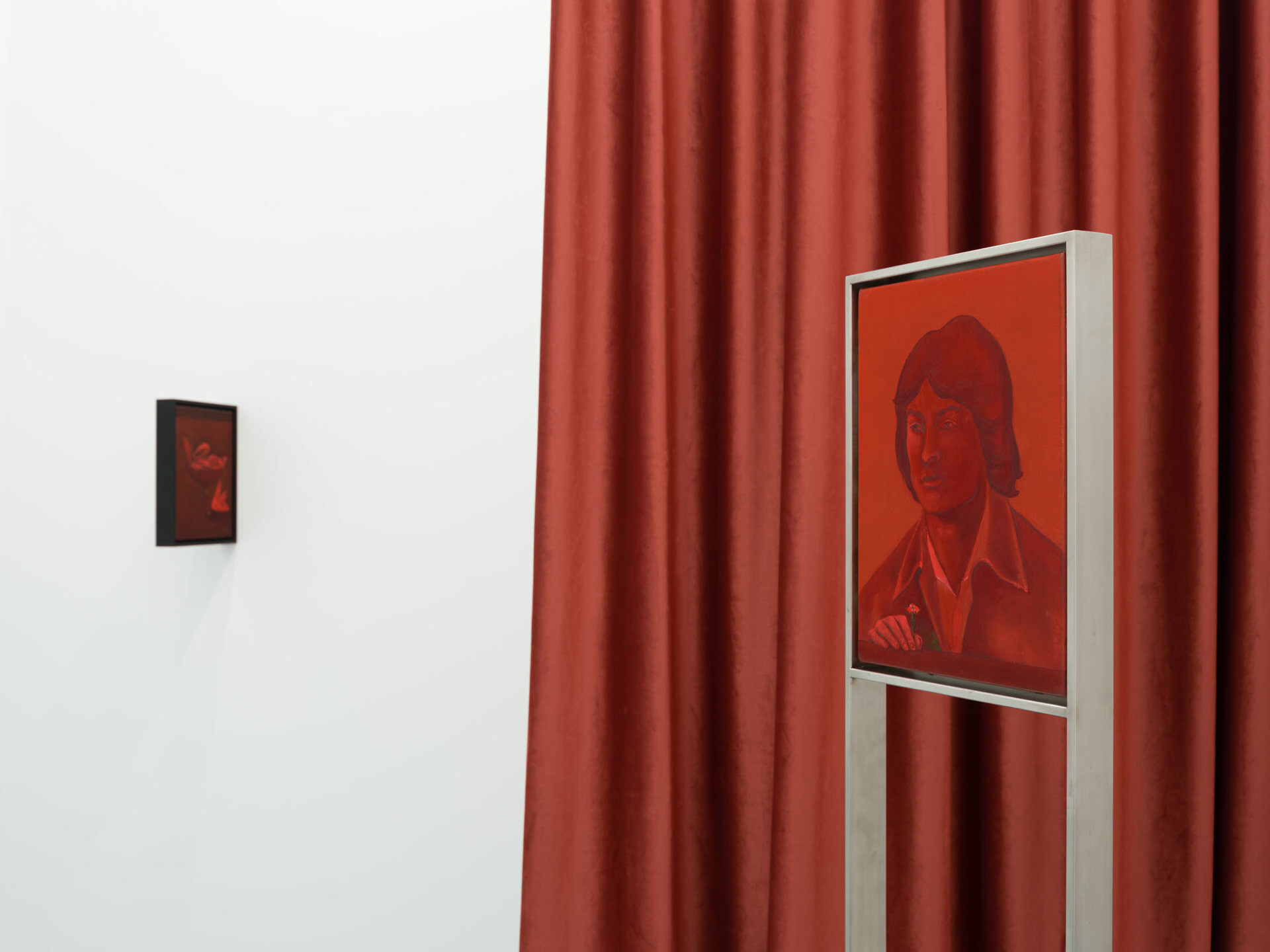 The works create a subtle dialogue between material and perception: the burgundy velvet of drapery, the fabric of the floor, dark tones, and metallic reflections set against stark white walls form a sensorial interplay of textures and atmospheres. These formal choices echo the variability of light and the subjective nature of sight. Semeniuc navigates human essence through the lens of filiation and shared memory, crafting a space where personal mythology meets collective imagination. The Renaissance emerges…