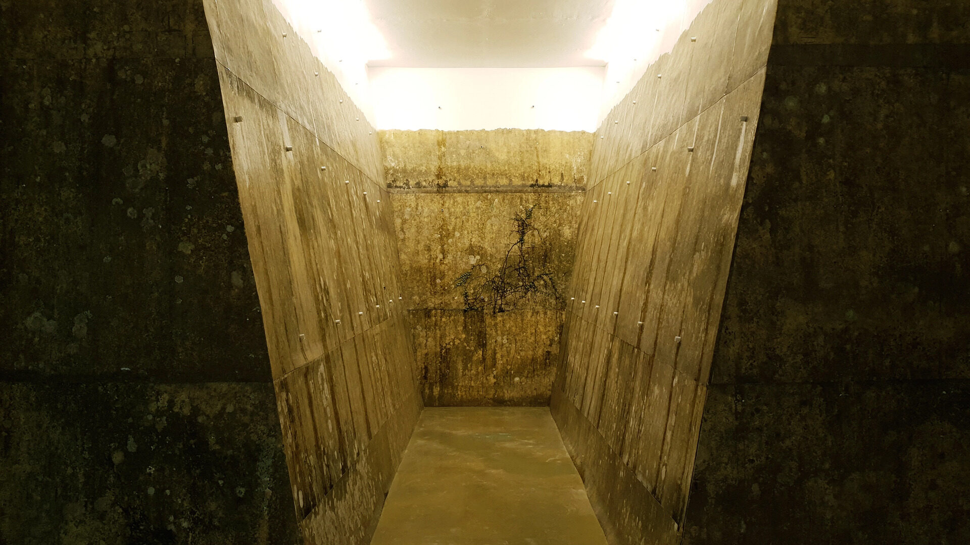 In Kroraj Lirtuaria, Syaiful Aulia Garibaldi (Tepu) creates a site-specific installation featuring a distinct gesture combining his interest in the networked and interconnected nature of ecology. Made to resemble a "talud" (architectural elements designed for highways and buildings on cliffs or unstable grounds), the lichen overgrown structure cycles water to represent the symbolic nature of life itself, depicting the coexistence between man-made infrastructure and nature.