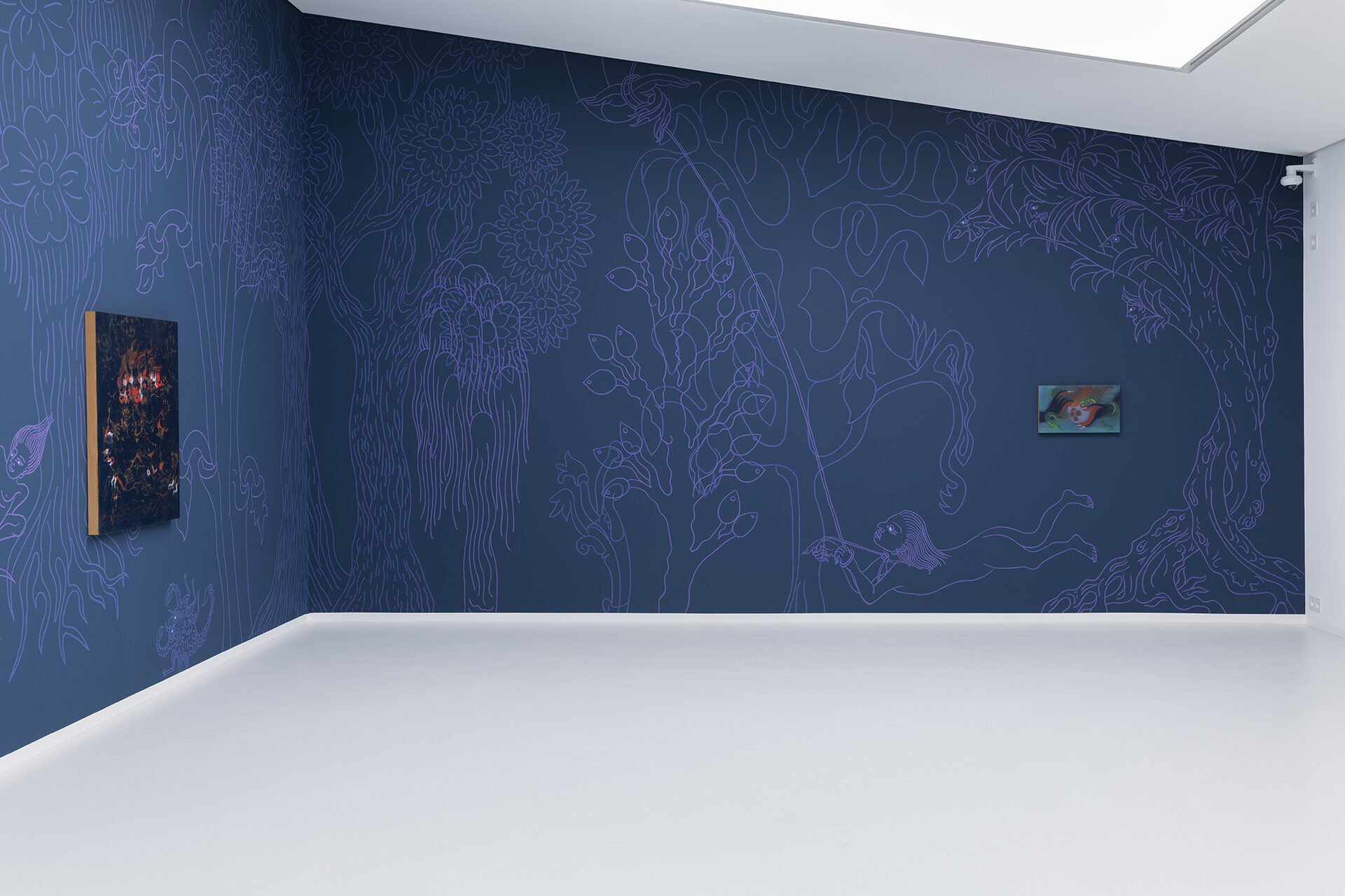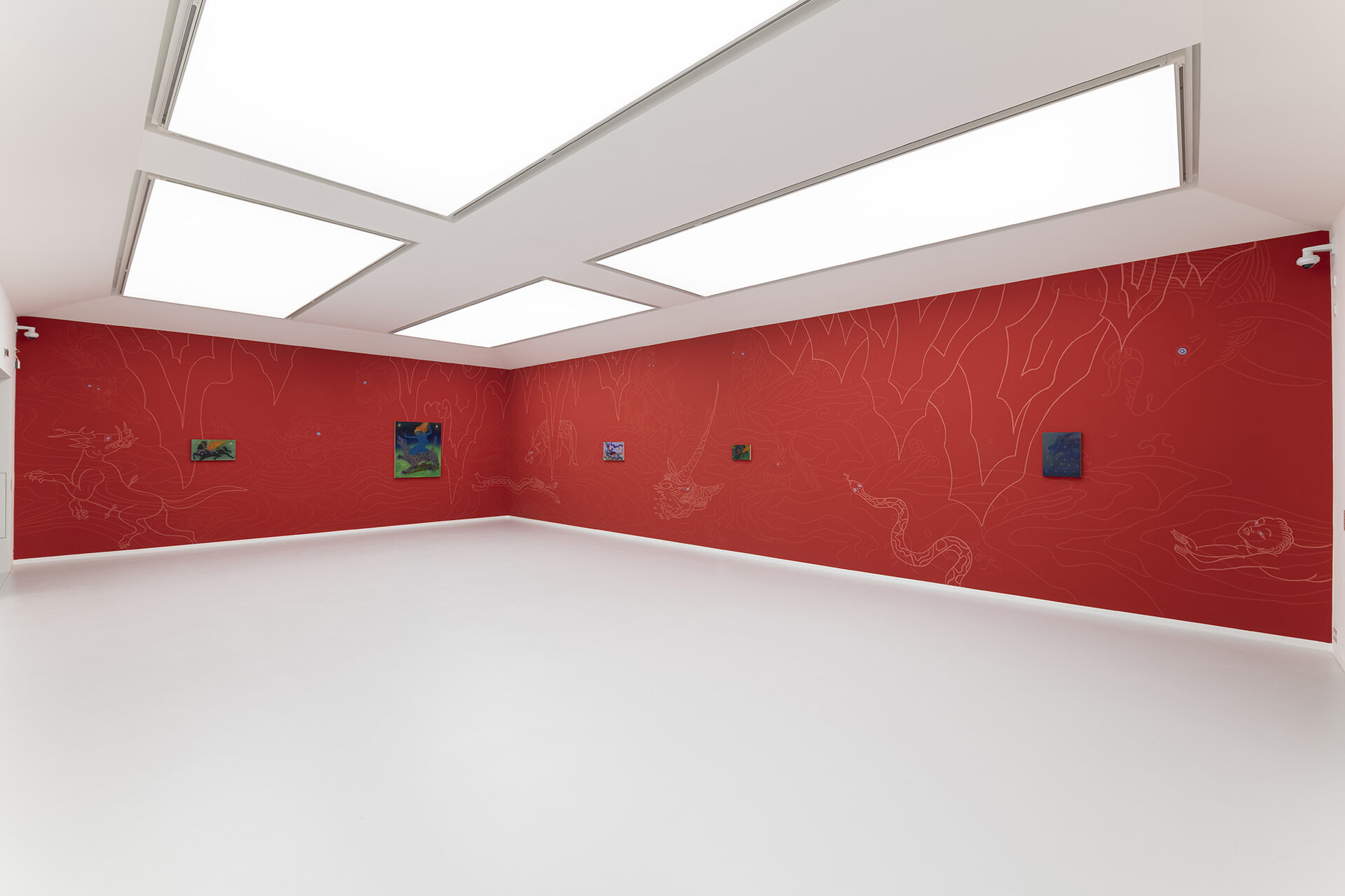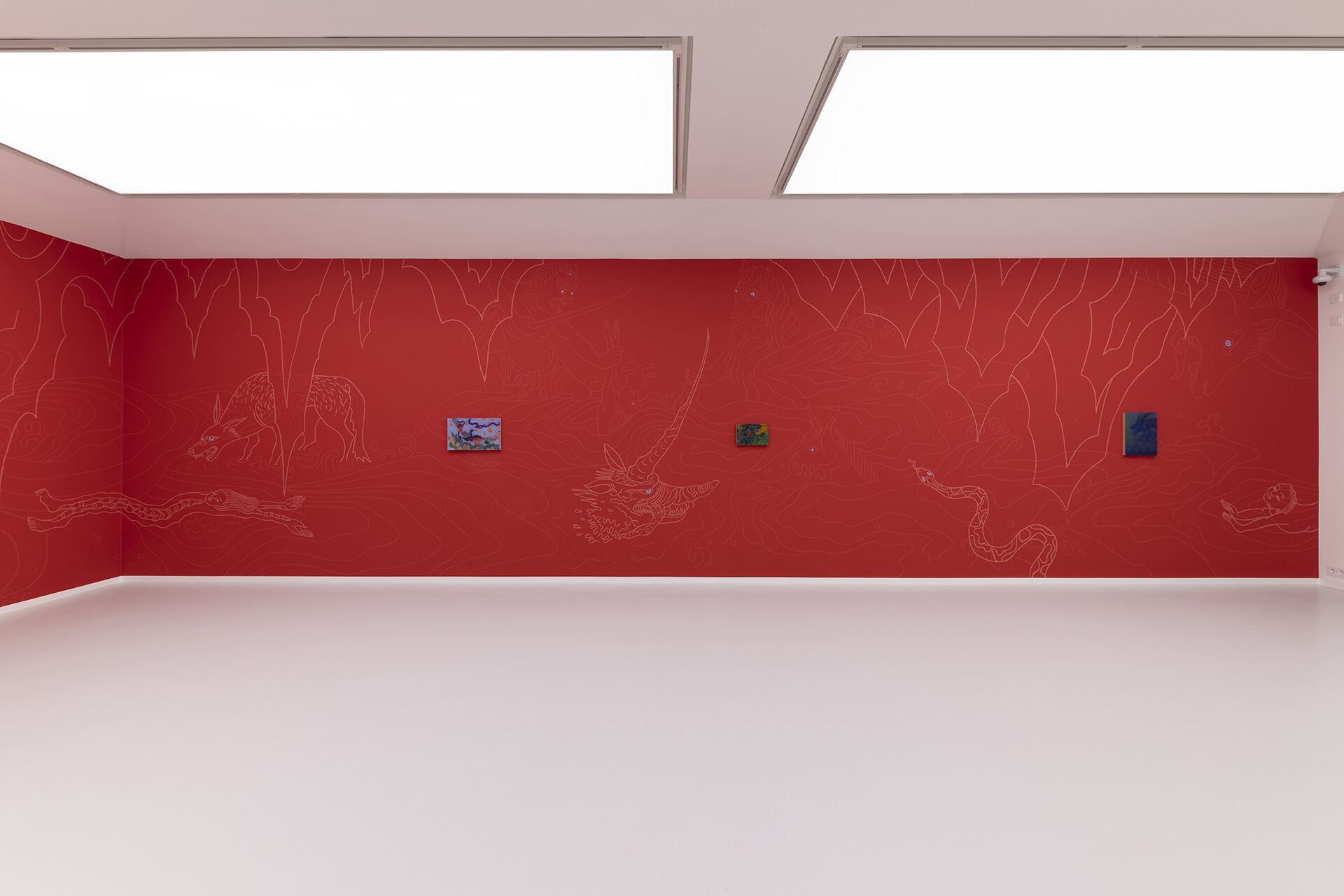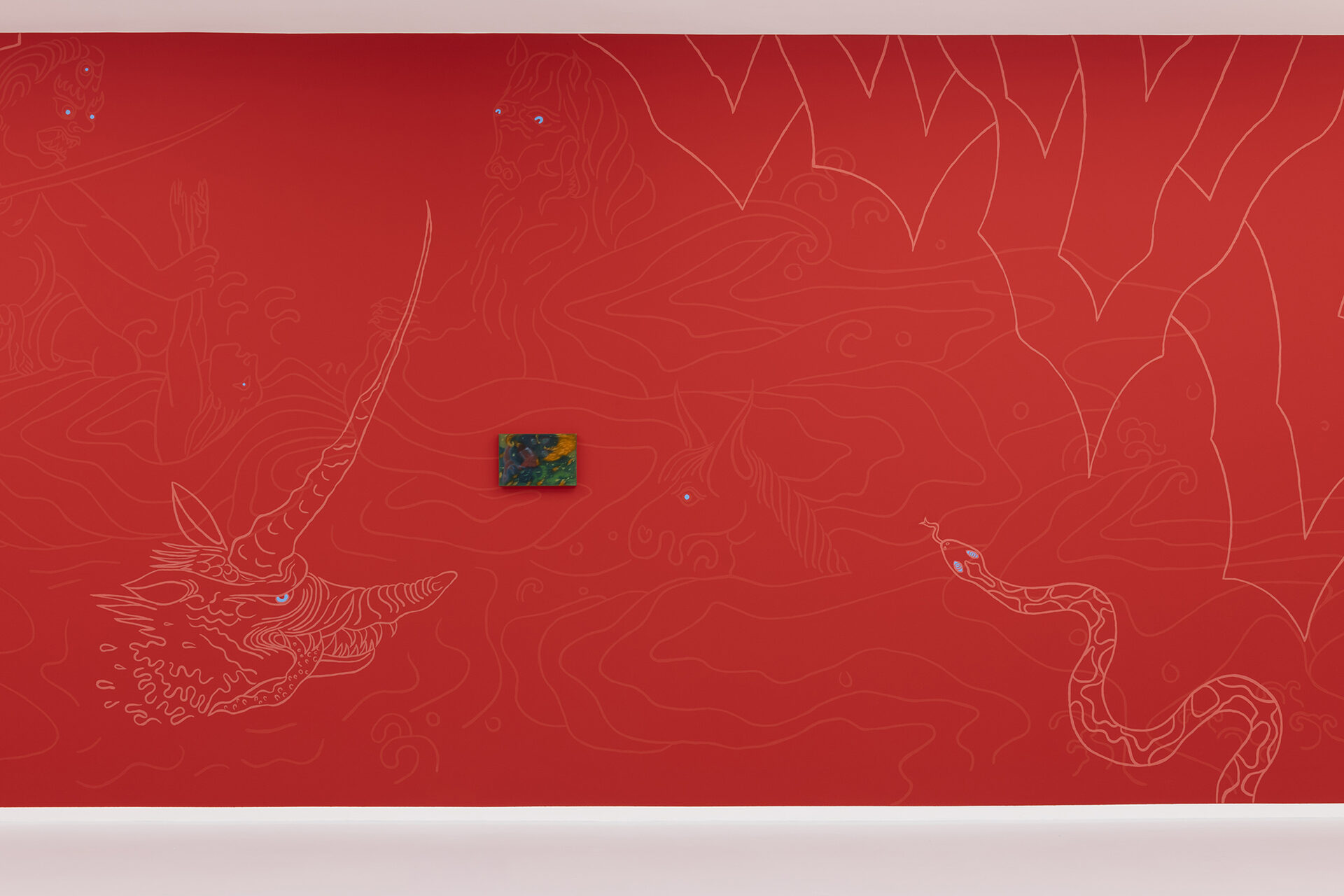 For Ismaning, Ariunbold has created a multi-room installation composed of paintings, videos, and expansive, colorful wall drawings, through which she transports viewers into the mythic world of her earlier homeland, Mongolia. The exhibition is thematically based primarily on the fairy tale “The Story of Galav,” which was passed down orally for centuries and first written down in 1977. It deals with the creation of the universe.