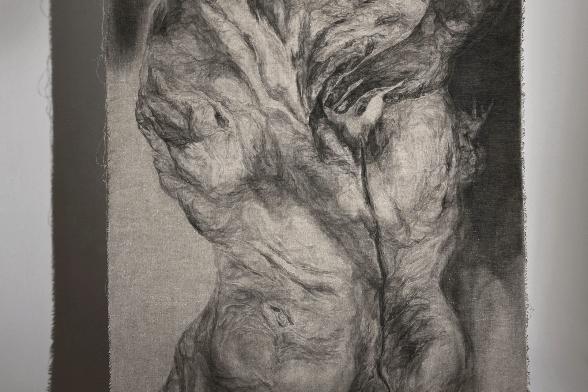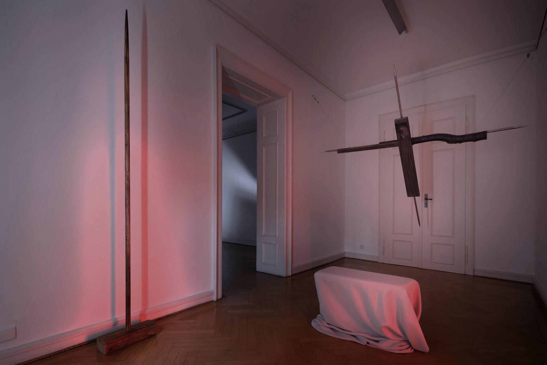 In her exhibition ‘The Highest Point of an Empty Temple’, Polina Shcherbyna looks into the disappointments, and horrors of the 21st century, referring to the cycle of tragedy and hope that repeats itself throughout the whole human history. She examines human weaknesses, the conflict between good and evil and the paradox of human existence – such as how people sacrifice freedom and rights in their fight for freedom and rights.