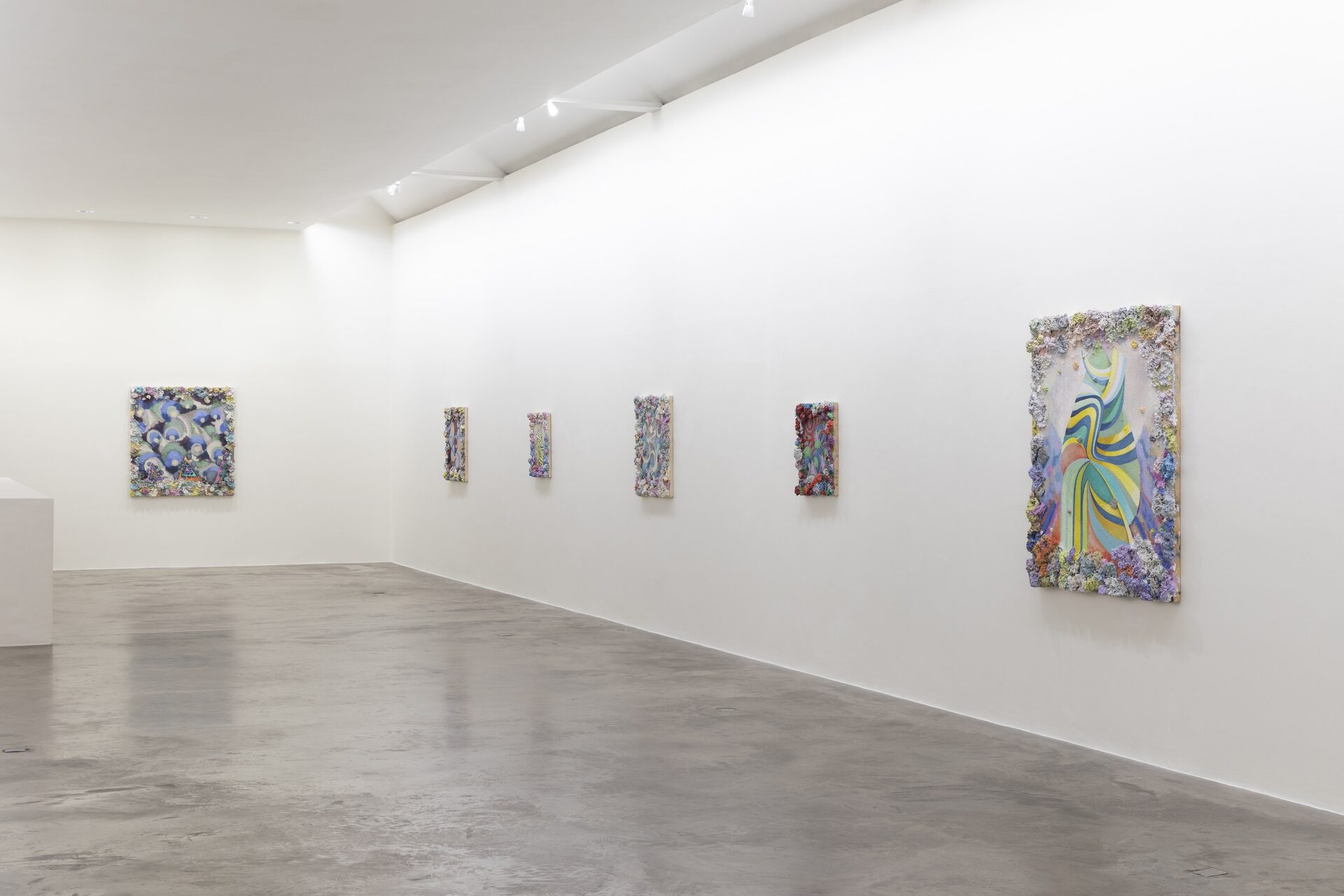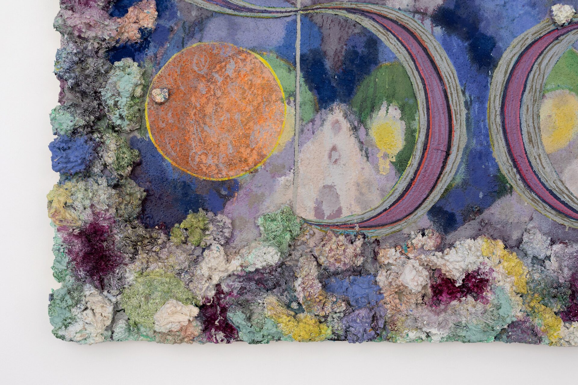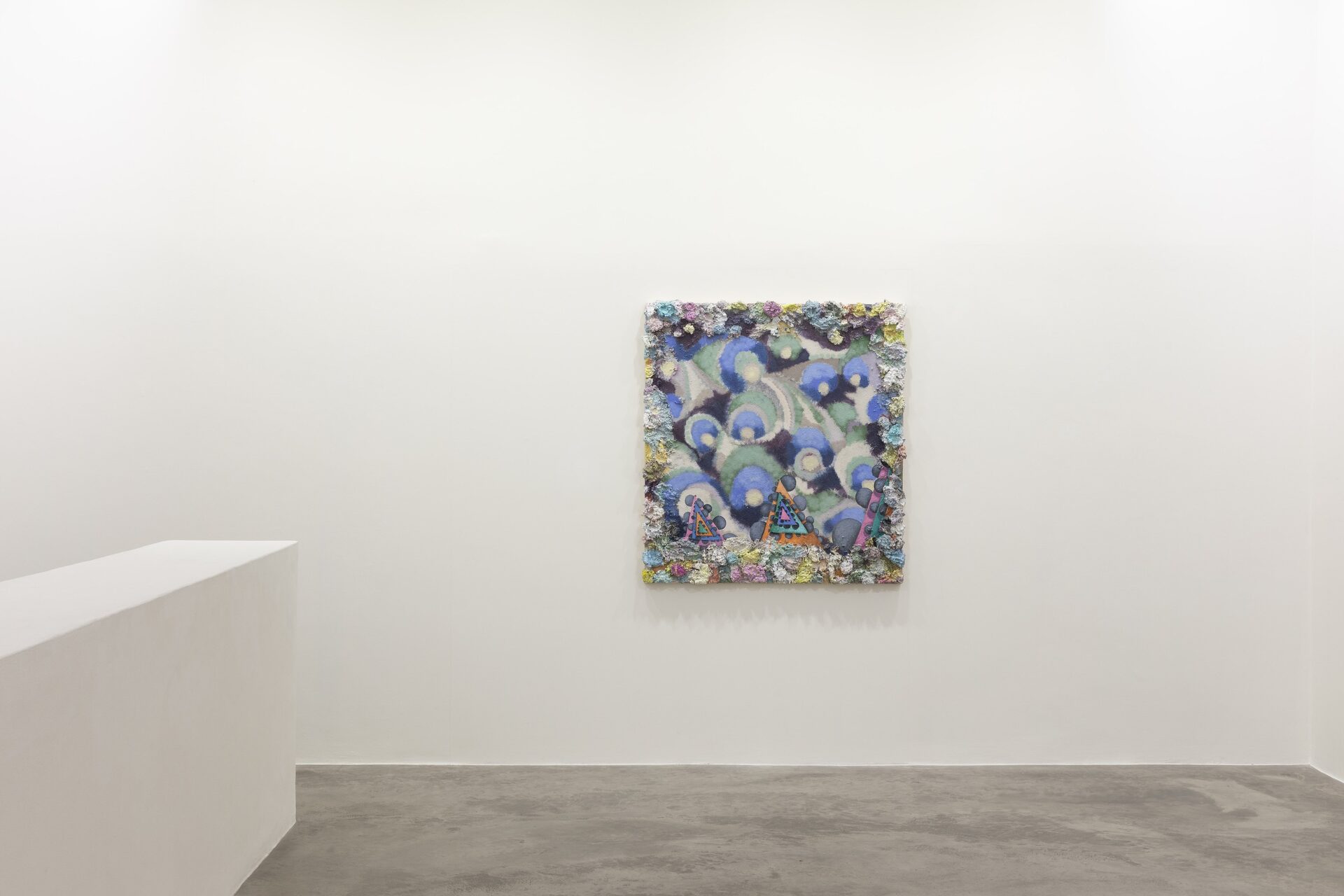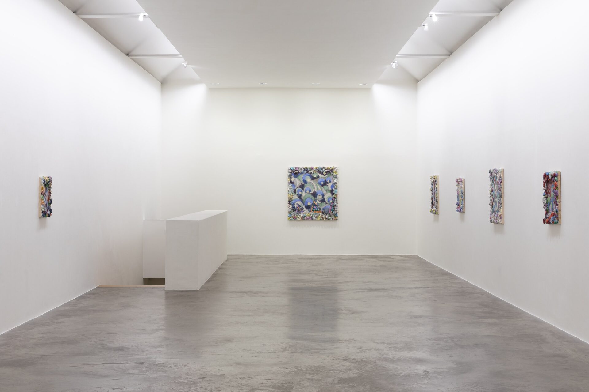 Described by art critic John Yau as “one of the great painters of his generation”, Phillip Allen has refused to settle into any one mode or style, choosing instead to continually push the possibilities of the picture plane resulting in paintings that are sculptural, optical and joyously excessive. Dense accretions of acrylic and oil paint form thick, encrusted borders that frame finely worked interior fields. Within these interiors, rhythmic geometries, spiralling motifs and kaleidoscopic colour sequences unfold with a sense of buoyant improvisation.