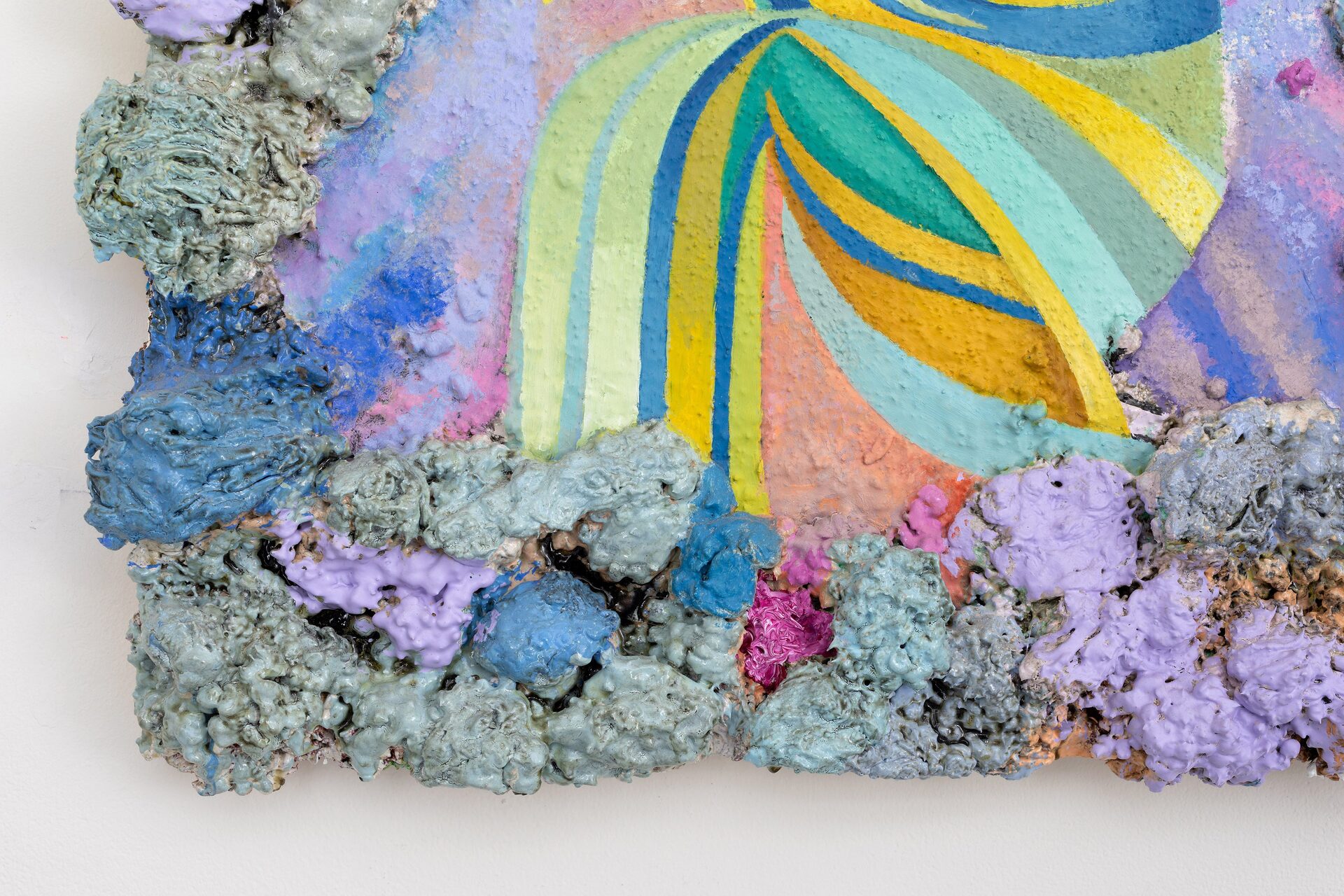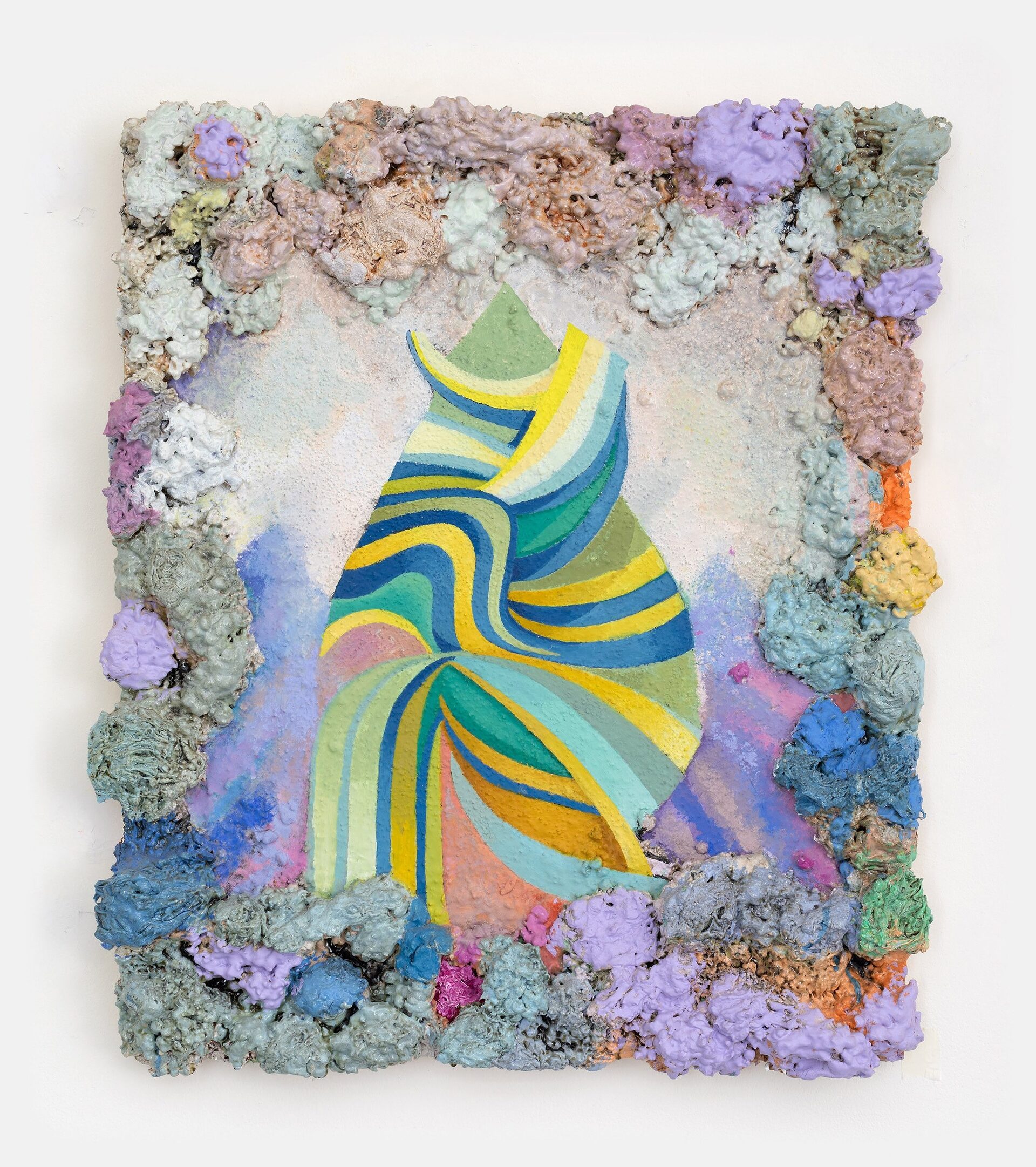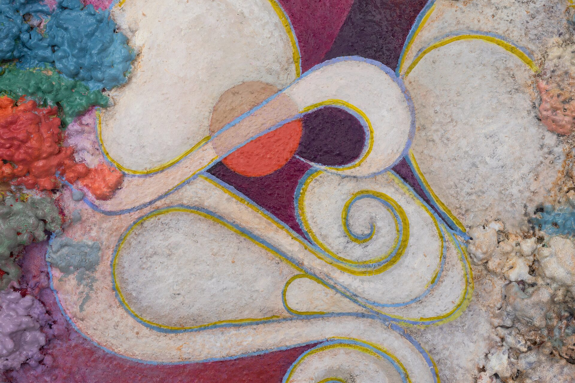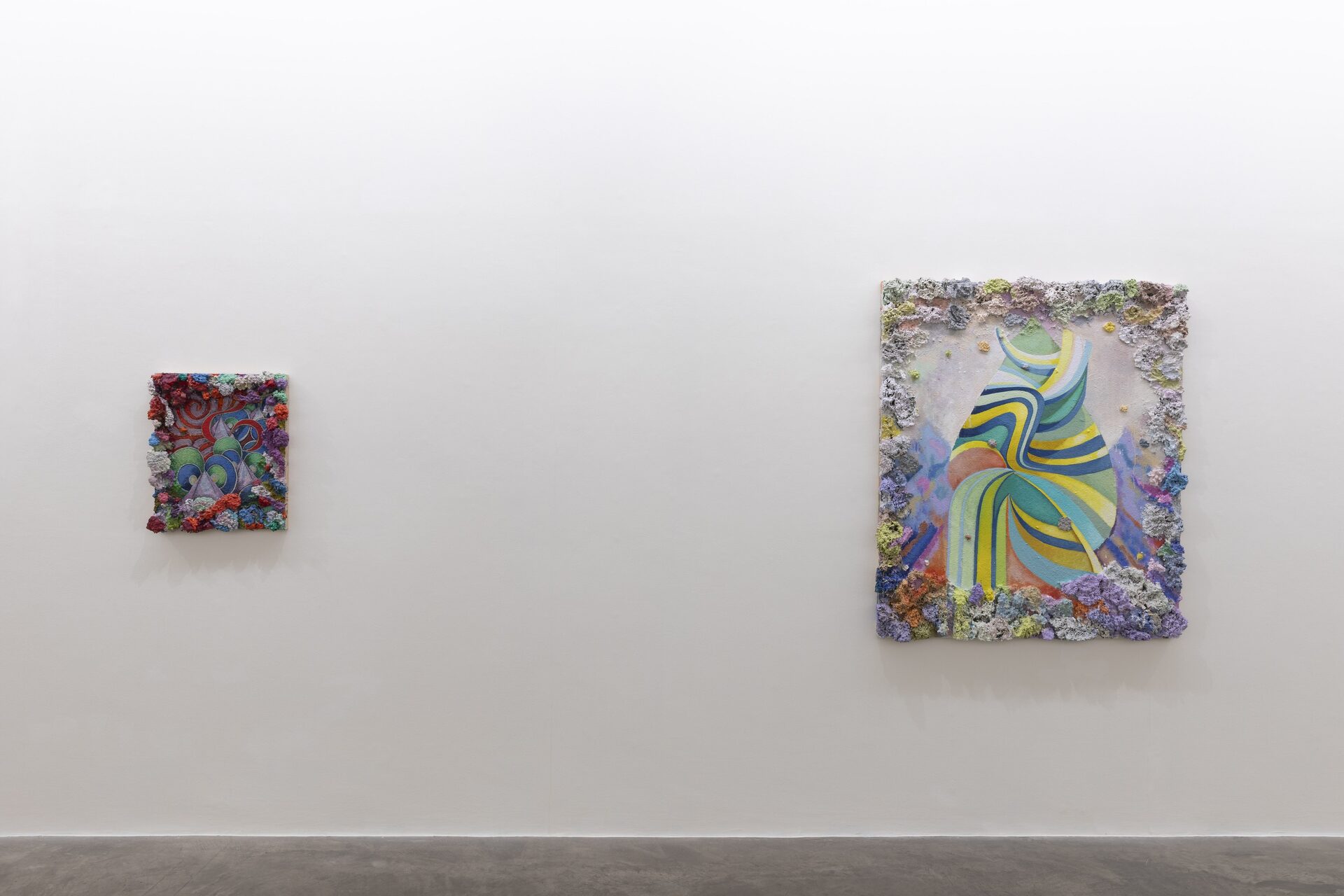 Described by art critic John Yau as “one of the great painters of his generation”, Phillip Allen has refused to settle into any one mode or style, choosing instead to continually push the possibilities of the picture plane resulting in paintings that are sculptural, optical and joyously excessive. Dense accretions of acrylic and oil paint form thick, encrusted borders that frame finely worked interior fields. Within these interiors, rhythmic geometries, spiralling motifs and kaleidoscopic colour sequences unfold with a sense of buoyant improvisation.