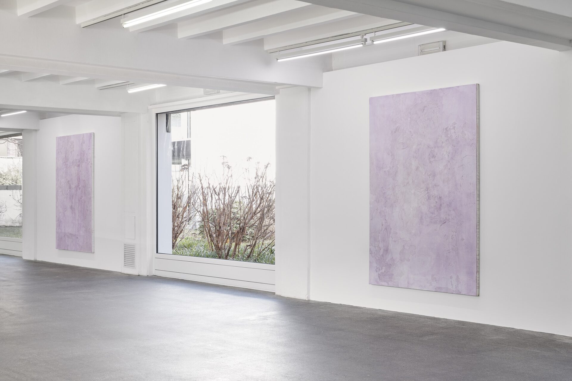 Few artists achieve work of such consistent tension. It is as if a flaming torch were passed on from series to series. Or as if skin were stretched particularly tightly over the bones of each canvas. It is a tension which has developed exclusively from the painterly postulates which Monika Baer has increasingly unfolded over the past thirty years. Without compromise Baer has thus created a body of work which flows free from all currents. Baer’s visual language appears timeless while also being strongly connected to the present. Sauntering, dialectic movements create a charged vibration and also characterise the internal correlations of the paintings.