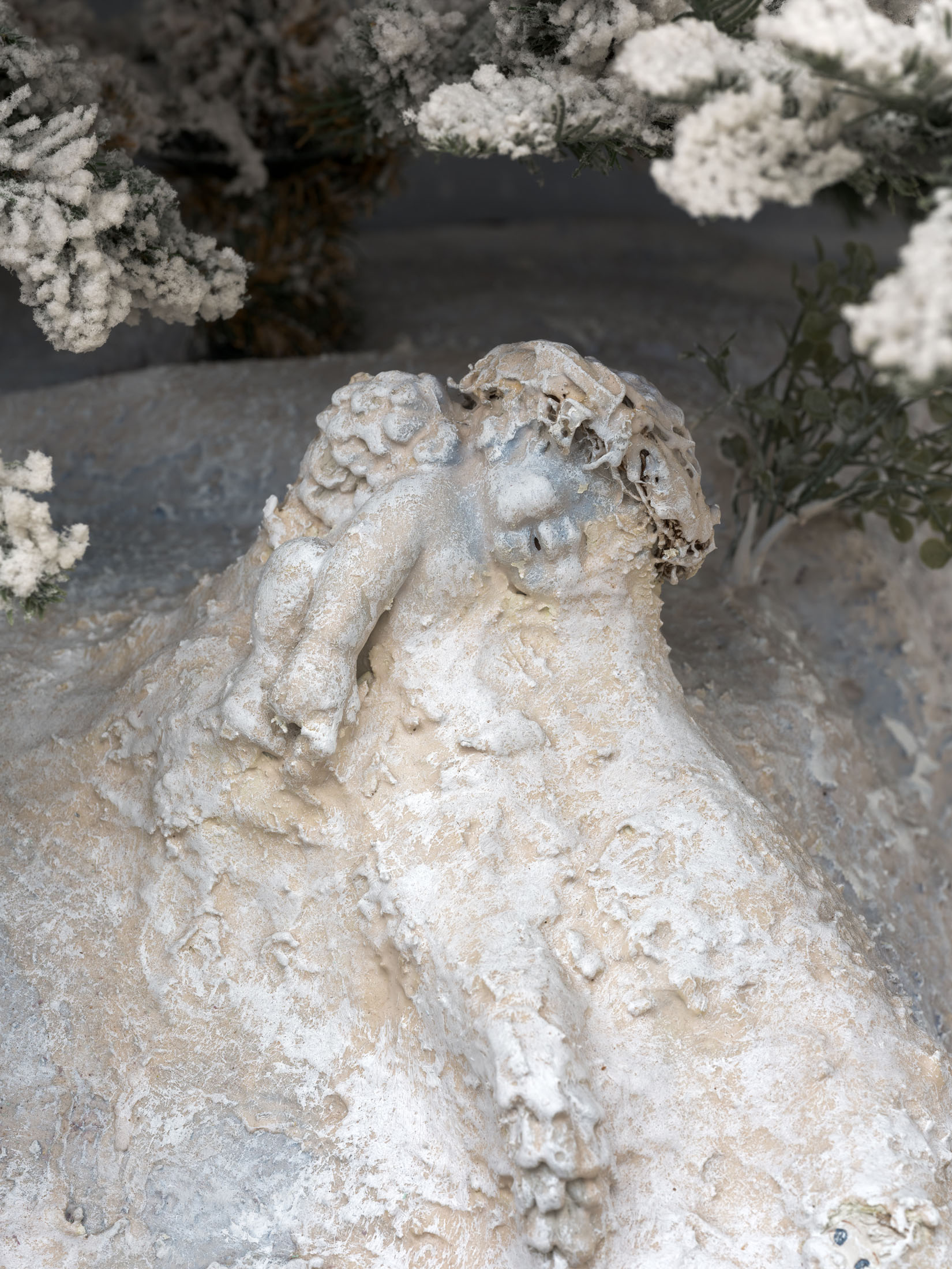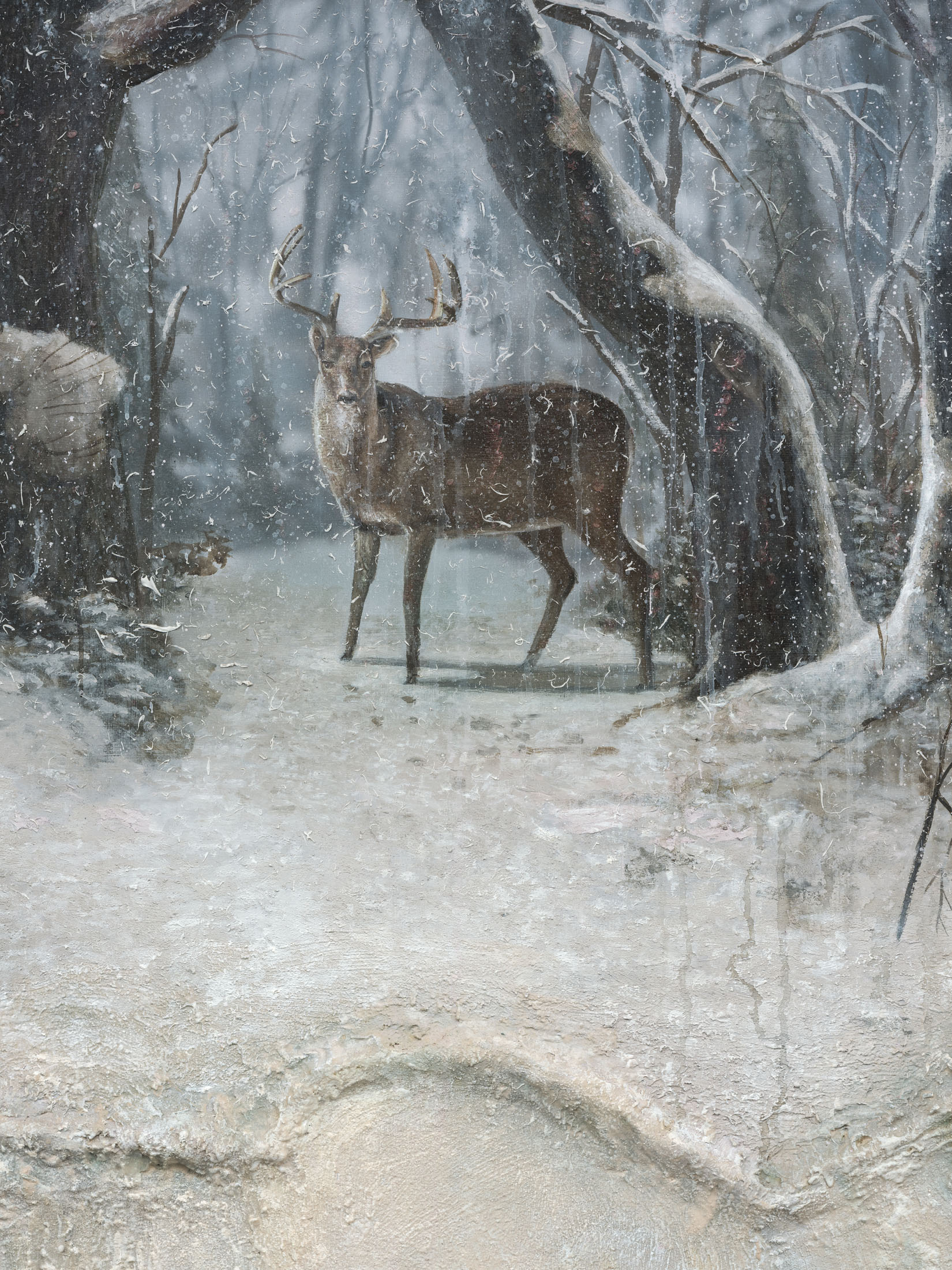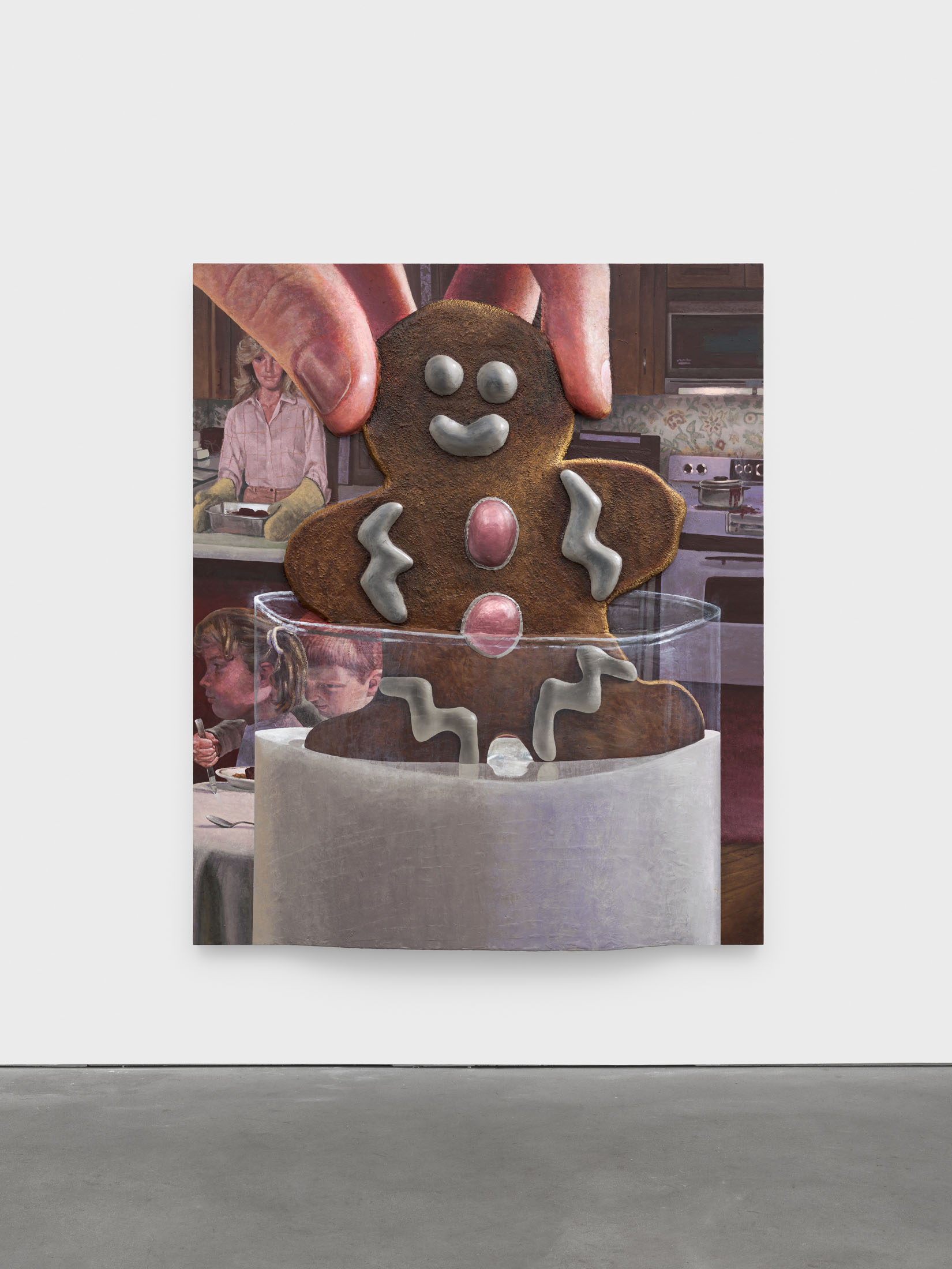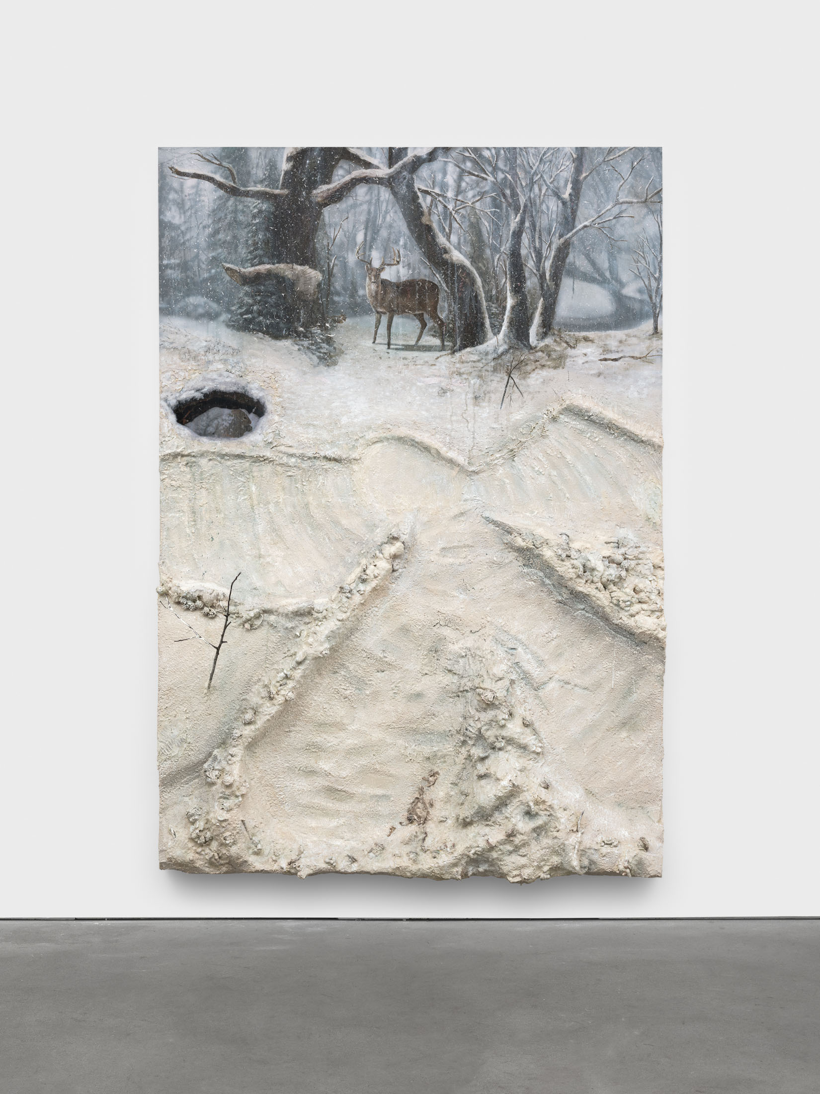 Growing up in West Virginia, Abdella’s earliest experiences of visual spectacle came from theme parks, hunting trips, and the seasonal displays of domestic life. In his practice, he reflects on how everyday craft, decoration, and entertainment shape the way we see and feel. Trained as a painter but working with a cinematic and sculptural approach to surface and texture, he constructs complex, tactile compositions. Abdella carries forward this fascination with illusion and craft, drawing inspiration from Robert Gober’s exploration of the uncanny in the everyday and Tex Avery’s exaggerated animation logic.