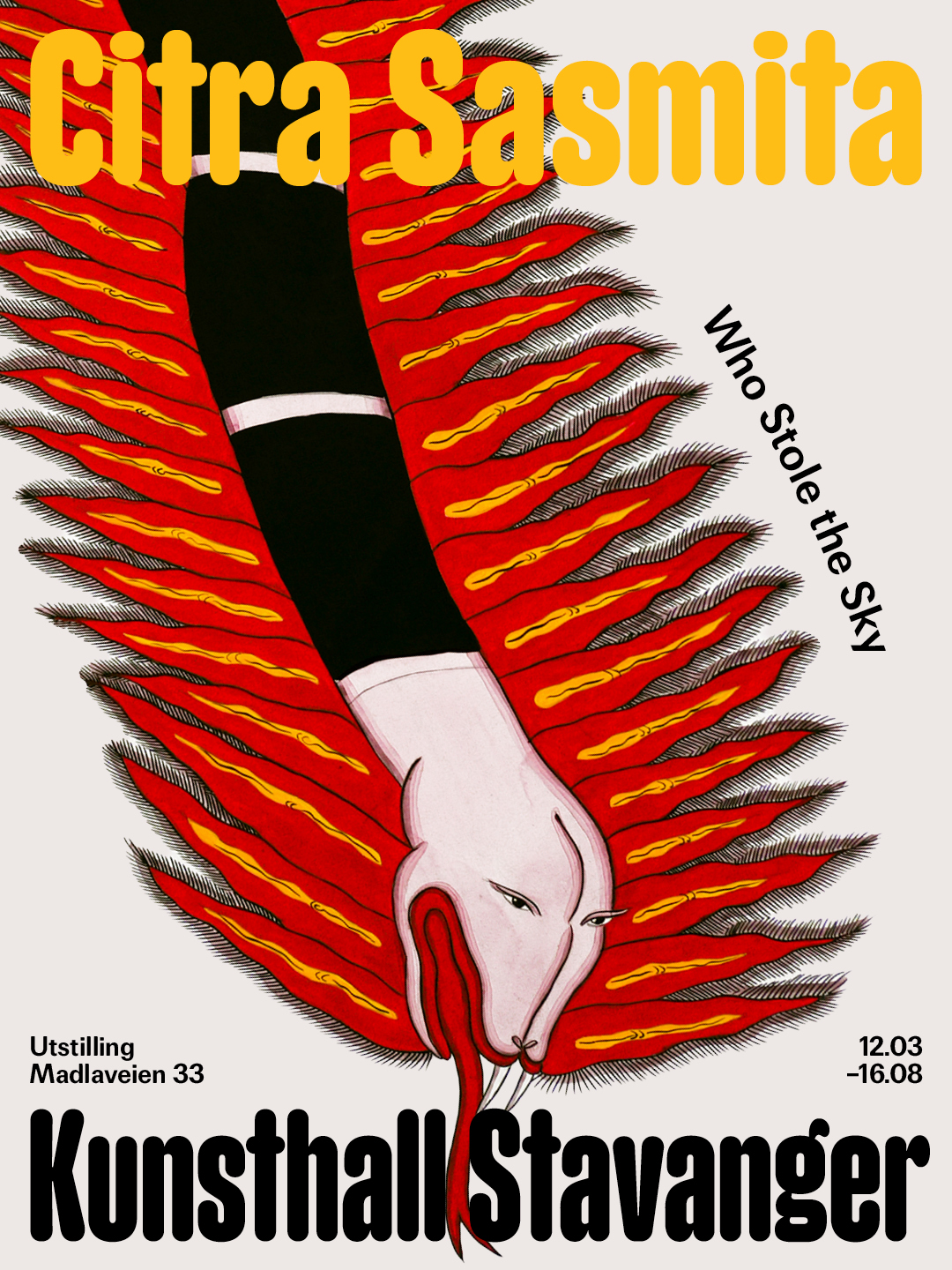 Kunsthall Stavanger is proud to present Who Stole the Sky, the first solo exhibition in the Nordic region by interdisciplinary Balinese artist Citra Sasmita. For the Kunsthall, Sasmita has created a new body of work that unfolds as a multisensory meditation on ancestral memory, humanity’s relationship to nature, and spirituality. The exhibition will showcase traditional Kamasan paintings, textiles, and sculpture, and features an immersive installation in which Balinese culture and techniques are reinterpreted through a feminist lens. The exhibition proposes art as a ritual space that invites viewers to encounter history, cosmology, and the body, not as separate realms, but as deeply entangled.