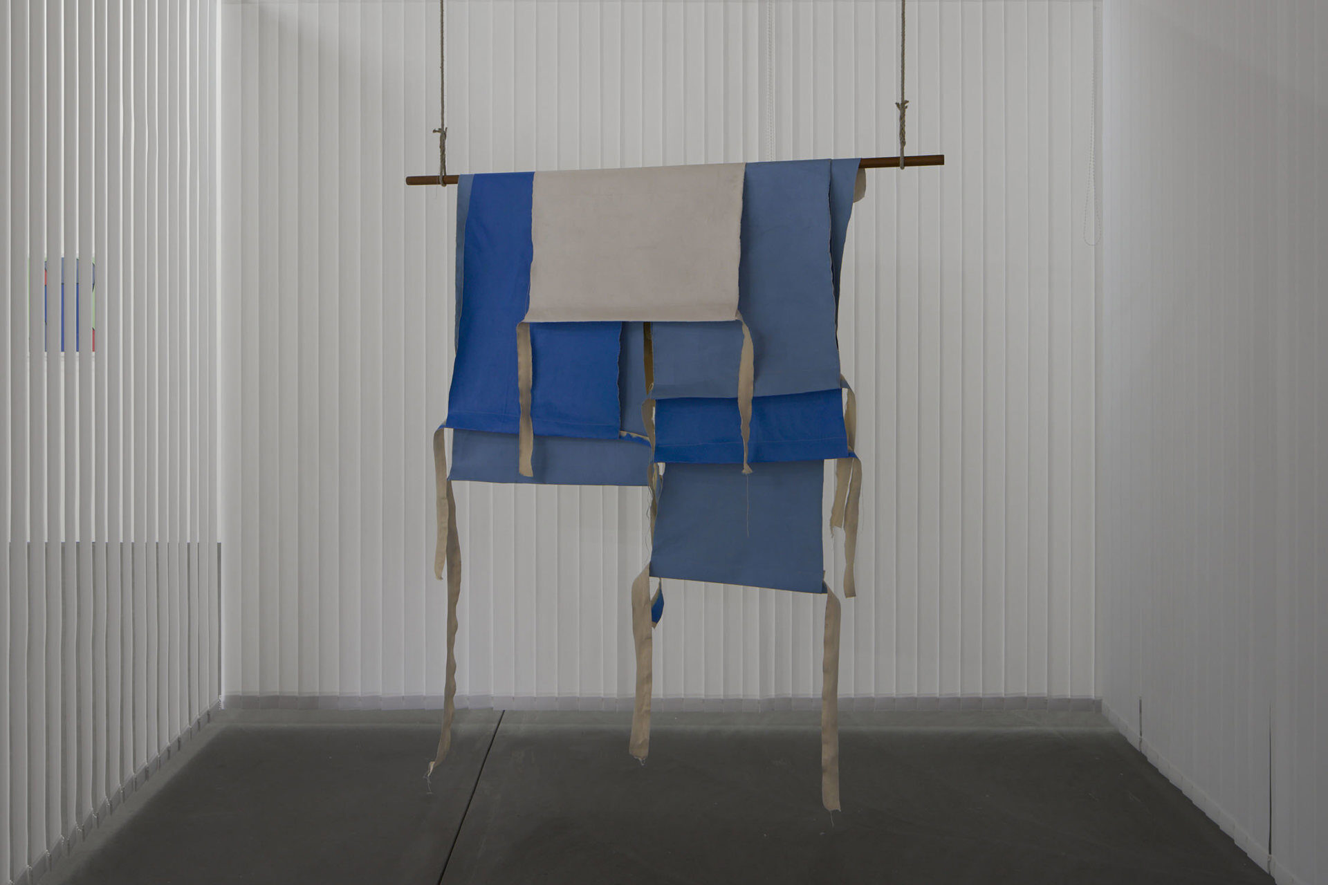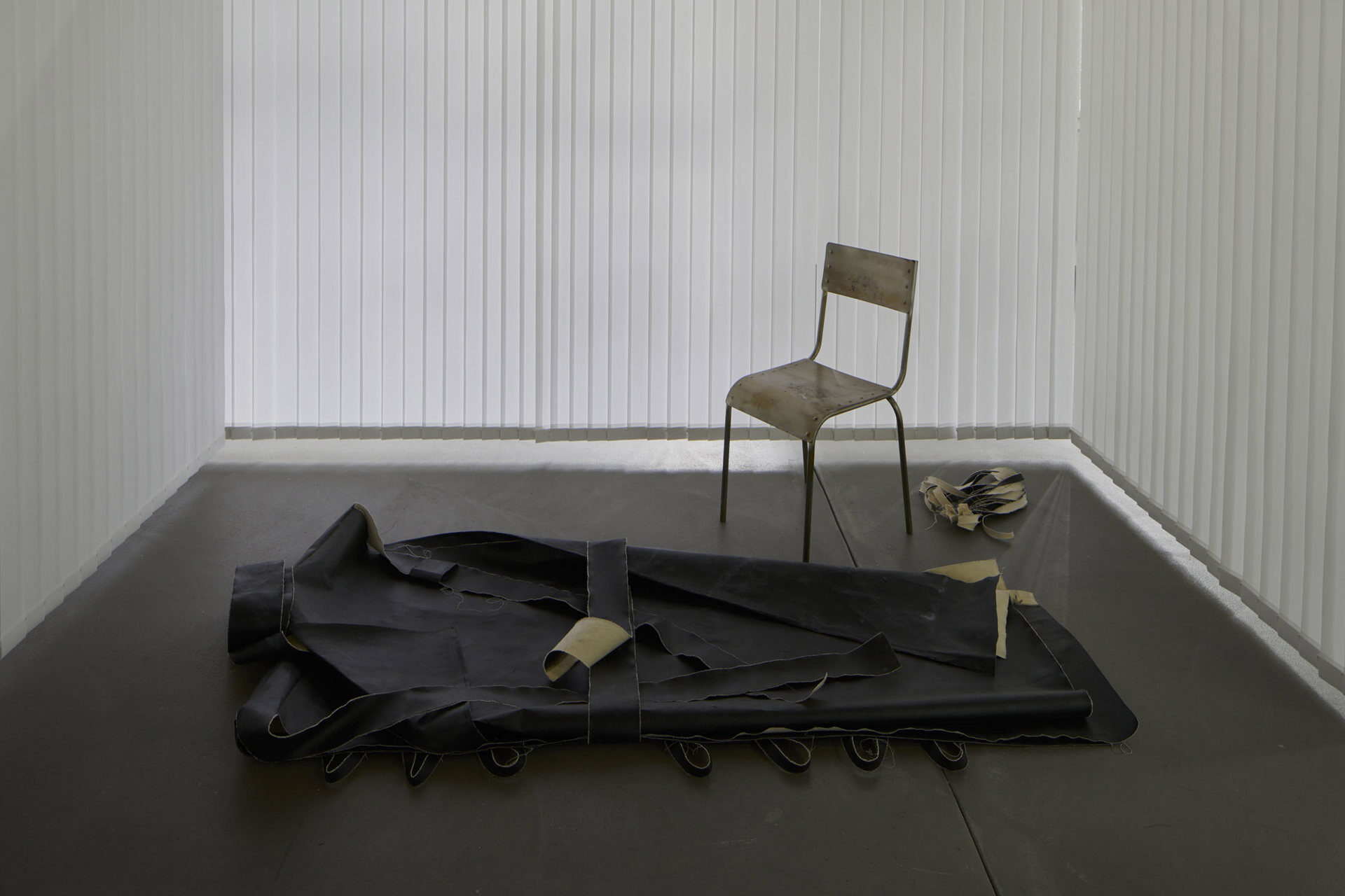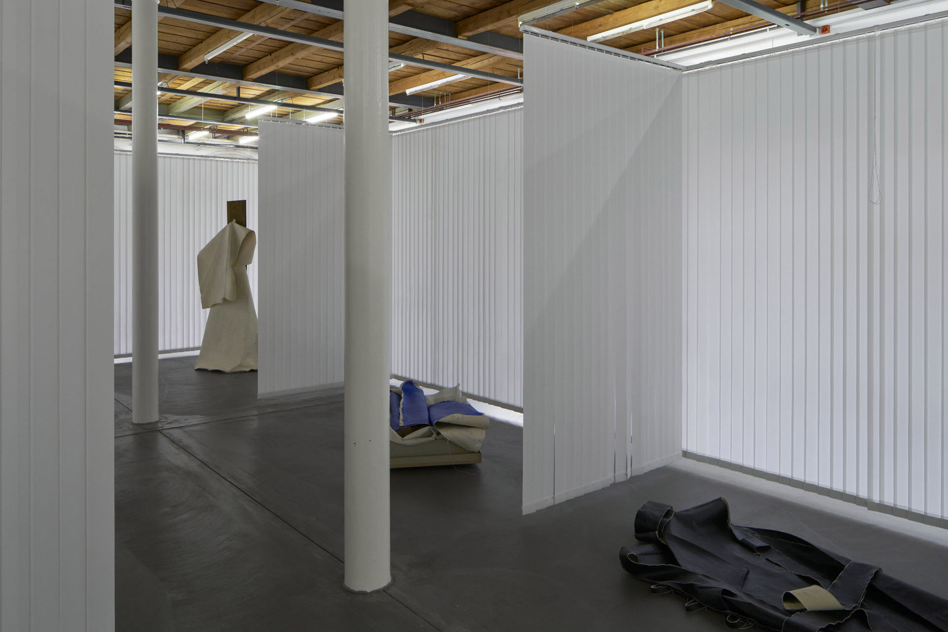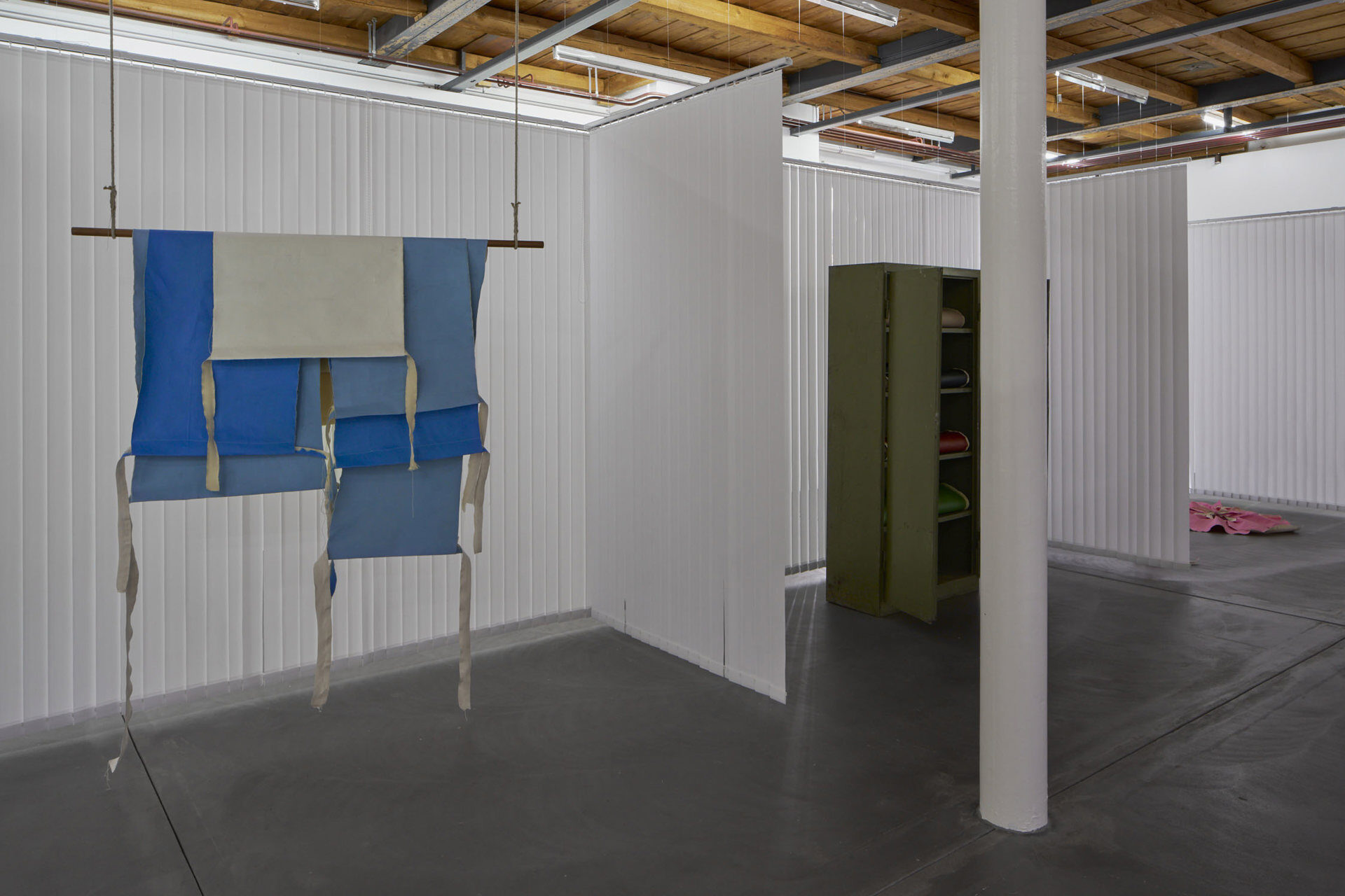 Her exhibition is made up of two ensembles. Outside the curtain, the motif of a bust is repeated across eighteen paintings on paper, with a series of different patterns cut. Reminiscent of preparatory work for a collection, the palette draws from a swatch of 110 colours developed by the artist for the work. Blocks of colour appear side by side in each painting, without any mixing taking place. The figure seen from the back both resists representation and offers itself to abstraction. The curves that form the body…