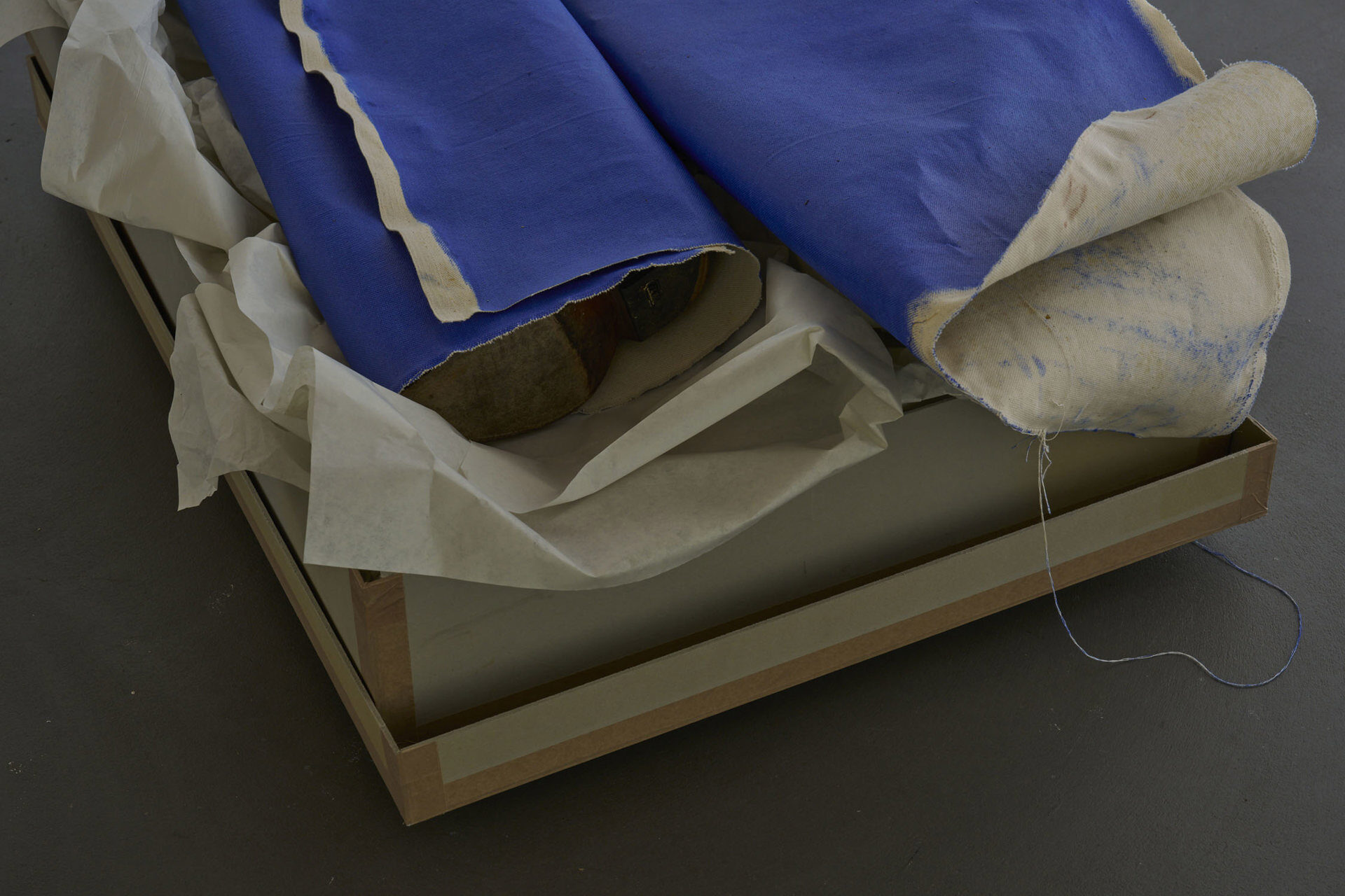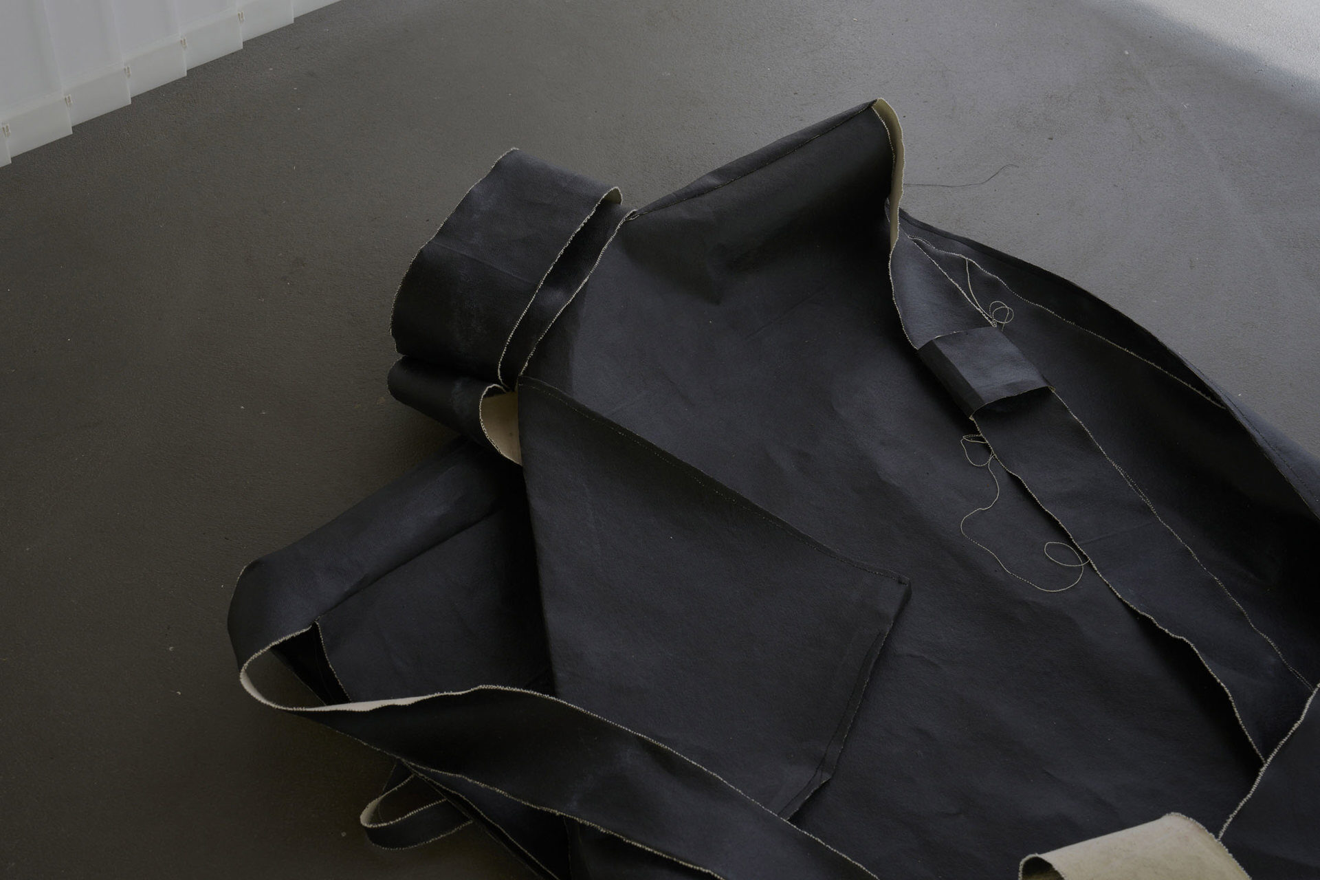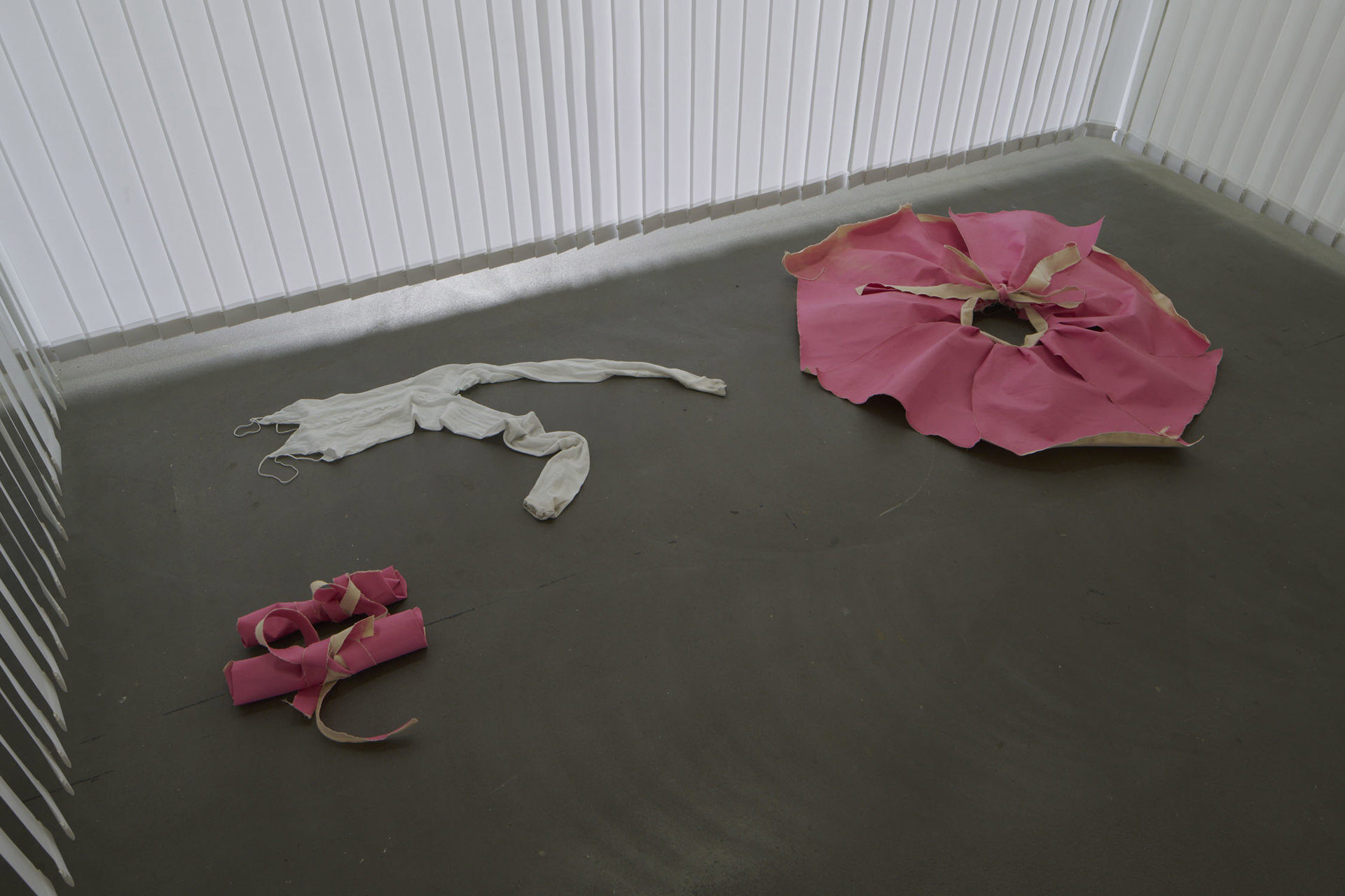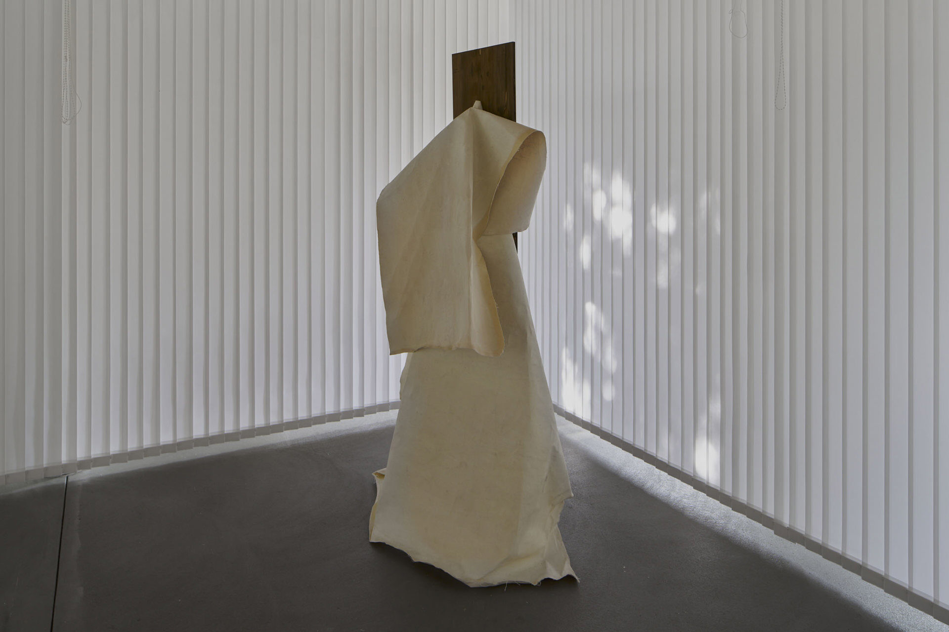 Her exhibition is made up of two ensembles. Outside the curtain, the motif of a bust is repeated across eighteen paintings on paper, with a series of different patterns cut. Reminiscent of preparatory work for a collection, the palette draws from a swatch of 110 colours developed by the artist for the work. Blocks of colour appear side by side in each painting, without any mixing taking place. The figure seen from the back both resists representation and offers itself to abstraction. The curves that form the body…