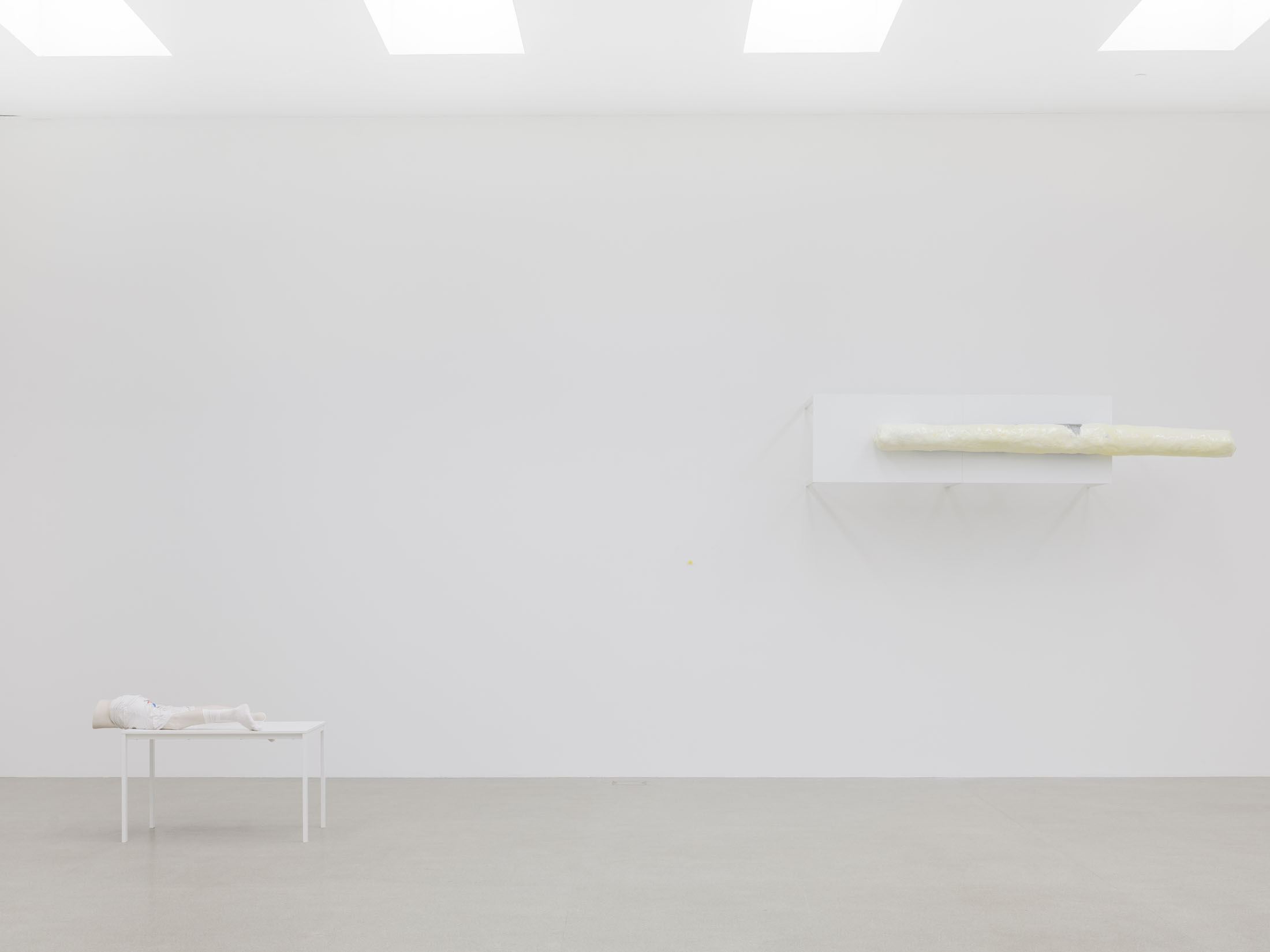 The work of Jean-Charles de Quillacq (*1979, F) consists mainly of casts of fragments of male bodies and limp-looking tubular structures. Everyday objects also appear, such as shoes and tables, as well as materials and techniques that receive little attention on an aesthetic level: plastic corroded with acetone or epoxy resin mixed with various bodily fluids. His classicist exhibitions are usually characterised by a kind of cool eroticism and sparse fetishism. All of these contradictory characteristics challenge common notions of masculinity. For the Salle Poma, de Quillacq continues this exploration with a new group of works based on the artistic concept of “morbidezza” (softness of the body with positive connotations).