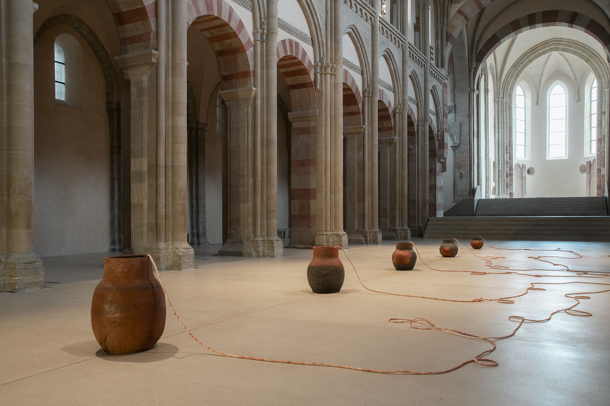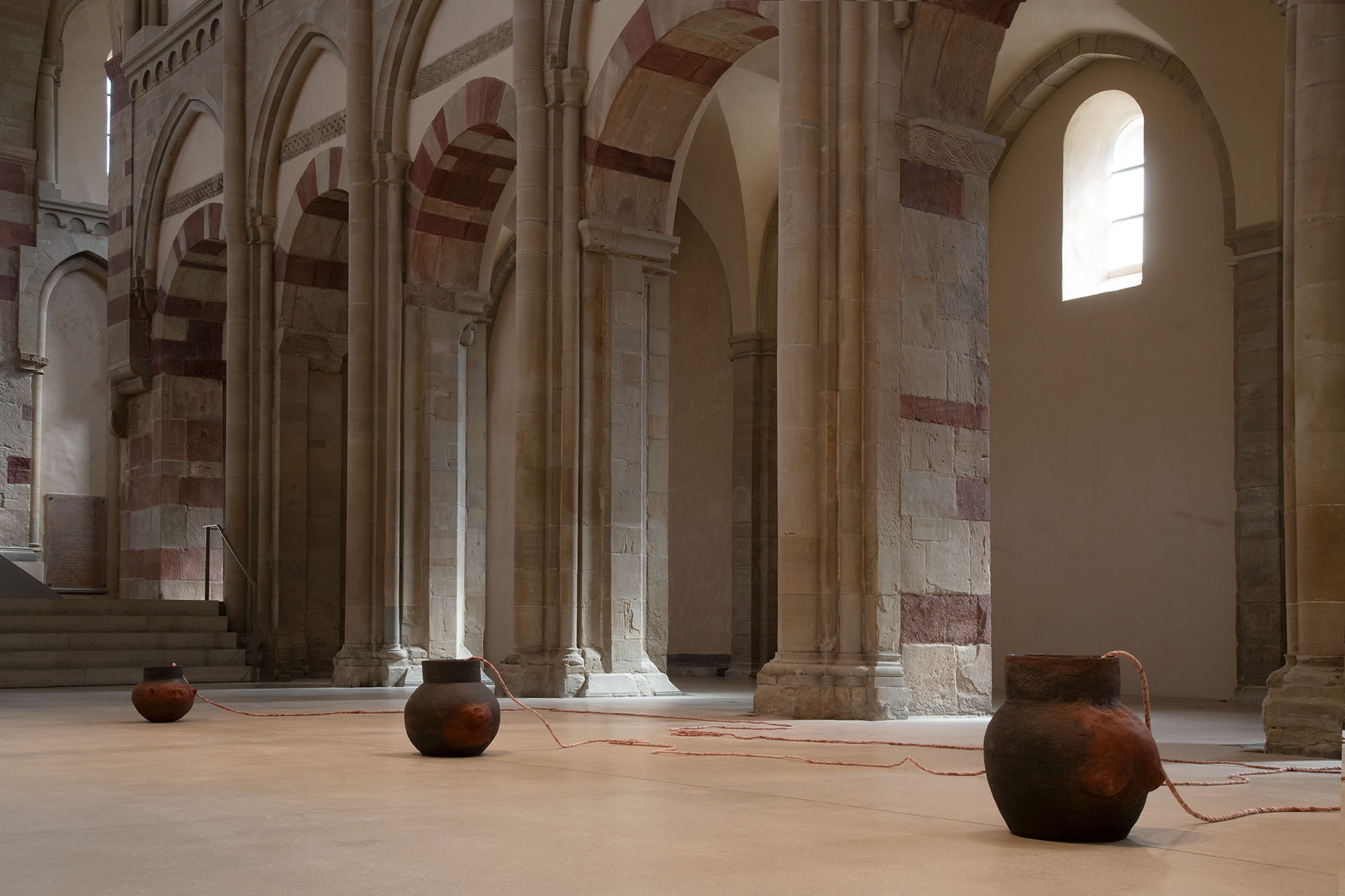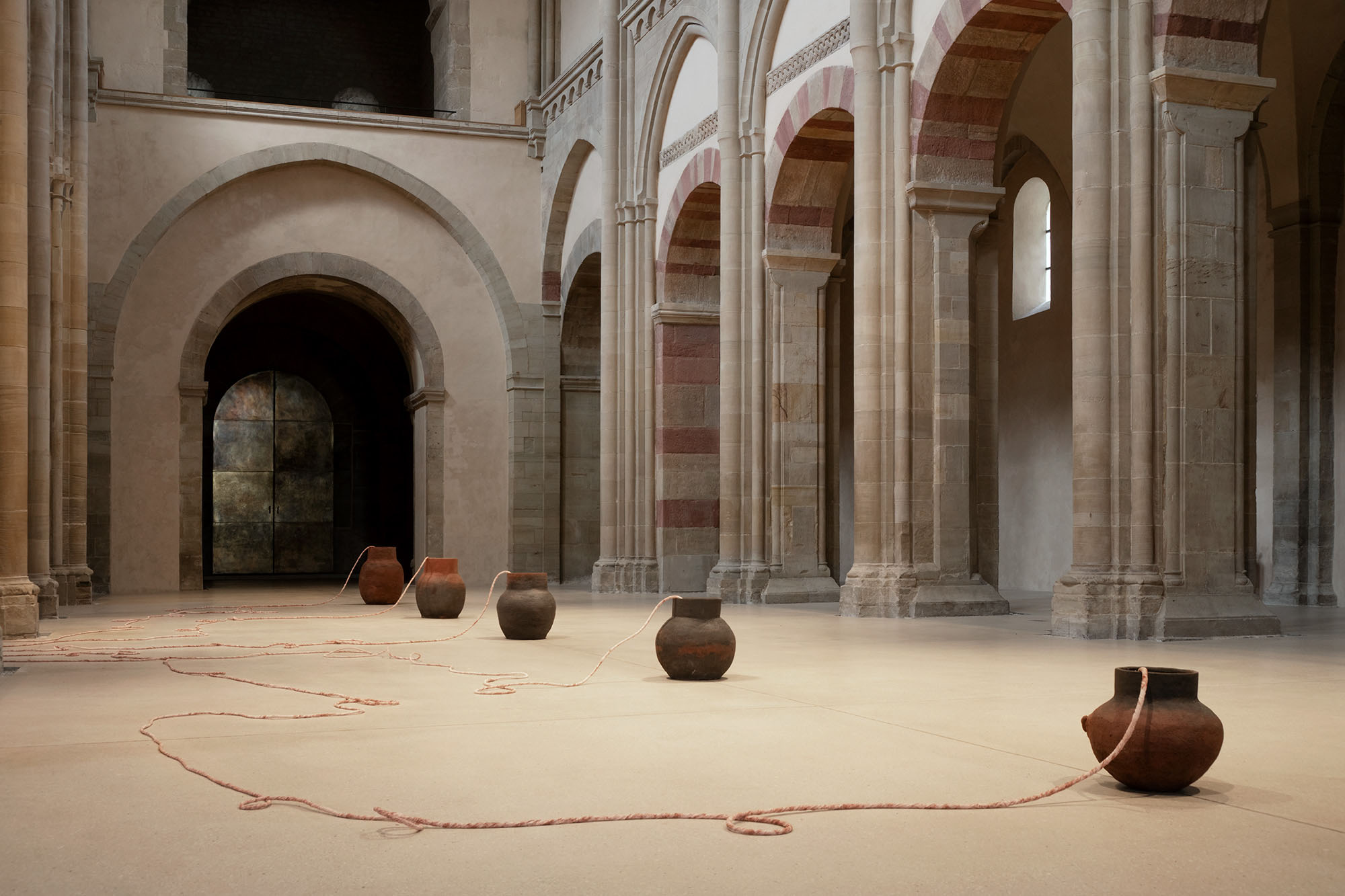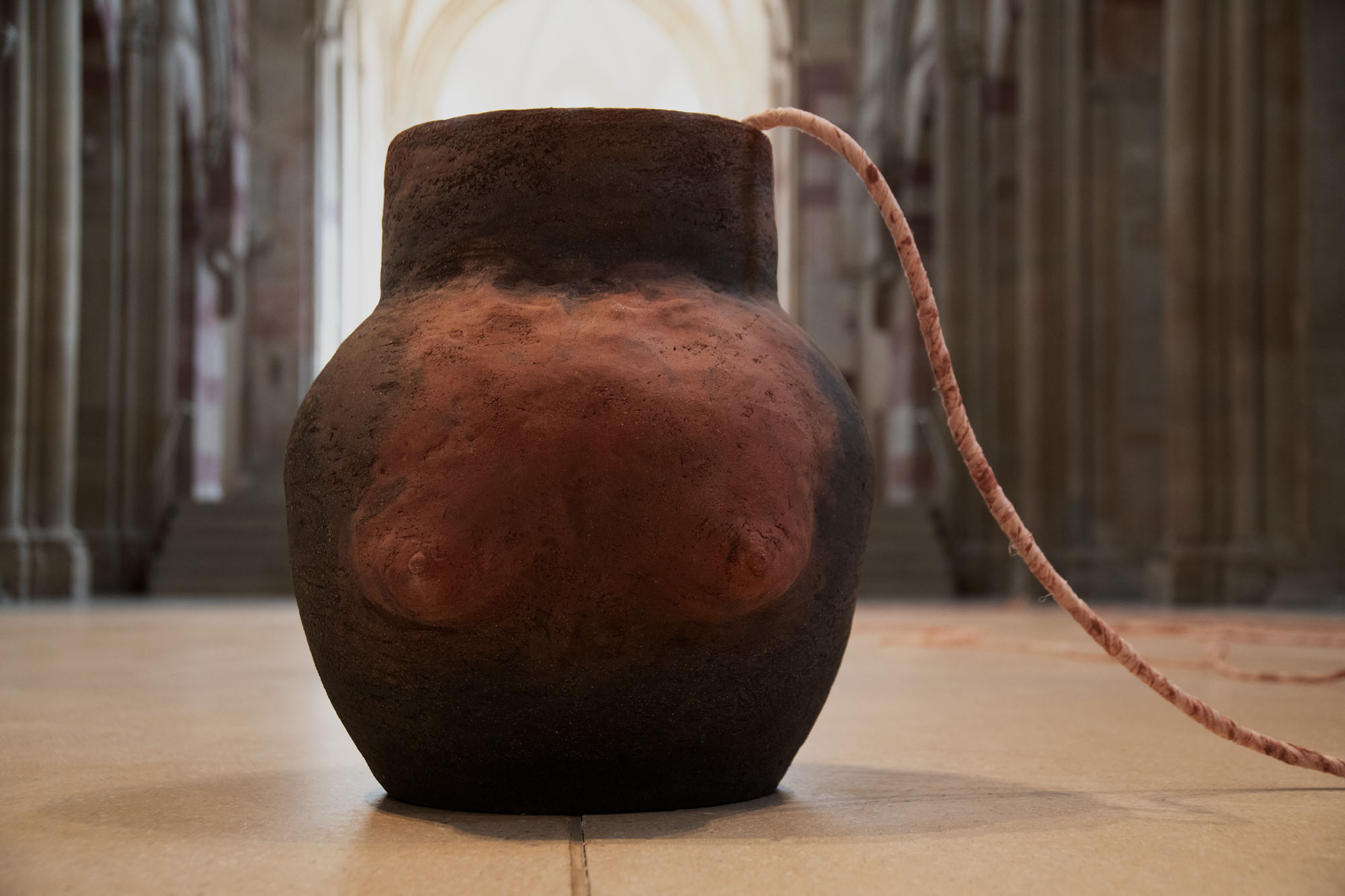 Our bodies are crossed by multiple voices that, exceeding the limits of flesh, tend to lose their individuality and claim space. In her exhibition For Our Flowing Voices; I Amphorae, at the Kunstmuseum Magdeburg, Lara Dâmaso sets aside her physicality, allowing the work to exist without her presence.