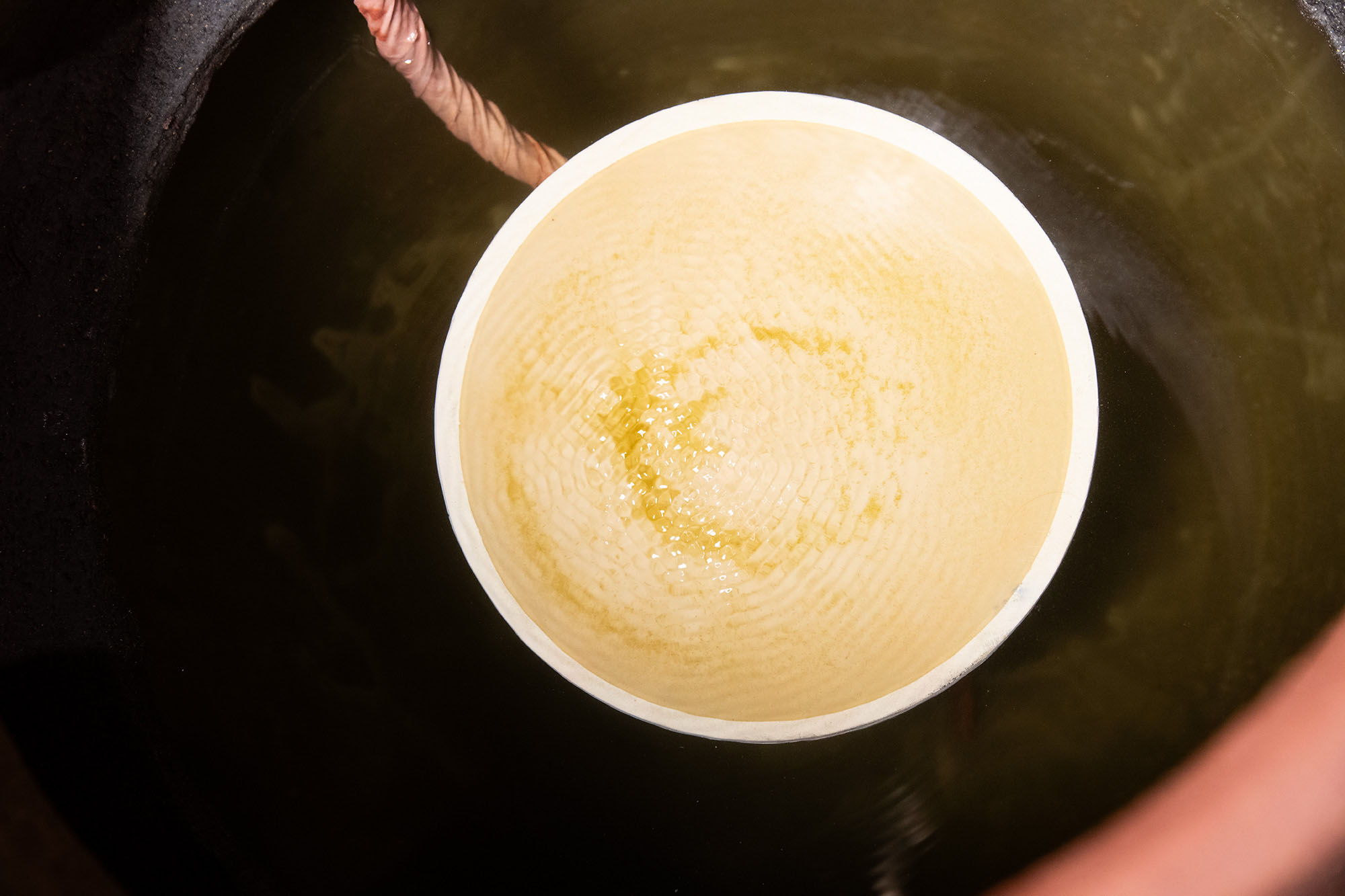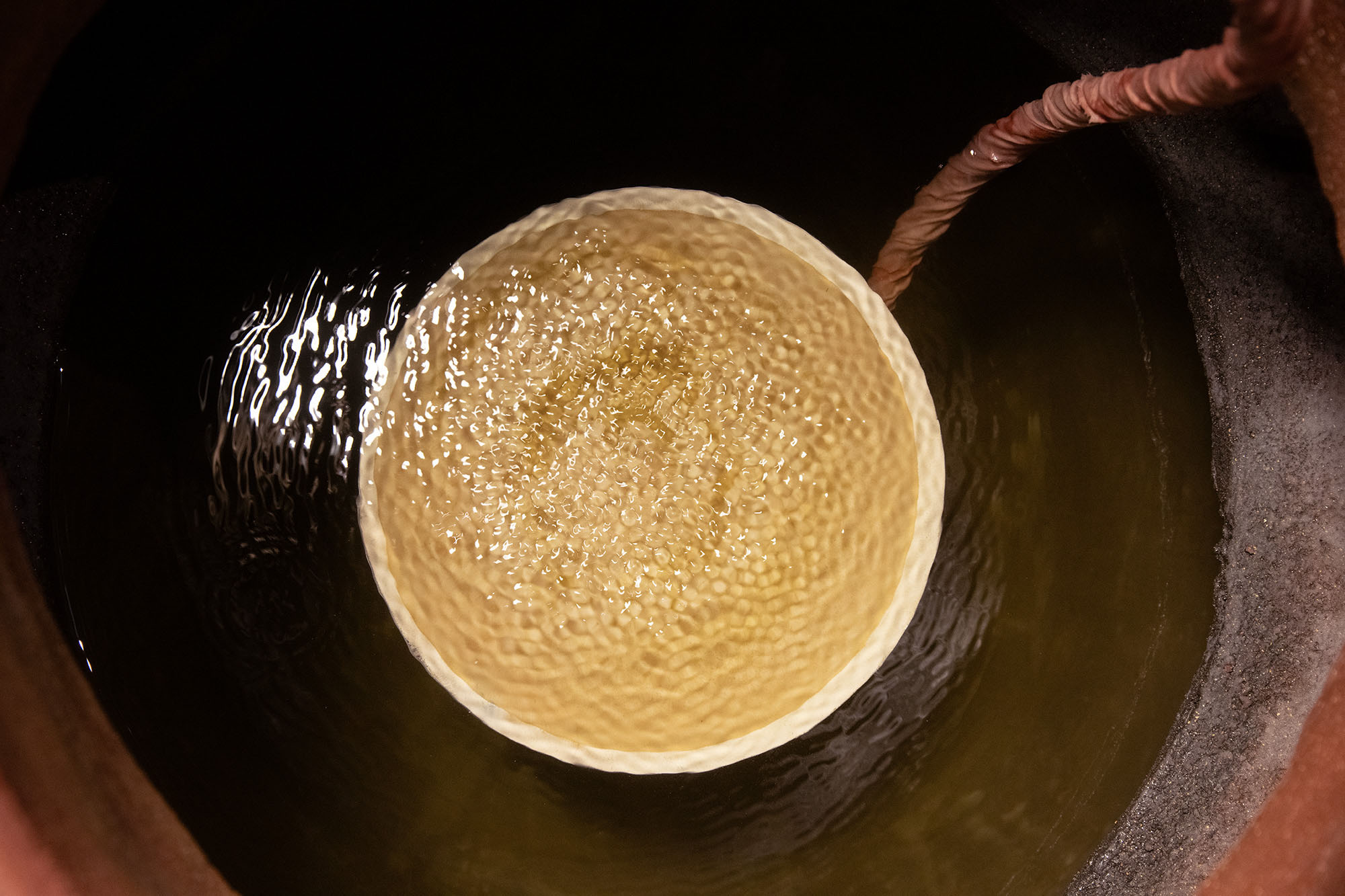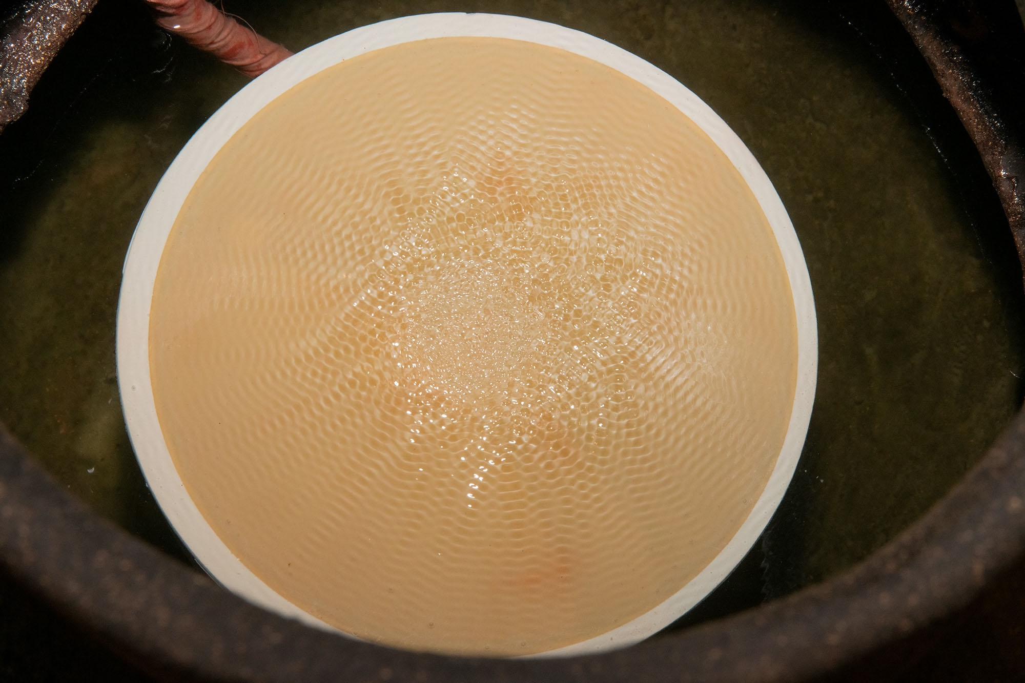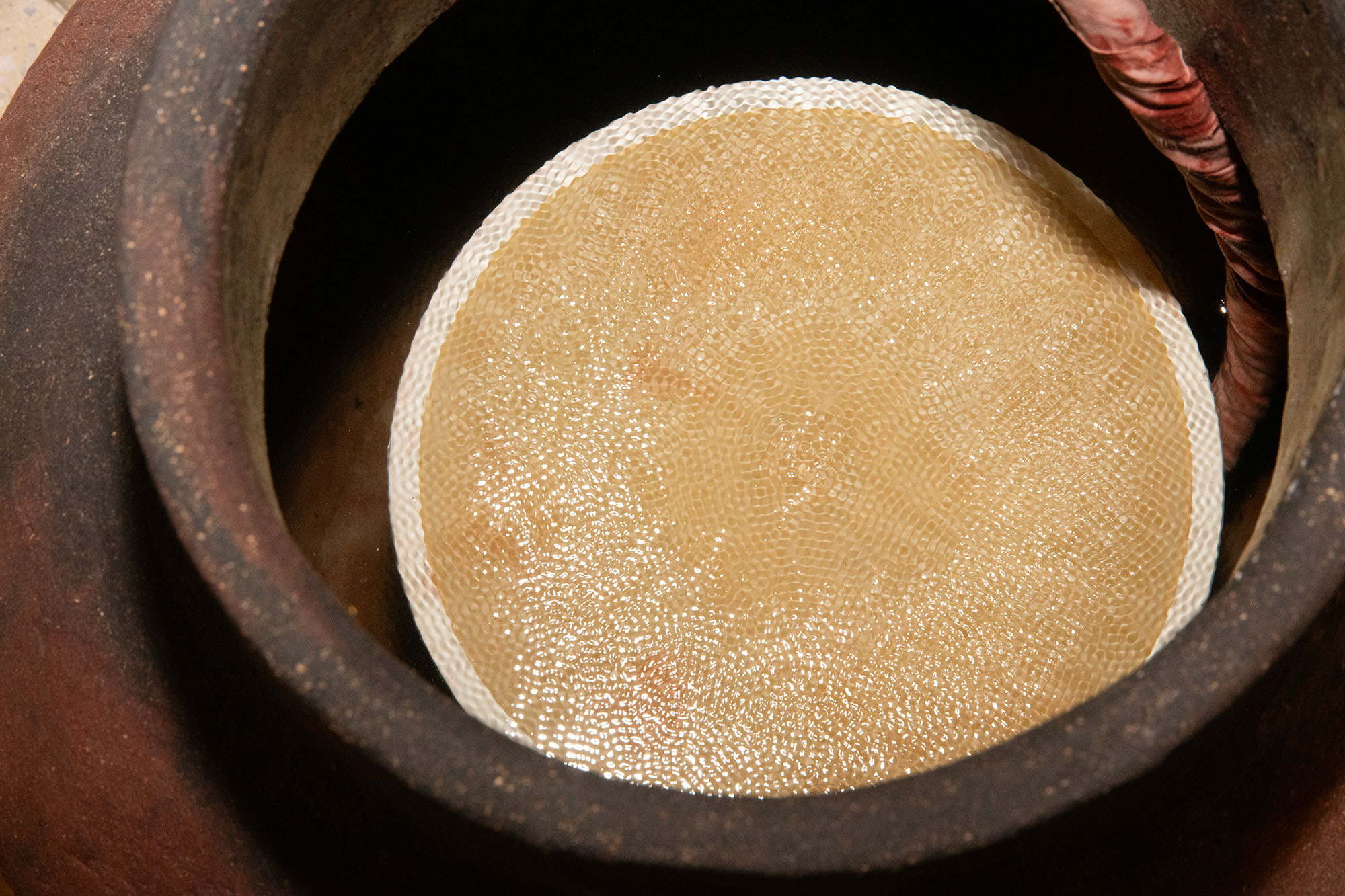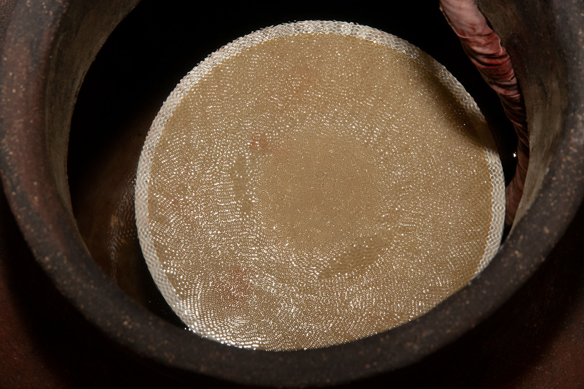 She dissects itself into five ceramic amphorae containing water, whose shapes and sizes are molded by the flow of her voice, shaped by passing through five corresponding bodily spaces: the pelvic floor, the abdomen, the chest, throat and mouth, and the skull.