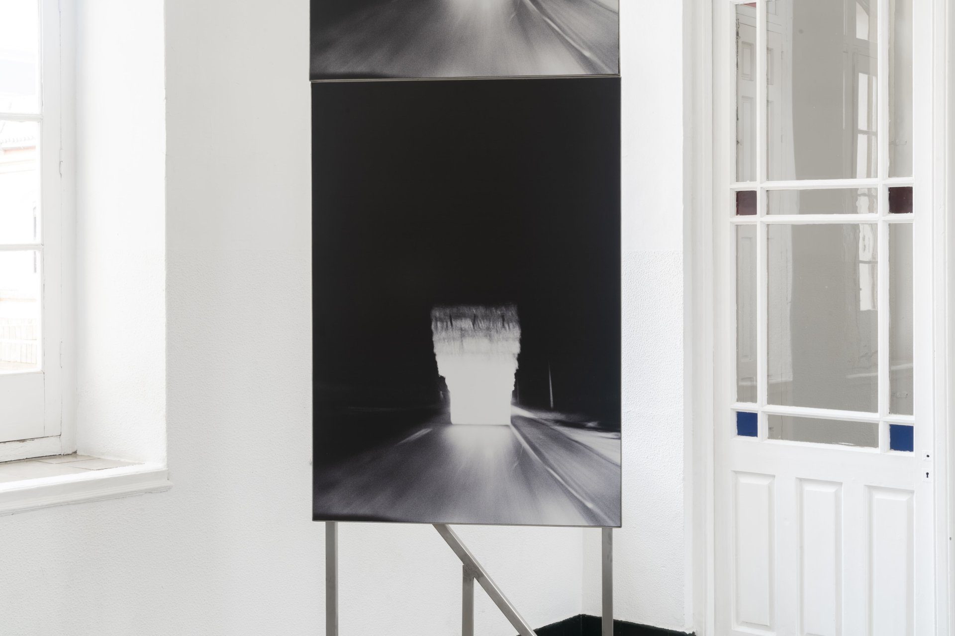 Timsam Harding (Málaga, 1992) investigates moving landscapes through the relationship between speed, time, and matter. The highway becomes his primary site of observation, a territory where constant transit transforms both the landscape and the individual’s sensory and mental perception.