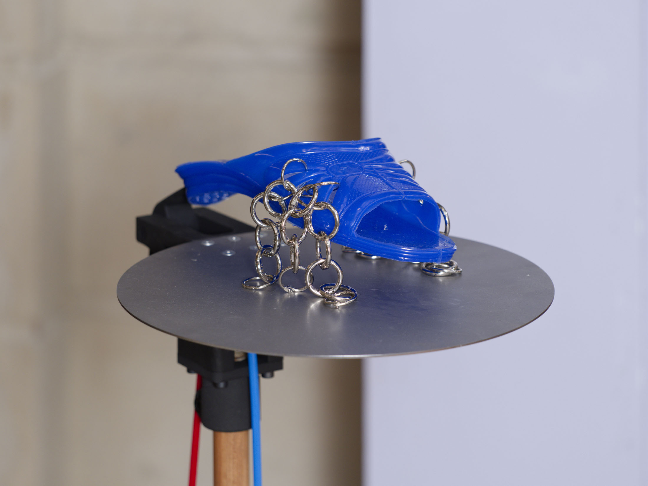 These fip-fops embody a multitude of characters and evoke collective moments where bodies are united by the rhythms of footsteps, songs, or political uprisings — whether at a protest, football stadium, or musical ceremonies. Fascinated by such contagious collective energies, the artist takes further cues from dakka marrakchia, a Moroccan ritual in which participants play music while reaching a peak of spiritual intensity.
