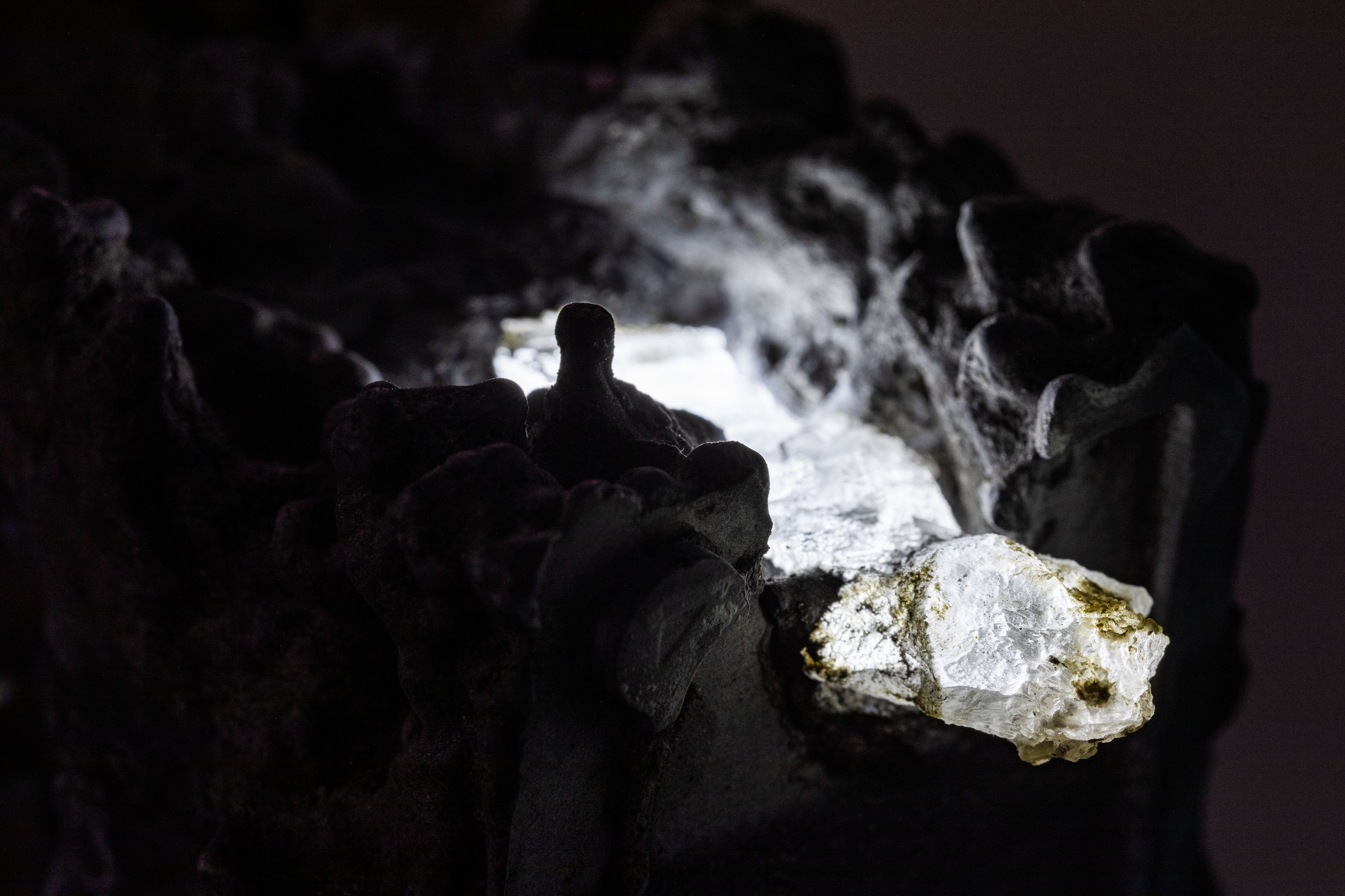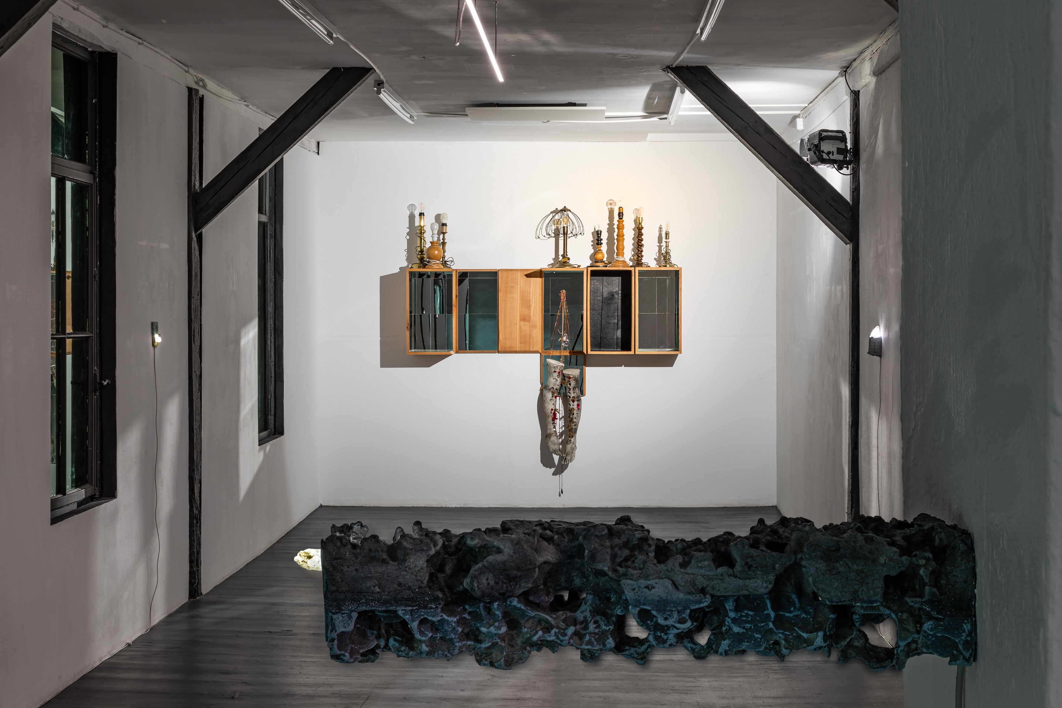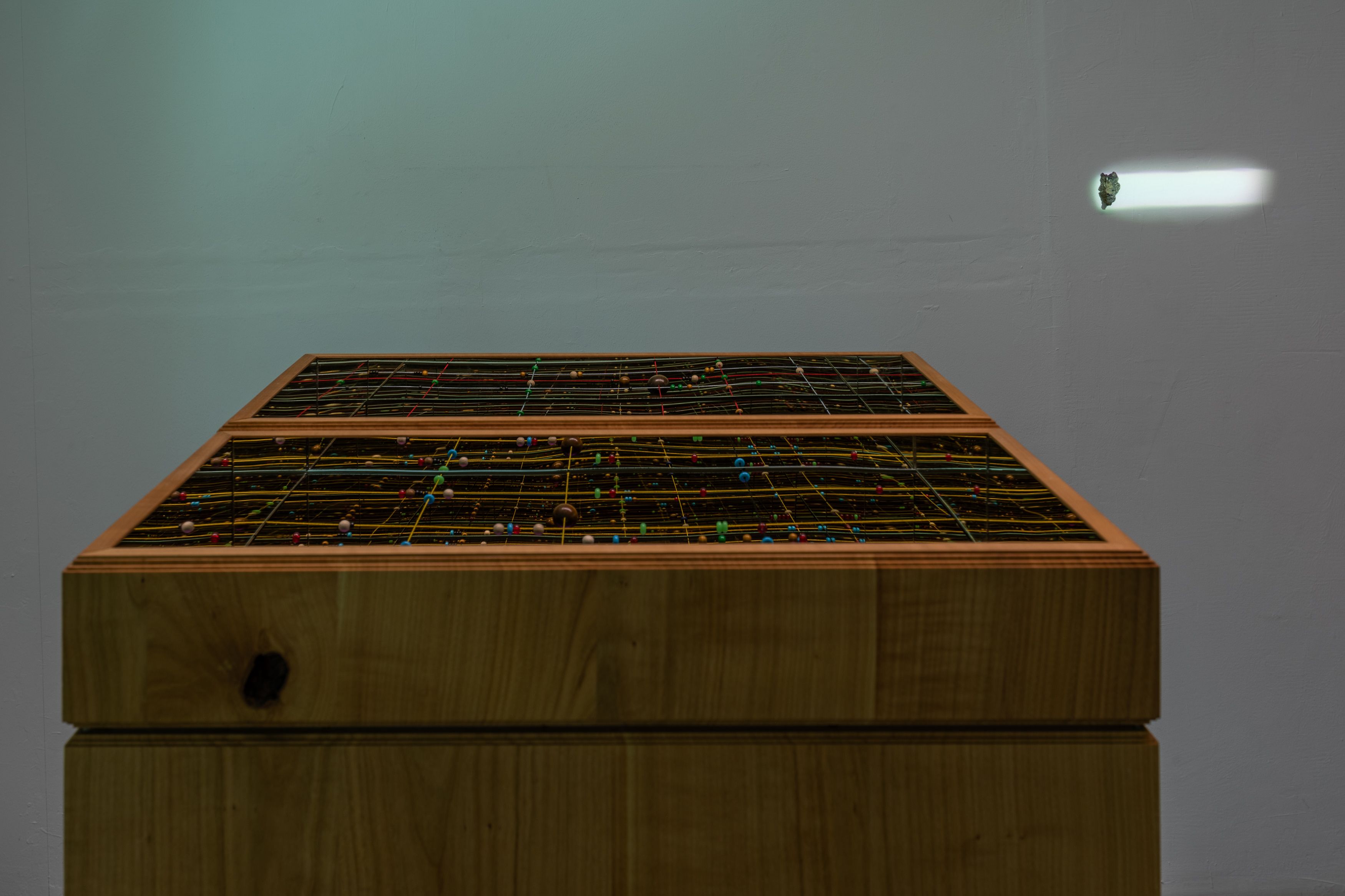 In other words, both practices propose an alternative to the dogmas of humanism and anthropocentrism. One of the common denominators in the work of the two artists are relics of the past. Wirz having researched on life after death rituals, pre-modern shamanism, mummification or the history of board games and Longe’s long-standing interest in evolution, the intersection between geology and biology, minerals and their prismatic qualities be they esoteric or technological. Through different registers of information–audio, scale, visual and tactile–we discover estranging moments be it the synesthetic experience of hearing warmth (fire) through light or the illusion of boundlessness of an infinity mirror. By…