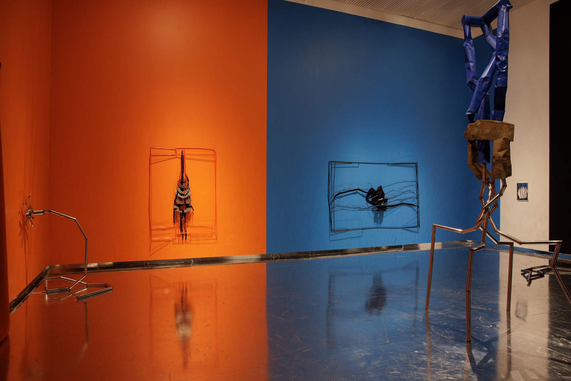A folkloric, nature-inspired color palette casts the customary white walls of institutional normality with brightness. Flashes of experience and memory act as binders for sculptural appropriations of the infographic ecosystem in metal. Urban planning and the ebb and flow of the stock market are represented in the gallery via…