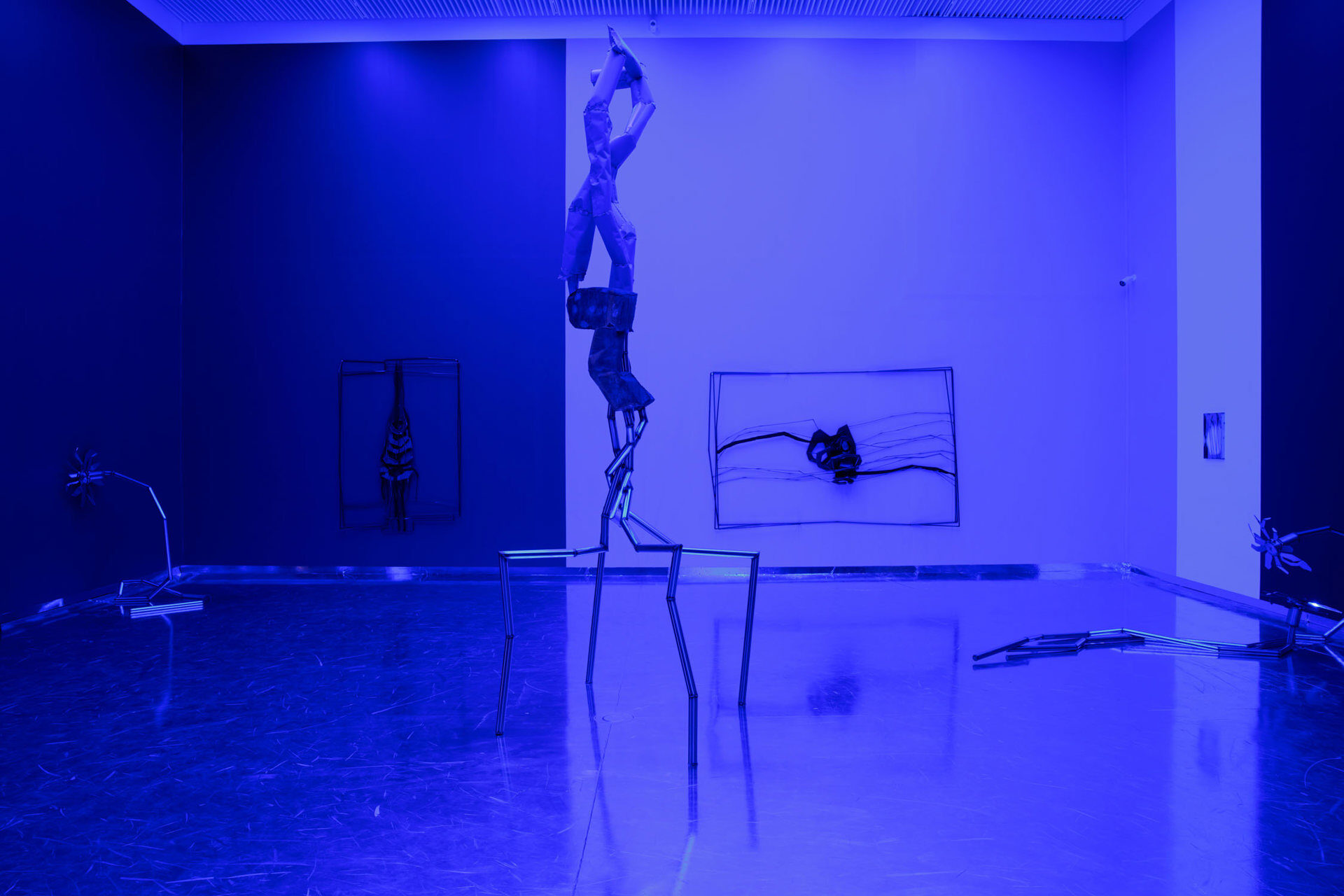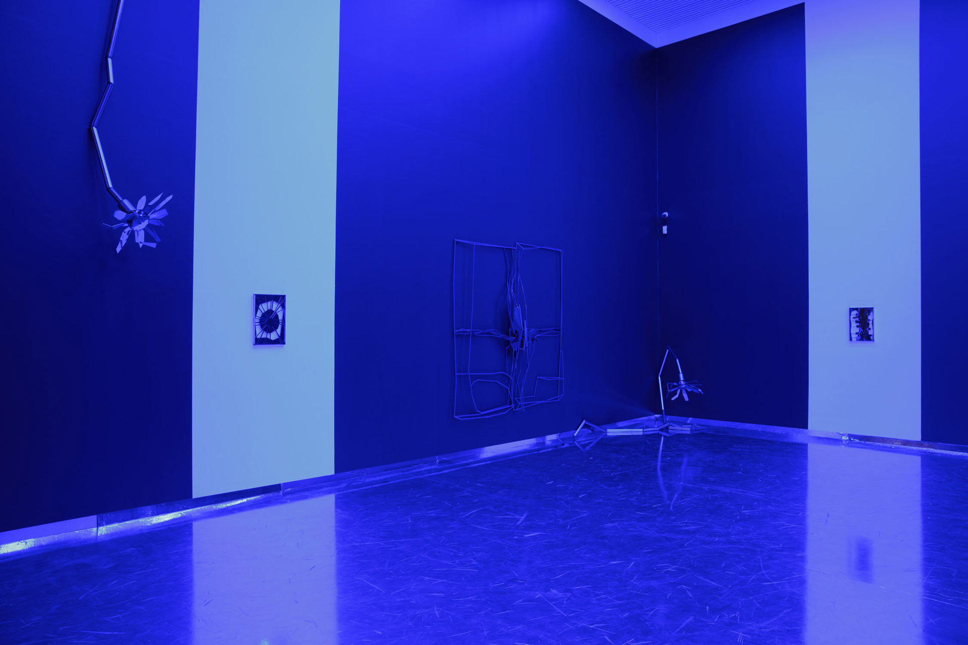 Indriķis Ģelzis turns his attention to the ‘liqui-modern’ individual engulfed by a sea of turbulent change. Mediated through our society living under the precondition of shattering flux that permeates the politics of relationships, identities and economics, Watery Day’s Eye is an ode to the personalized, analog cyberspace masquerading itself under the foil of visual resemblances and contextual meaning of the public swimming pool.