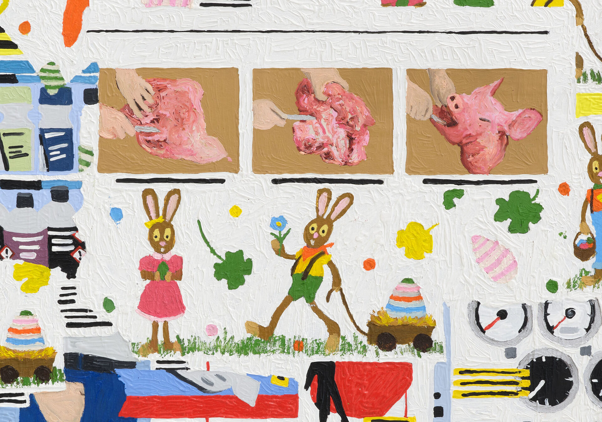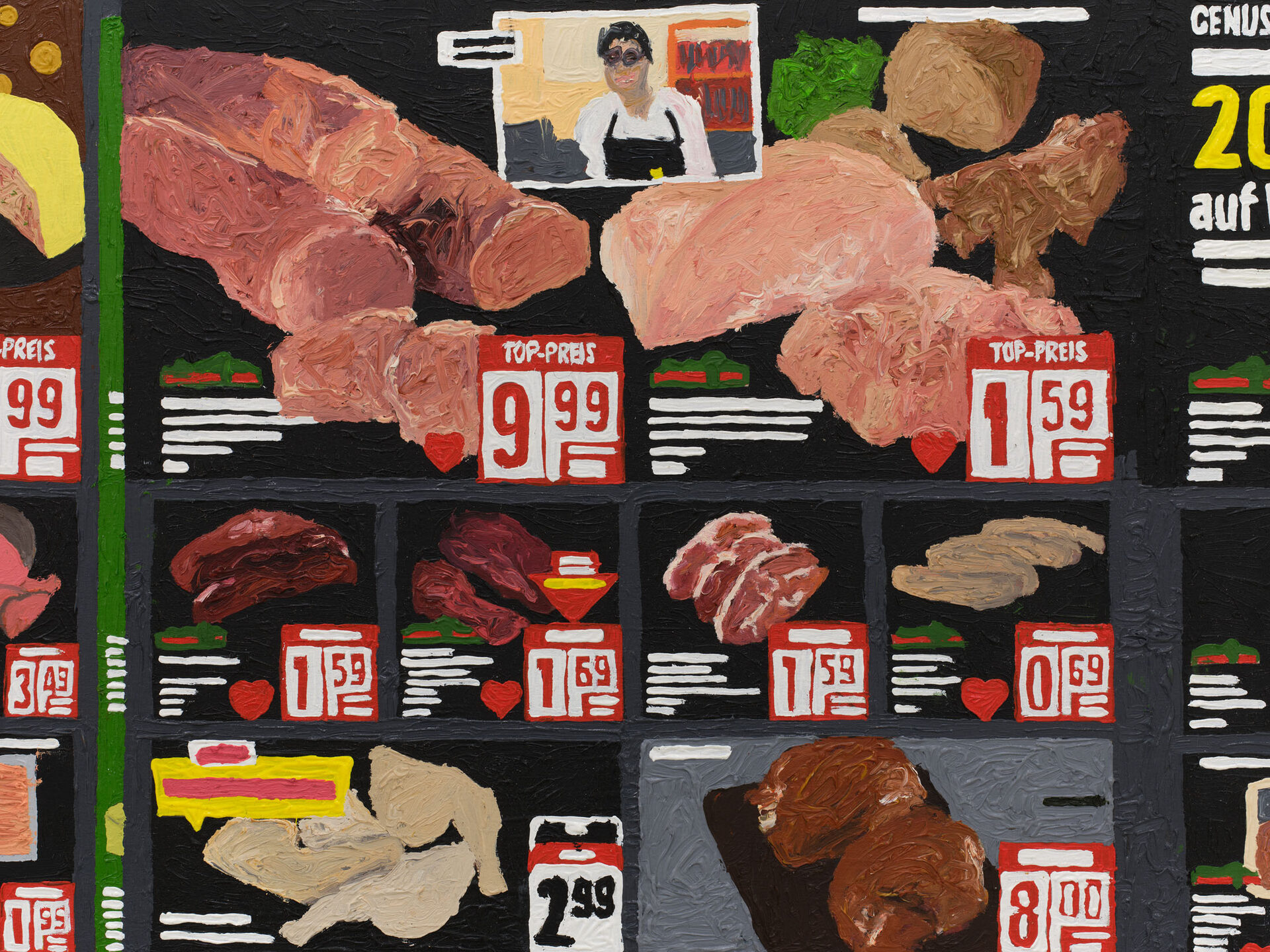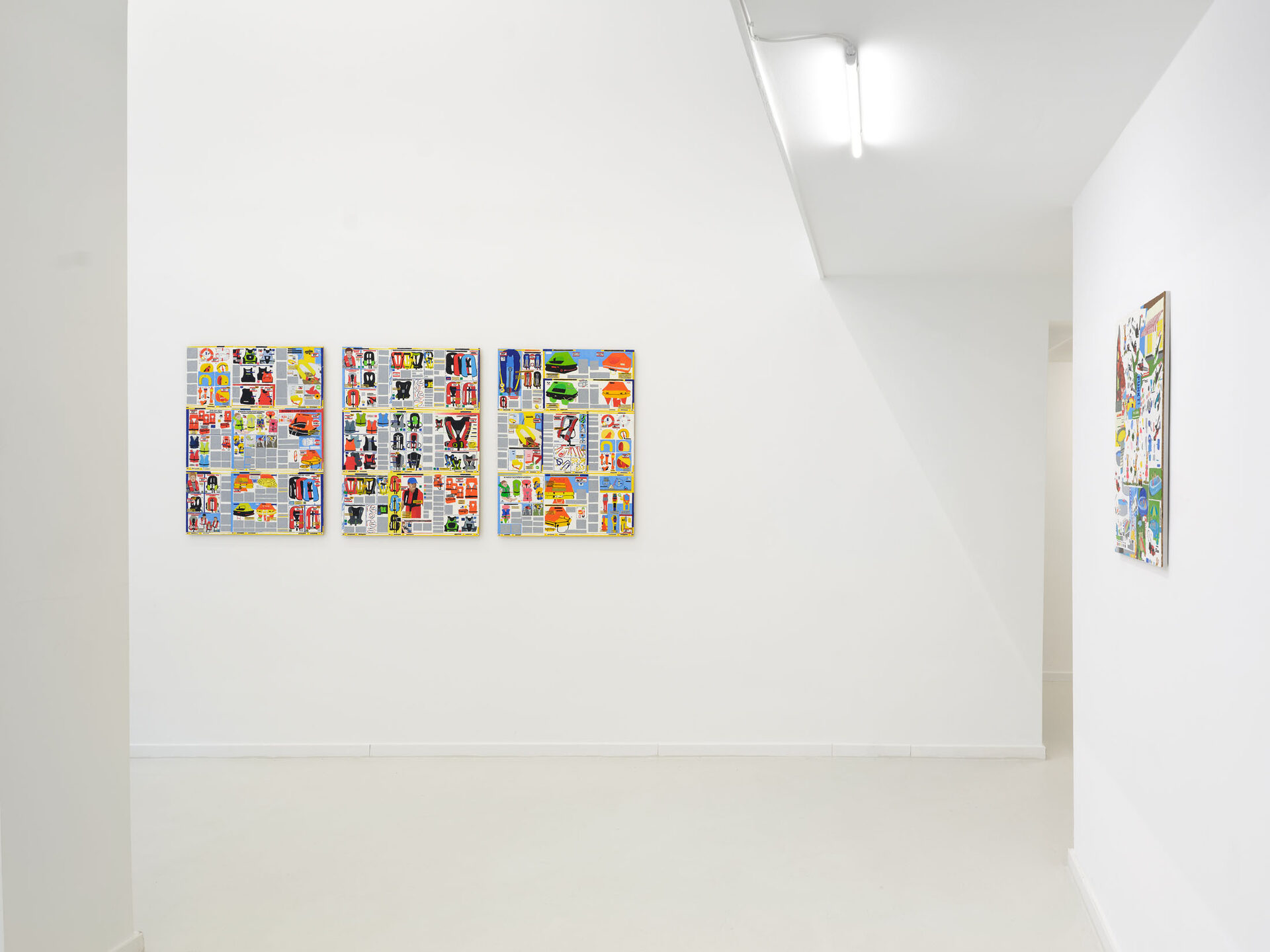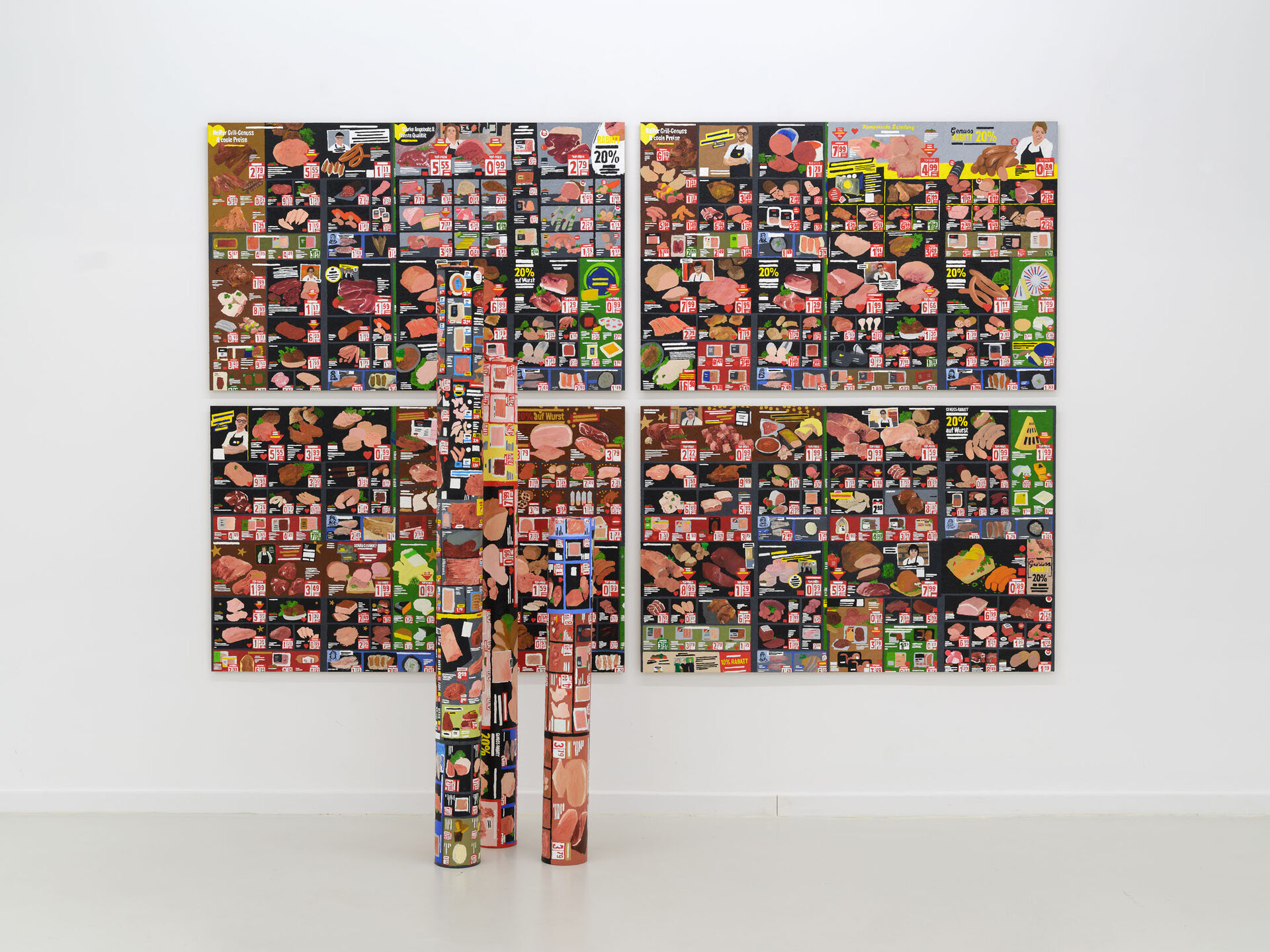 Three Block Cop Complex is a line from Kathy Acker’s Stripper’s Chaos Dirge. The text describes a journey and a loss of control, a torrential flow of sex and vomit in poetic austerity. The plosives themselves build a rhythm of the grid, the streets, surveillance systems, neat rows of products and seasonal decorations. It’s about figuring out how to act when you’ve basically lost control.