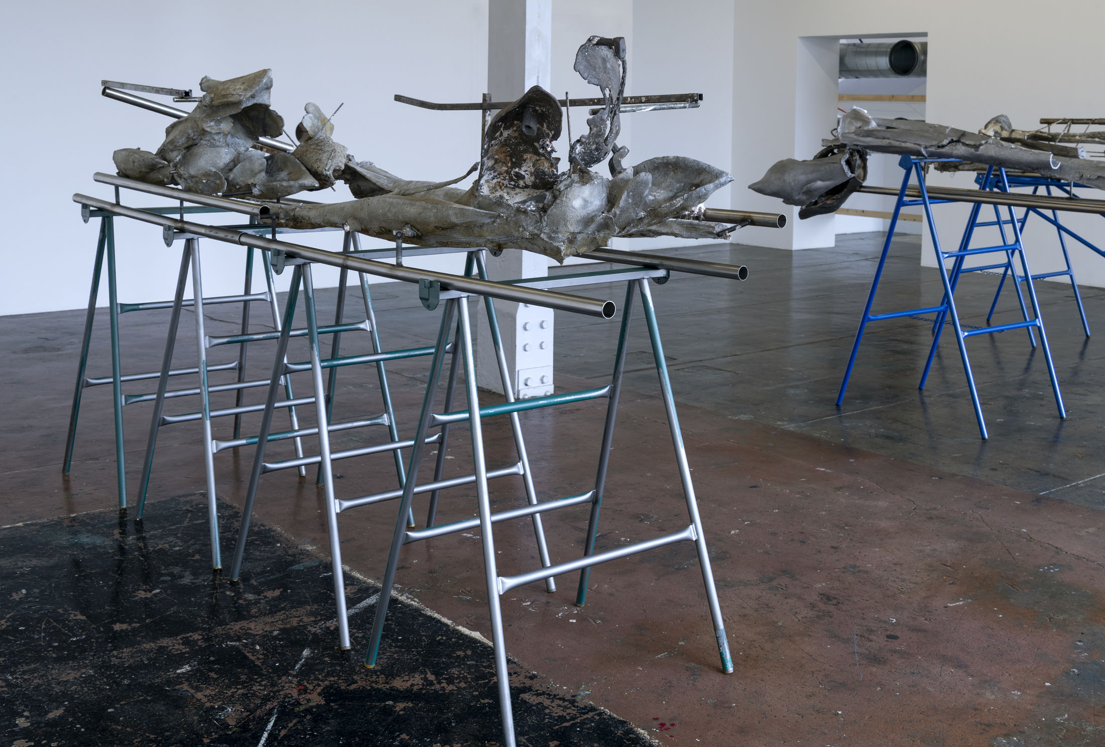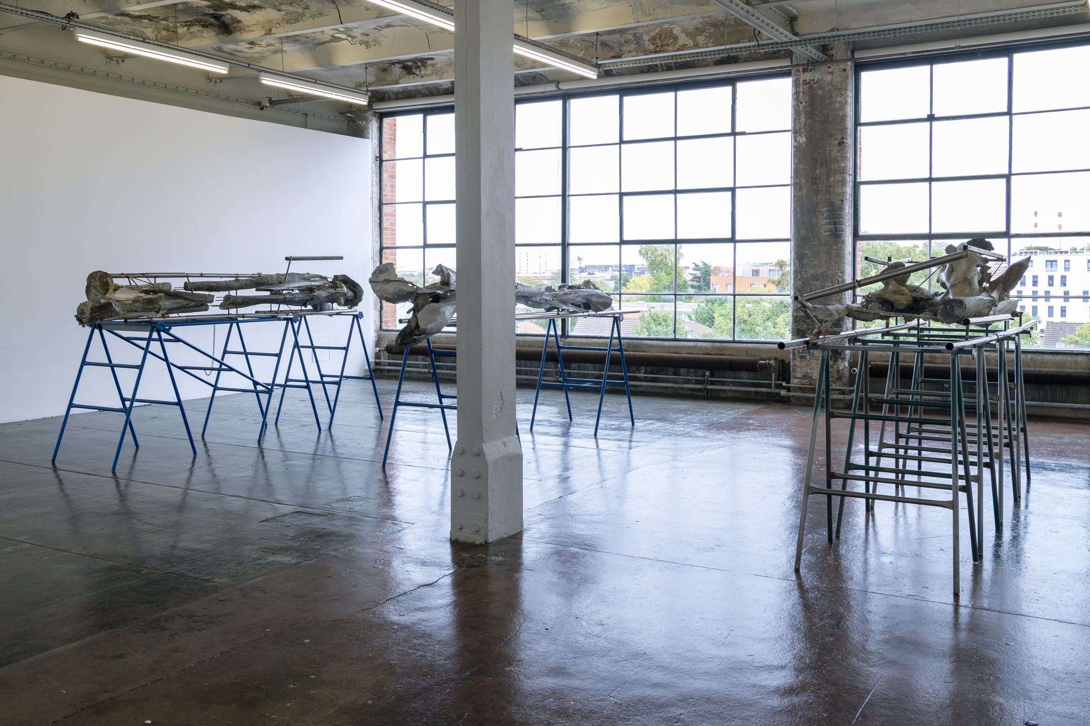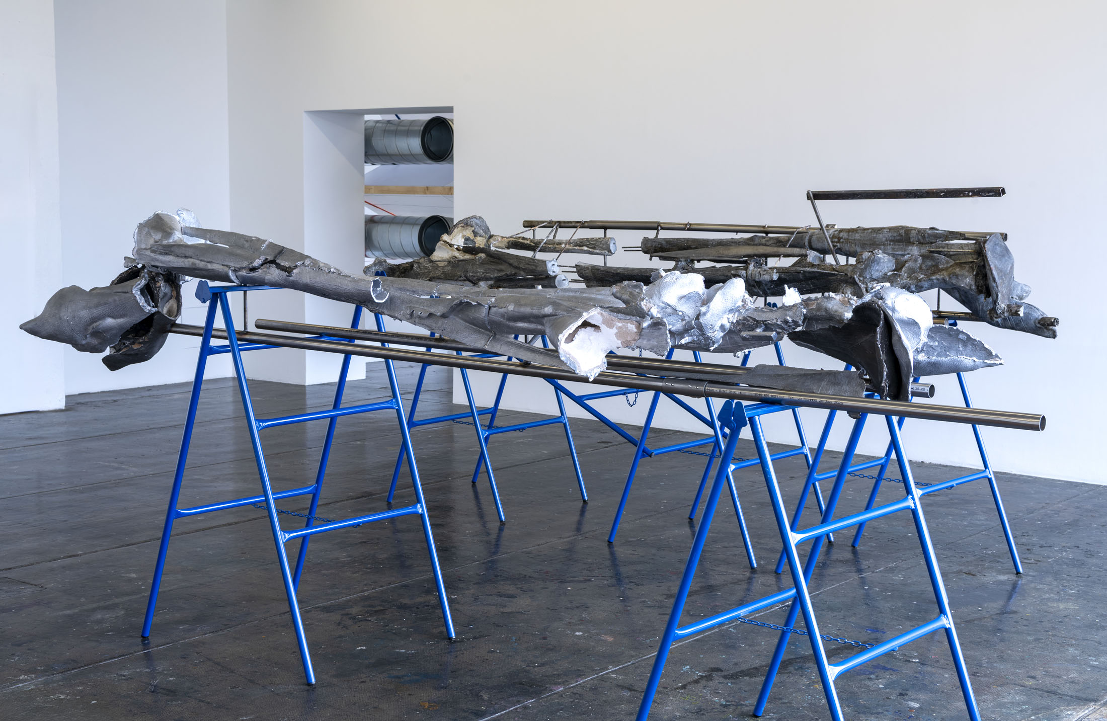 Her work is a continuation of a line of women sculptors featured in solo exhibitions at the Crédac, from the Canadian artist Liz Magor (2016) to the German Alexandra Bircken (2017). Like them, Crespo draws on the memory of objects, the body and the skin. Added to this is her relationship with nature, a major concern for her artistic generation. Nature is evoked here by oversized cast flowers, displayed horizontally, suspended from the wall or presented vertically on steel shelving. The human scale chosen by the artist blurs the lines of representation and renders the forms almost abstract.