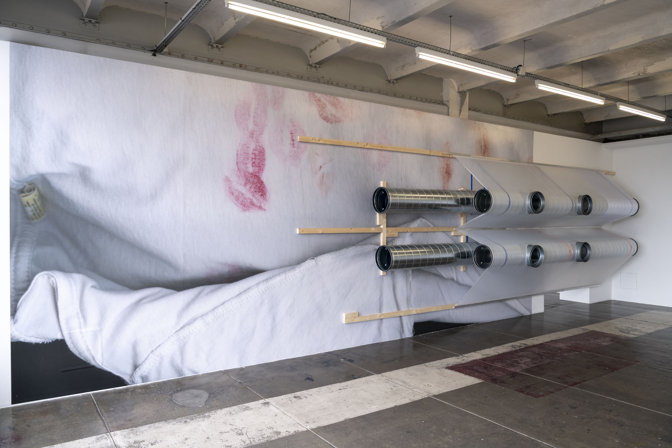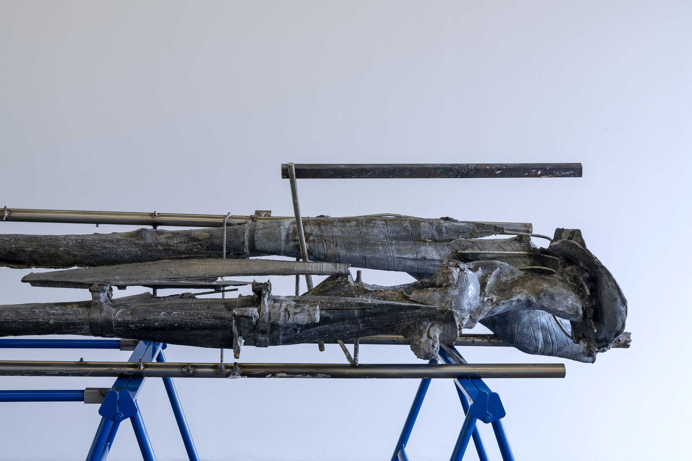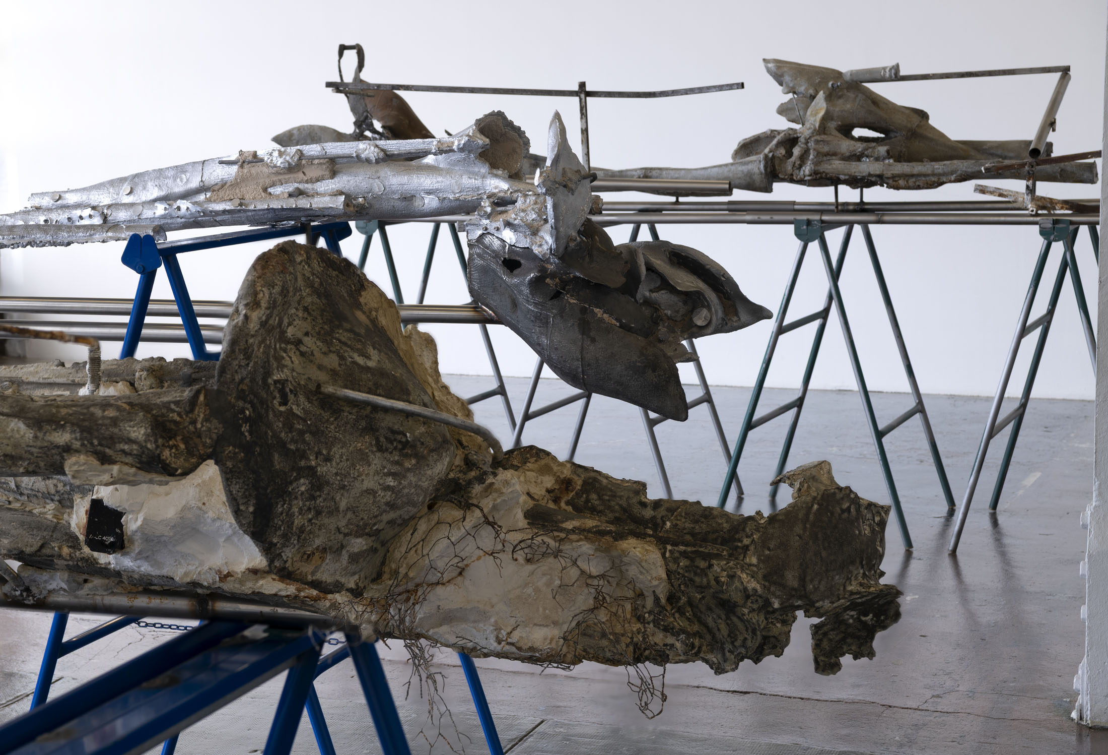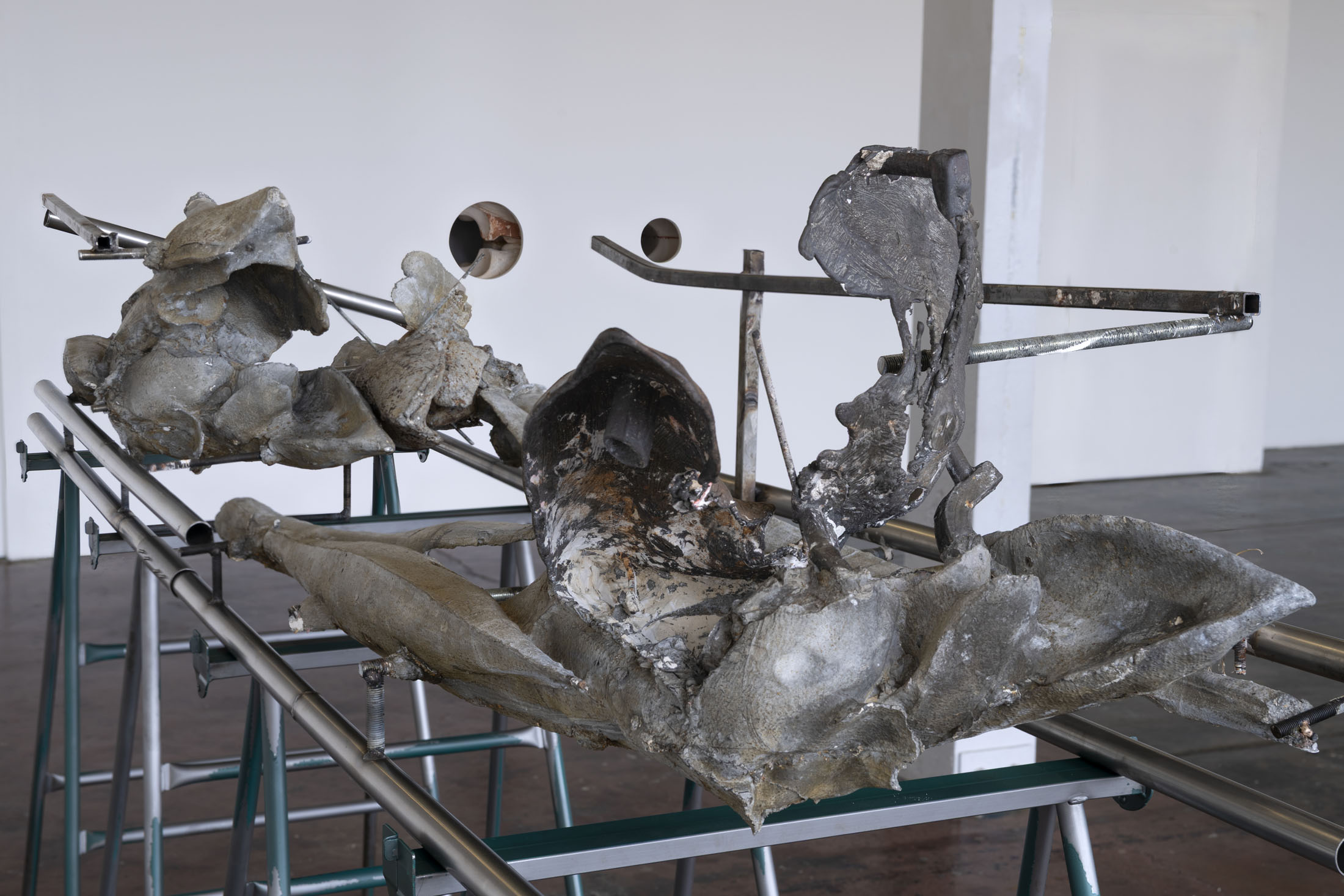 Her work is a continuation of a line of women sculptors featured in solo exhibitions at the Crédac, from the Canadian artist Liz Magor (2016) to the German Alexandra Bircken (2017). Like them, Crespo draws on the memory of objects, the body and the skin. Added to this is her relationship with nature, a major concern for her artistic generation. Nature is evoked here by oversized cast flowers, displayed horizontally, suspended from the wall or presented vertically on steel shelving. The human scale chosen by the artist blurs the lines of representation and renders the forms almost abstract.