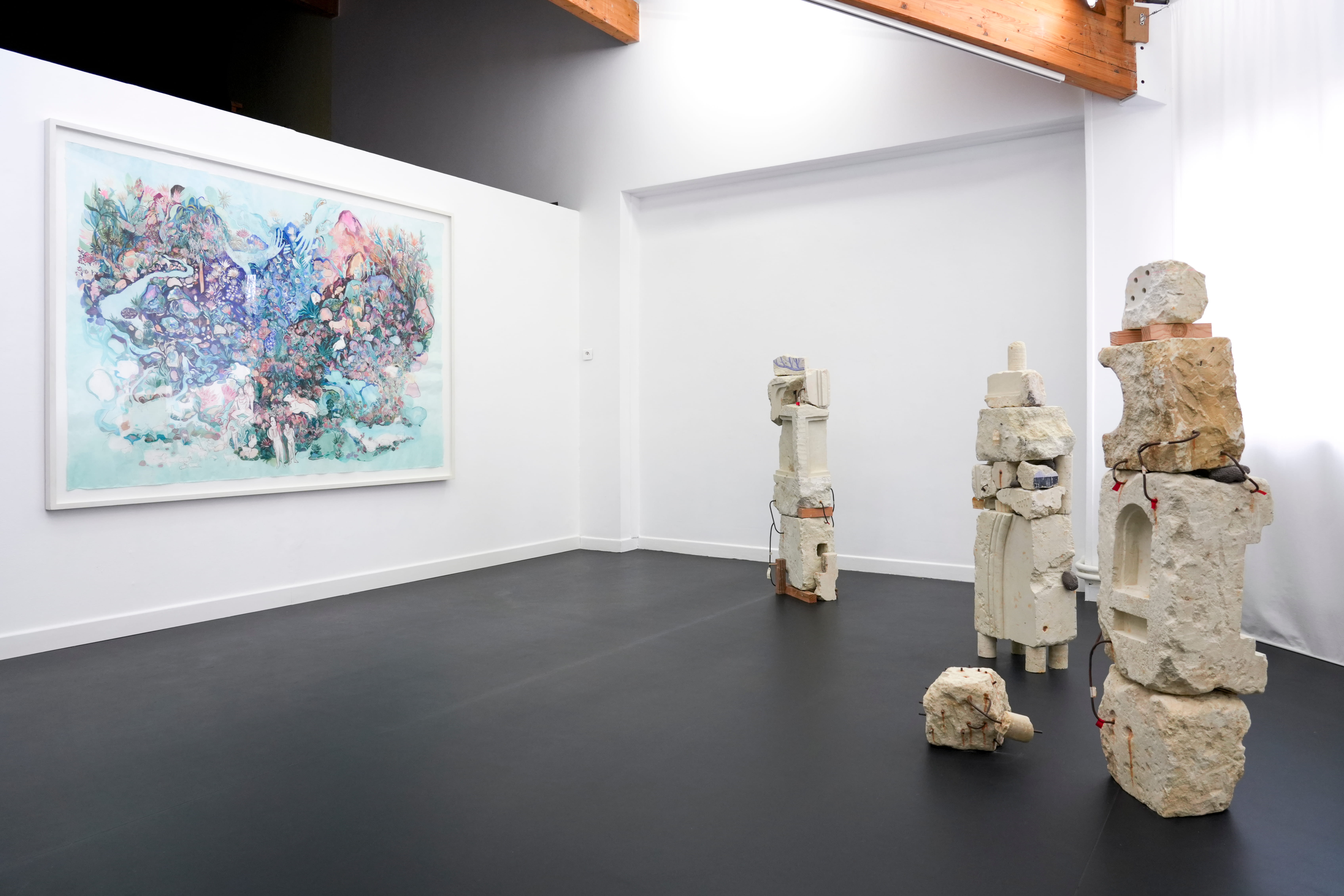 Empruntée aux paroles de 2 + 2 = 5 de Radiohead, équation impossible devenue slogan de soumission dans 1984, l’exposition collective January has April’s showers interroge une dissonance désormais ordinaire : celle d’un monde qui préfère l’absurde à la remise en question, le confort à l’effort de penser. L’exposition s’ouvre sur la catastrophe en cours, sur les ruines de promesses non tenues et d’idéaux pervertis. La dystopie n’est plus une projection : elle est un état. Tandis que certains continuent de jouir des plaisirs de la vie et de croire aux récits modernistes, d’autres choisissent le désordre, les marges. Quelque chose persiste.