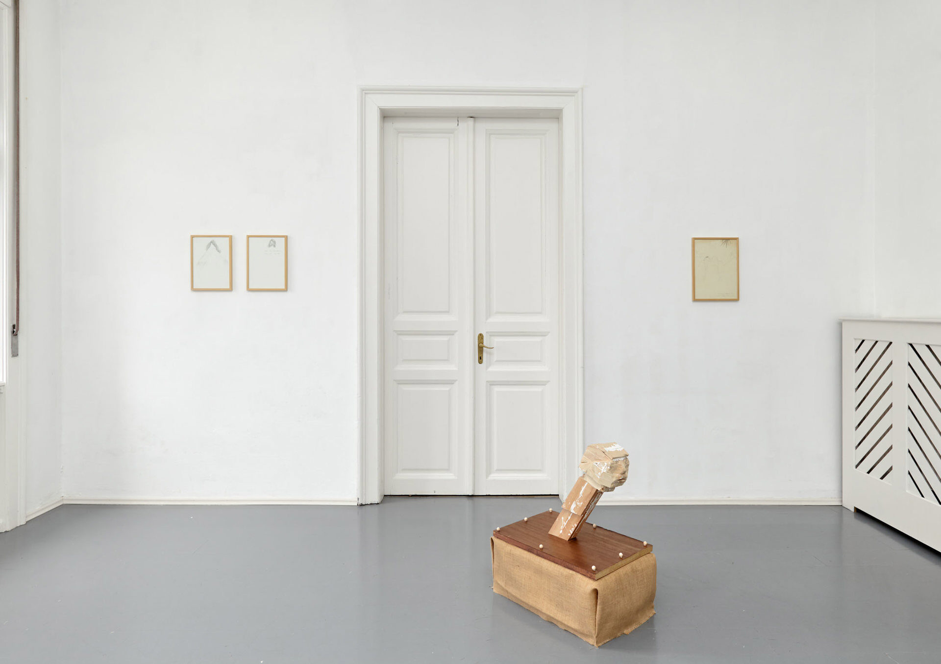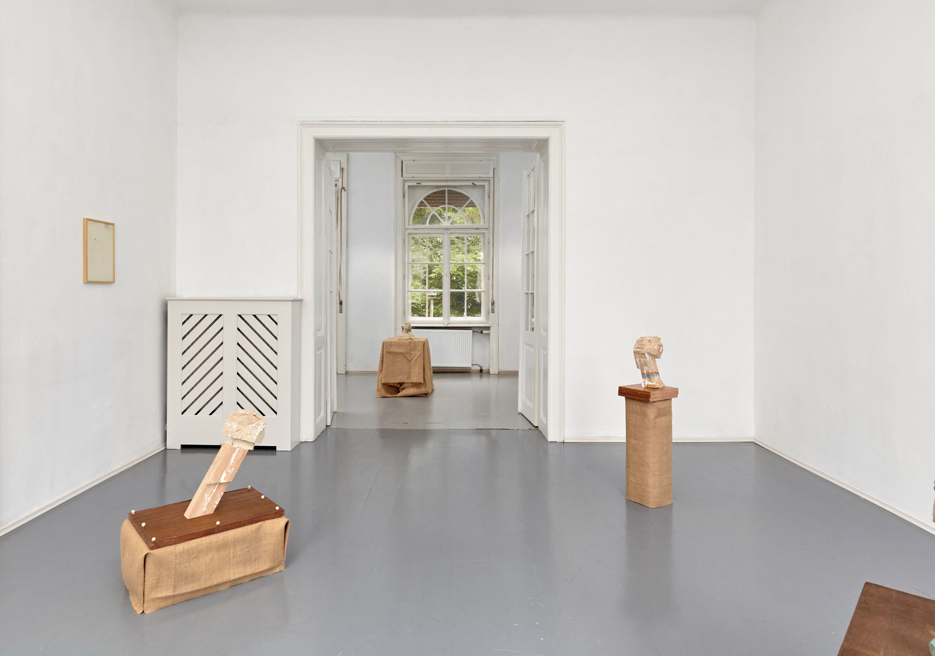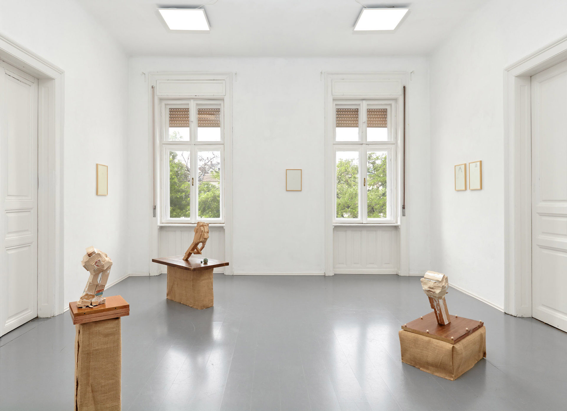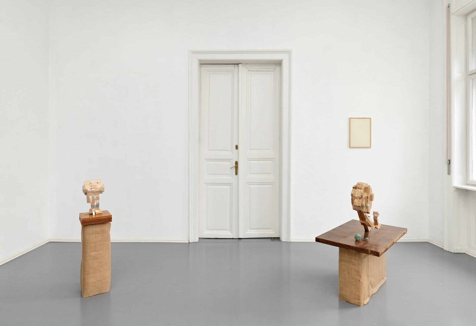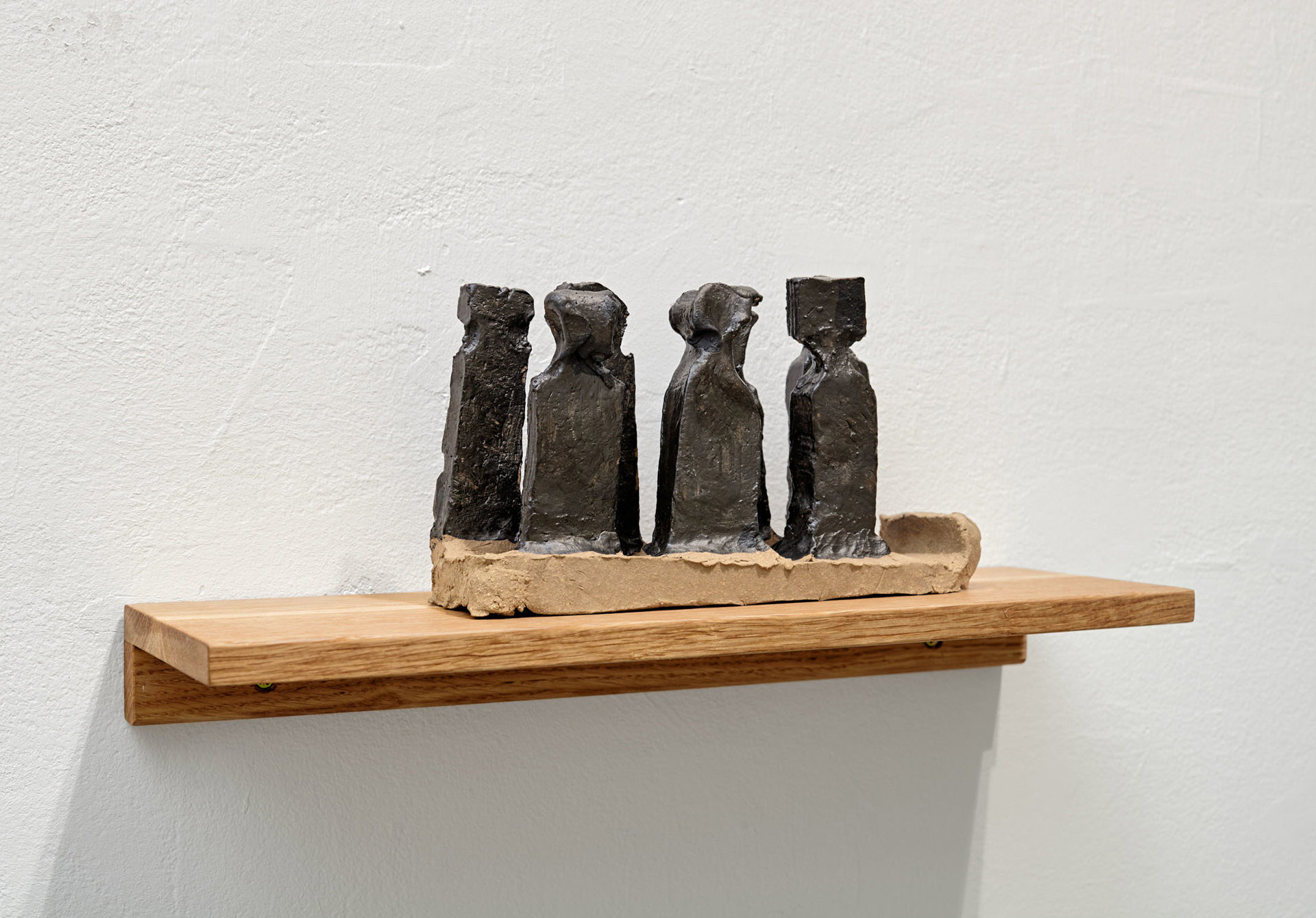 In May all tears be followed by a smile, Róza El-Hassan brings together past and present in a deeply personal meditation on grief, responsibility, and the quiet endurance of hope. The exhibition begins with a return to one of her earliest works, Mourning (After 9/11), a delicate drawing of a figure whose eyes are obscured by stonelike teardrops. This early gesture of sorrow becomes the conceptual spark for the exhibition’s new central series, Tearhead: a group of raw, wooden, almost art brut-like sculptural heads that gaze toward one another in silent mourning, echoing both shared loss and fragile solidarity.