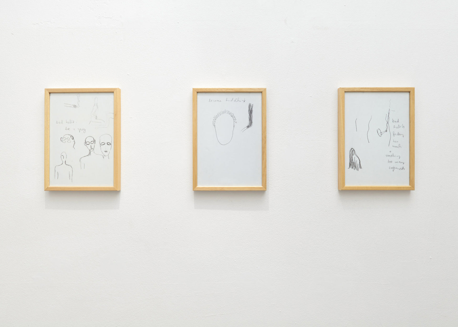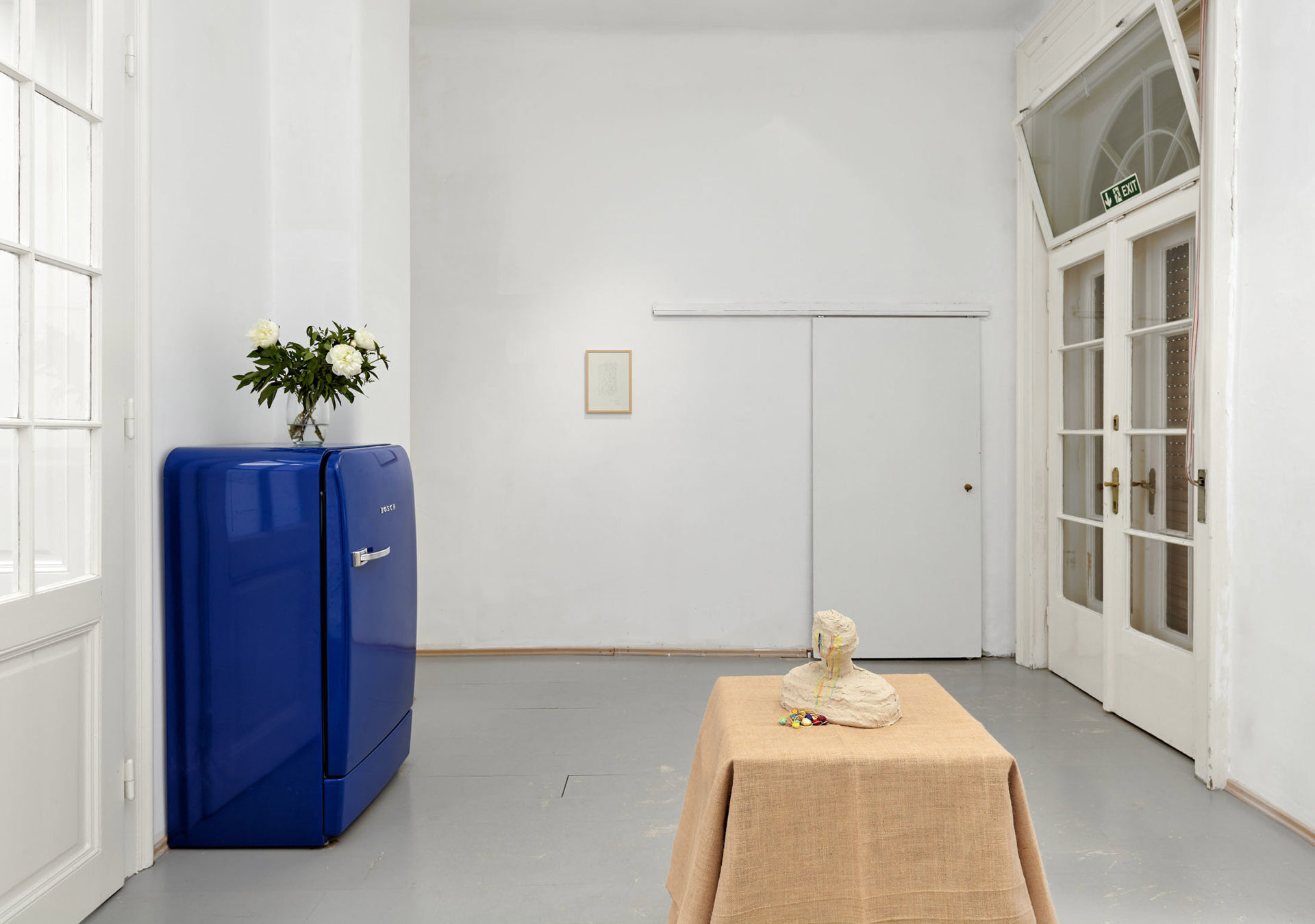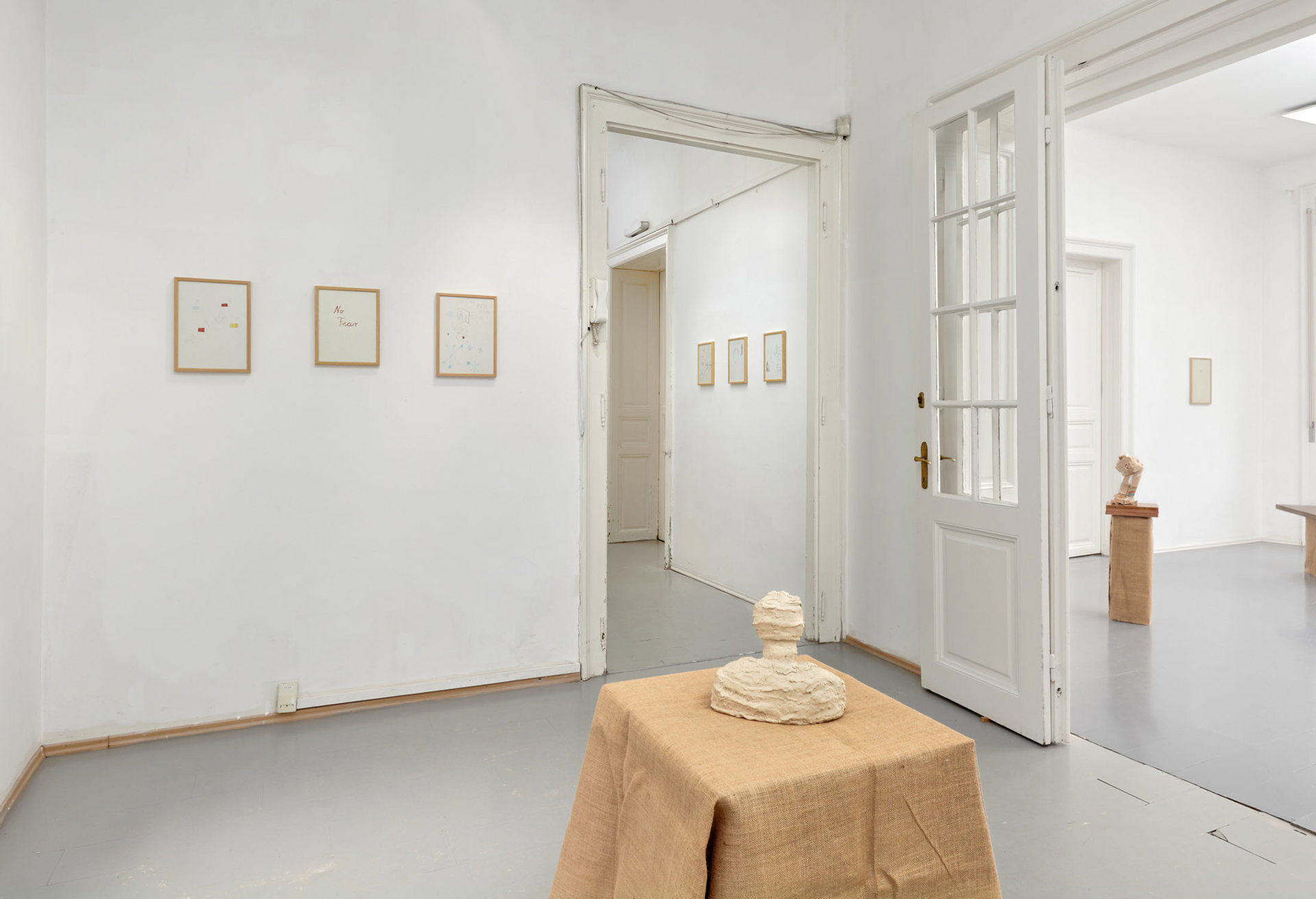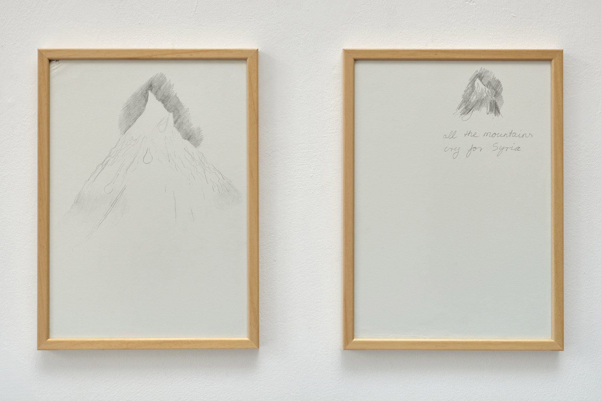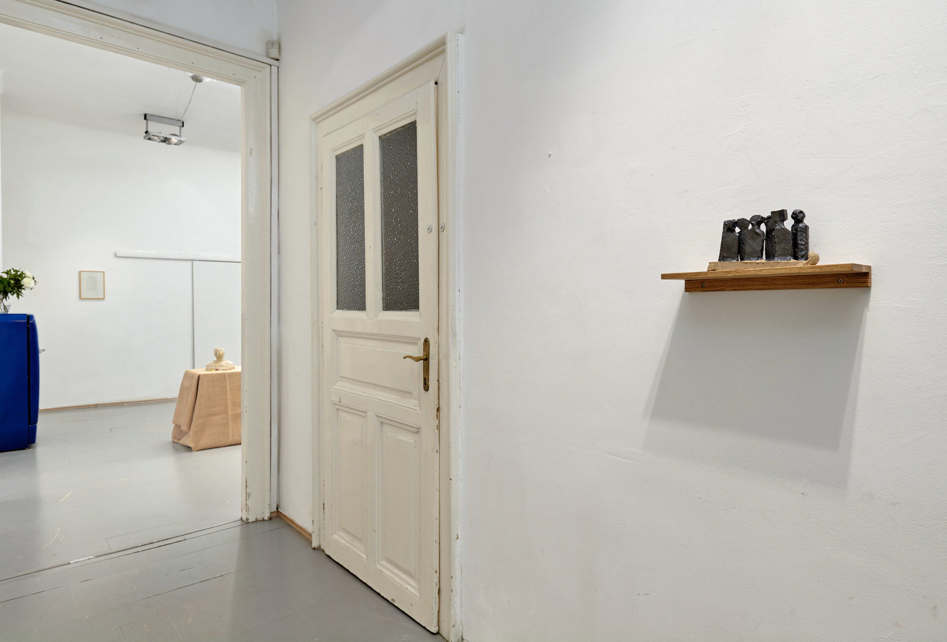In May all tears be followed by a smile, Róza El-Hassan brings together past and present in a deeply personal meditation on grief, responsibility, and the quiet endurance of hope. The exhibition begins with a return to one of her earliest works, Mourning (After 9/11), a delicate drawing of a figure whose eyes are obscured by stonelike teardrops. This early gesture of sorrow becomes the conceptual spark for the exhibition’s new central series, Tearhead: a group of raw, wooden, almost art brut-like sculptural heads that gaze toward one another in silent mourning, echoing both shared loss and fragile solidarity.