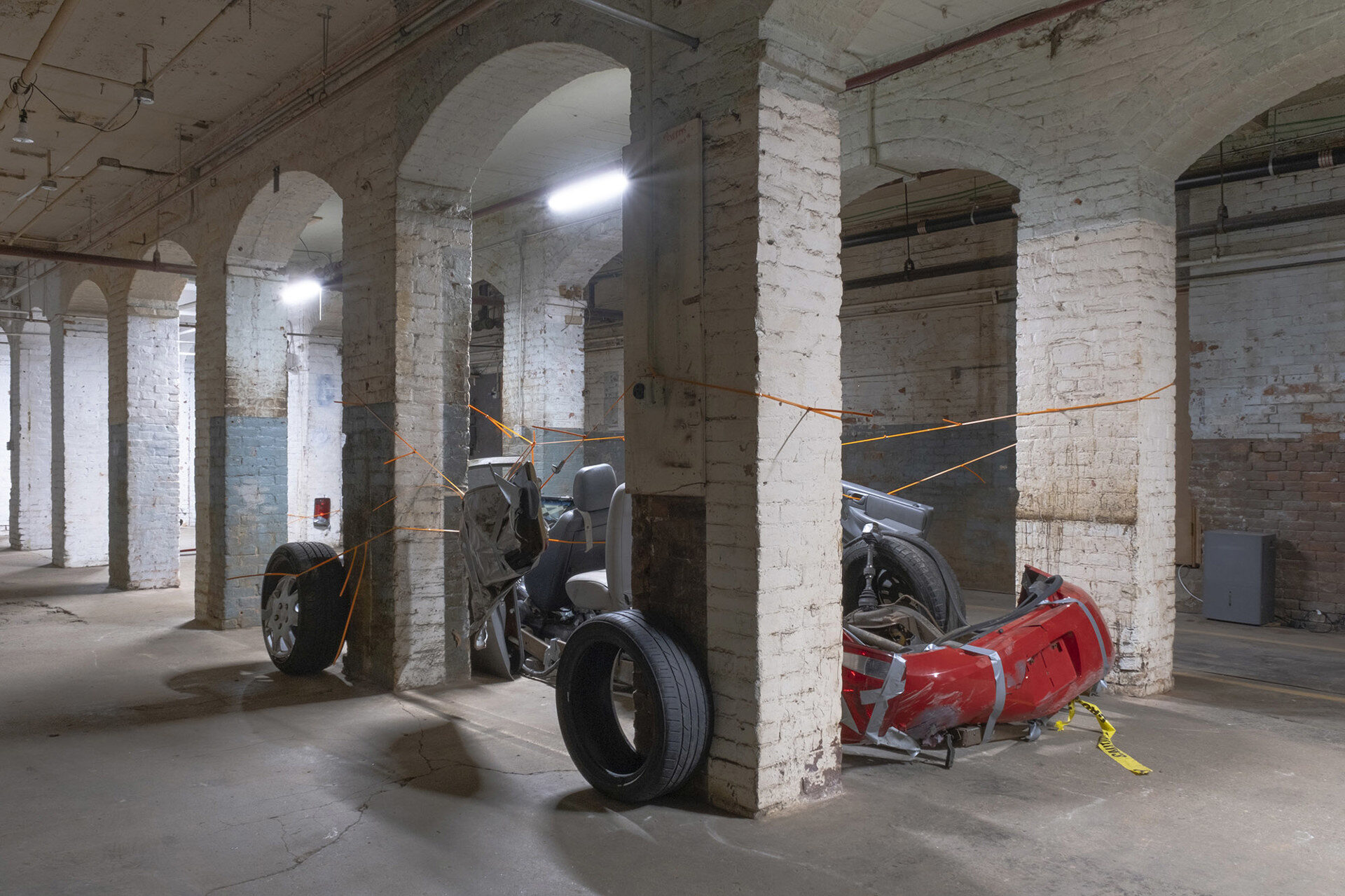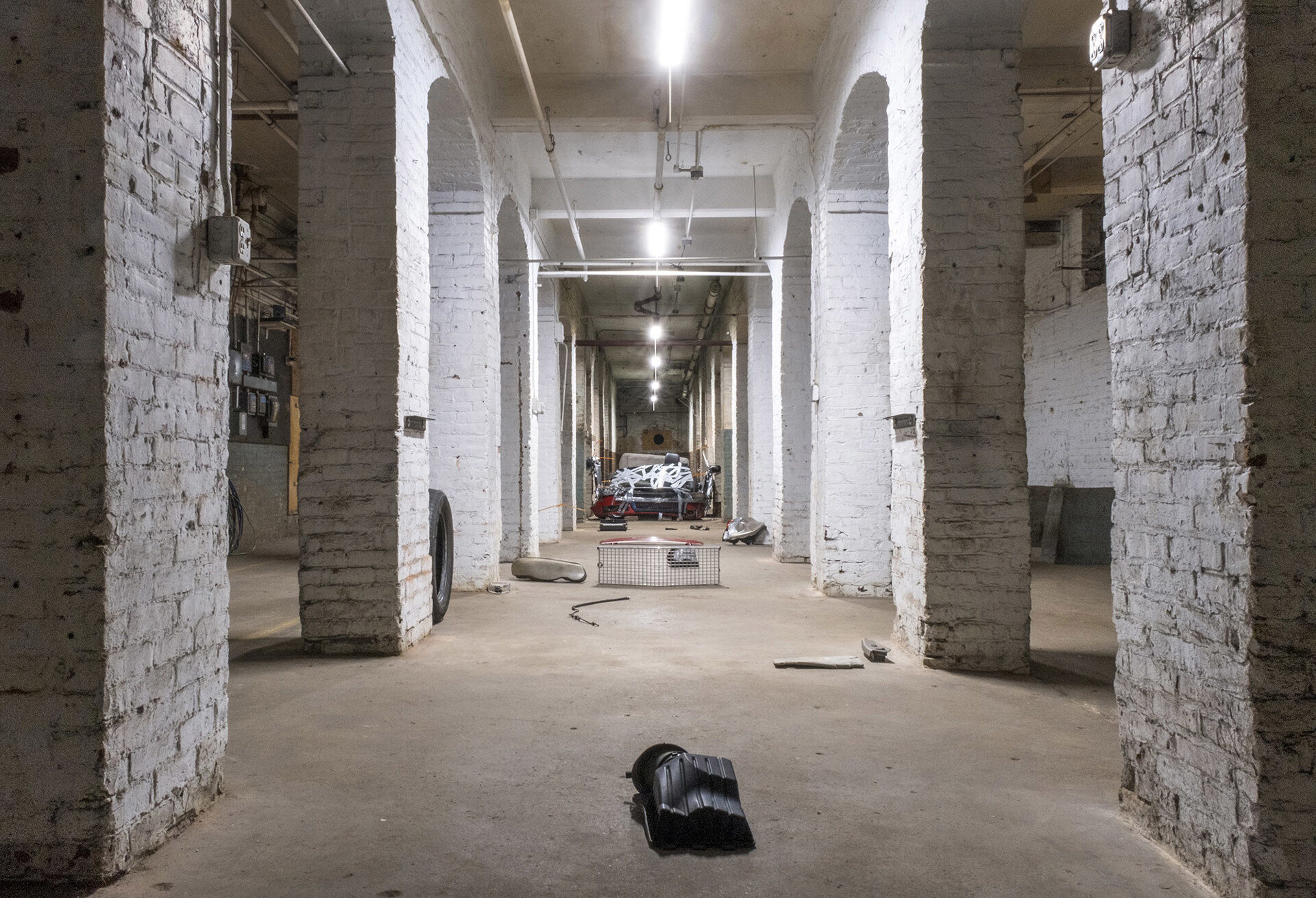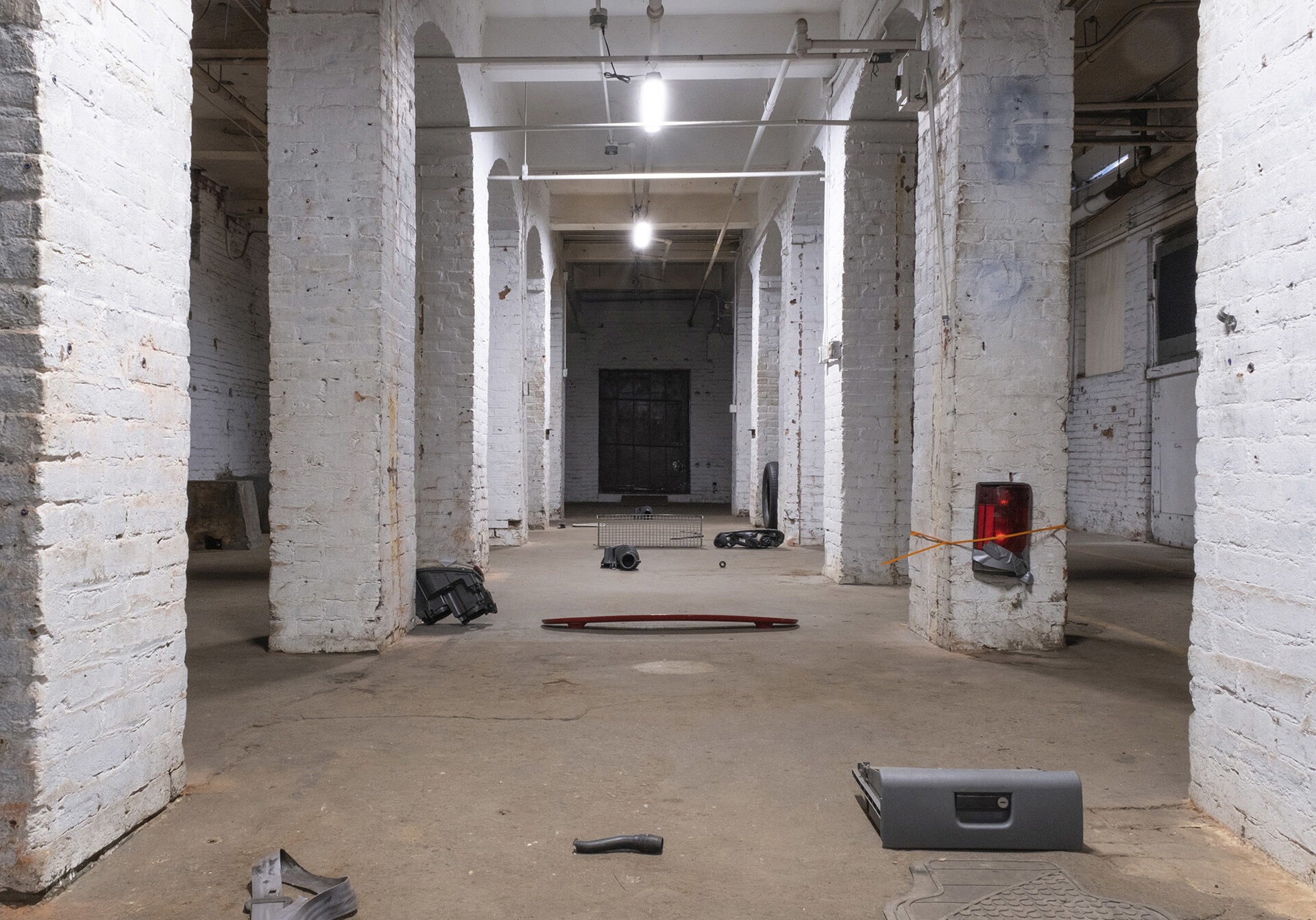In her practice, New York-based sculptor Bat-Ami Rivlin often makes use of unassuming, mass-produced materials such as zip ties, tires, and metal shelving, deploying them in deceptively spare arrangements that bends their intended functionality to logical but self-negating ends. Rivlin’s work is sometimes positioned within a framework of material appropriation—minimalism-inflected commentary on industrial production and the built environment. But although this framing informs her work in a general sense, Rivlin’s practice is ultimately in pursuit of something more slippery, delving into the tensions between phenomenological experience and the cognitive determinism produced by language and context. Her works quietly disrupt and reorient the relationship between familiar materials and the ways we perceive them, acting as subtle perturbations in the cognitive-linguistic mesh that holds our understanding of things and their functions together.