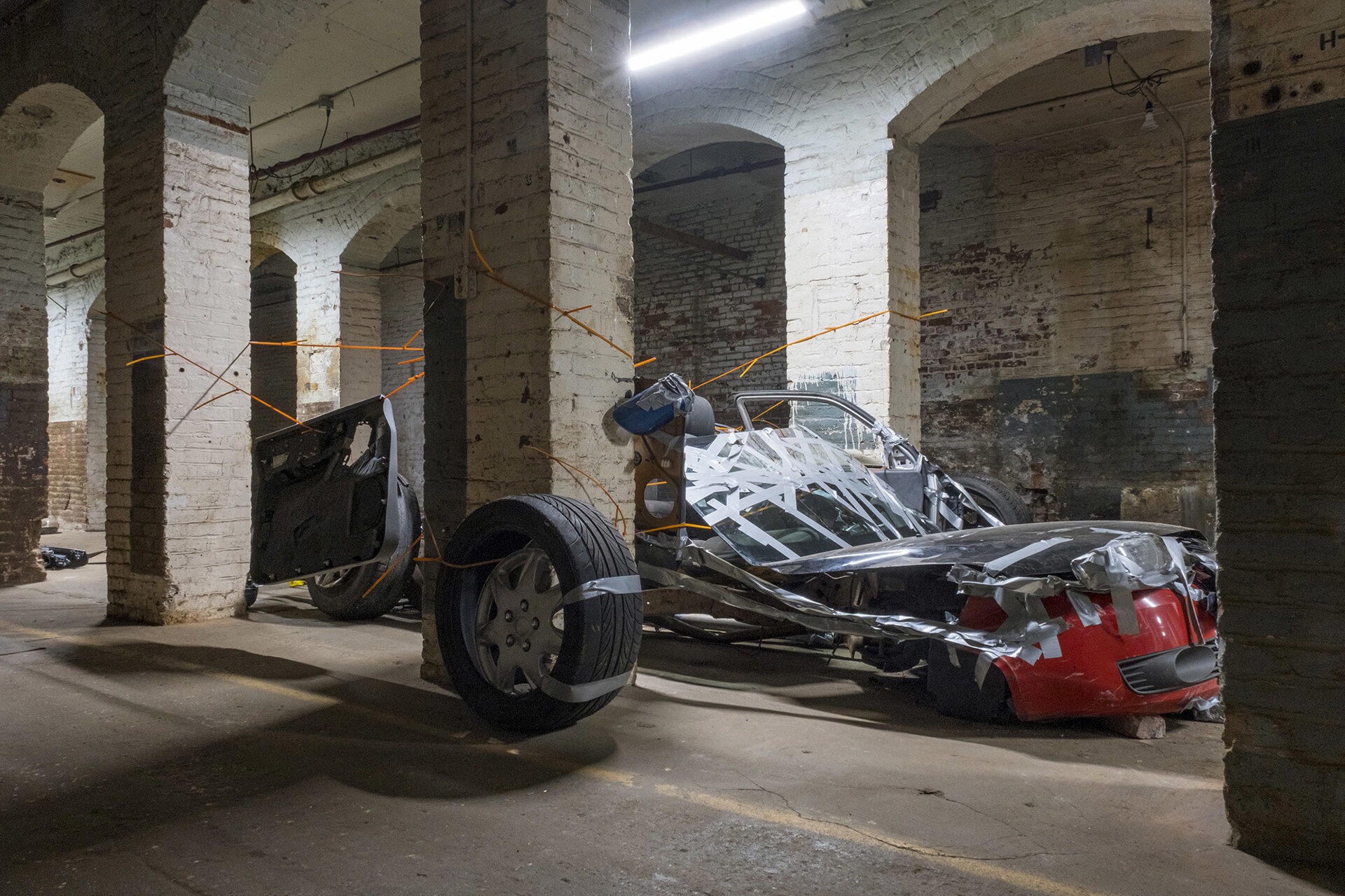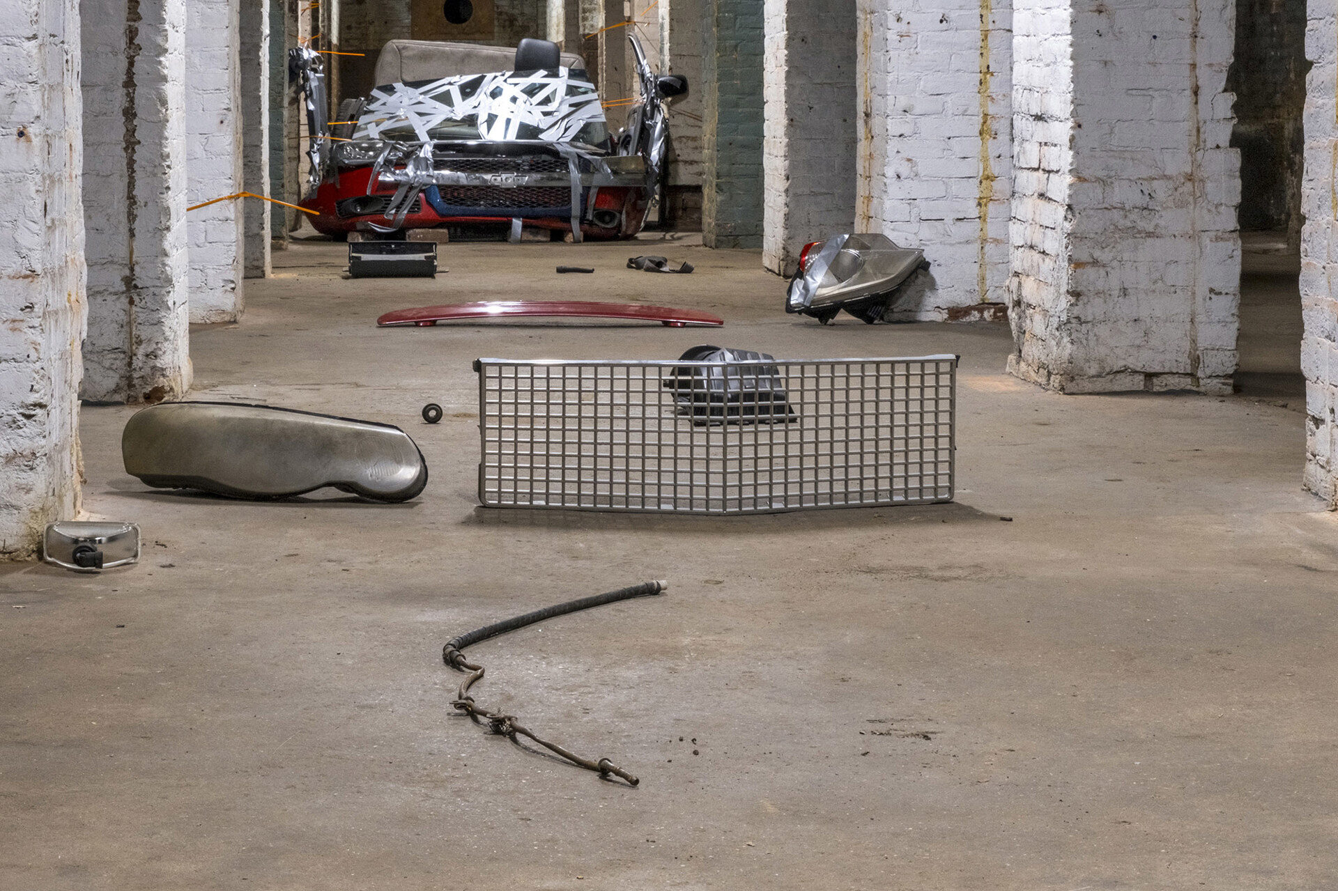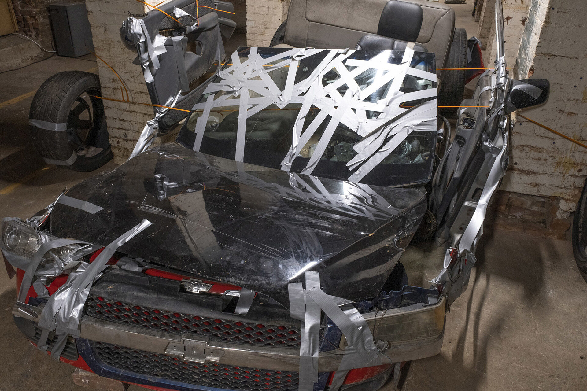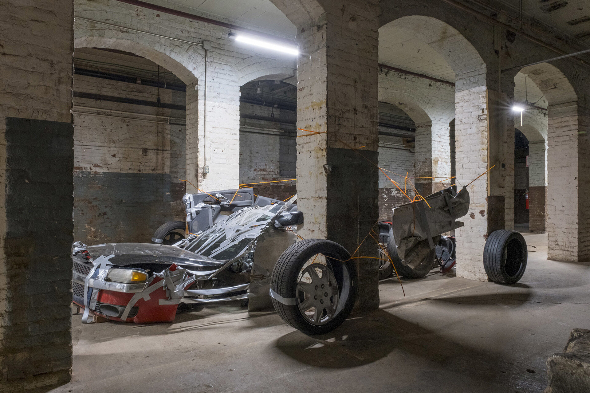 In her practice, New York-based sculptor Bat-Ami Rivlin often makes use of unassuming, mass-produced materials such as zip ties, tires, and metal shelving, deploying them in deceptively spare arrangements that bends their intended functionality to logical but self-negating ends. Rivlin’s work is sometimes positioned within a framework of material appropriation—minimalism-inflected commentary on industrial production and the built environment. But although this framing informs her work in a general sense, Rivlin’s practice is ultimately in pursuit of something more slippery, delving into the tensions between phenomenological experience and the cognitive determinism produced by language and context. Her works quietly disrupt and reorient the relationship between familiar materials and the ways we perceive them, acting as subtle perturbations in the cognitive-linguistic mesh that holds our understanding of things and their functions together.