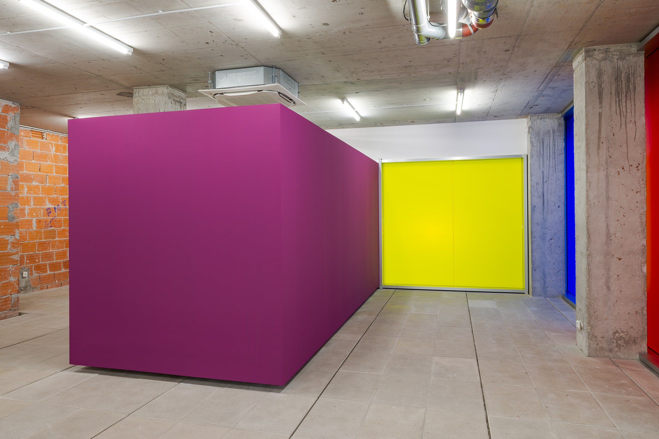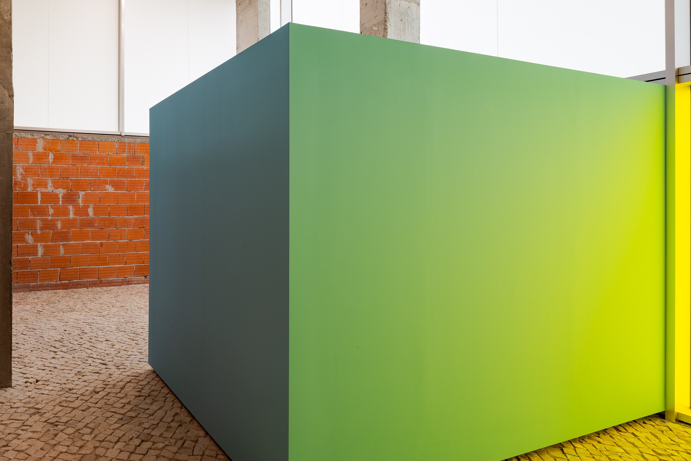 Samba has developed a new, expansive installation for Lumiar Cité, which simultaneously links and scrutinises the rigid geometry and opaque movement patterns of global trade. Using modular architecture, the artist interconnects the history of abstract painting and the modernist grid with global supply chains and their increasingly expanding imprint on lived experiences.