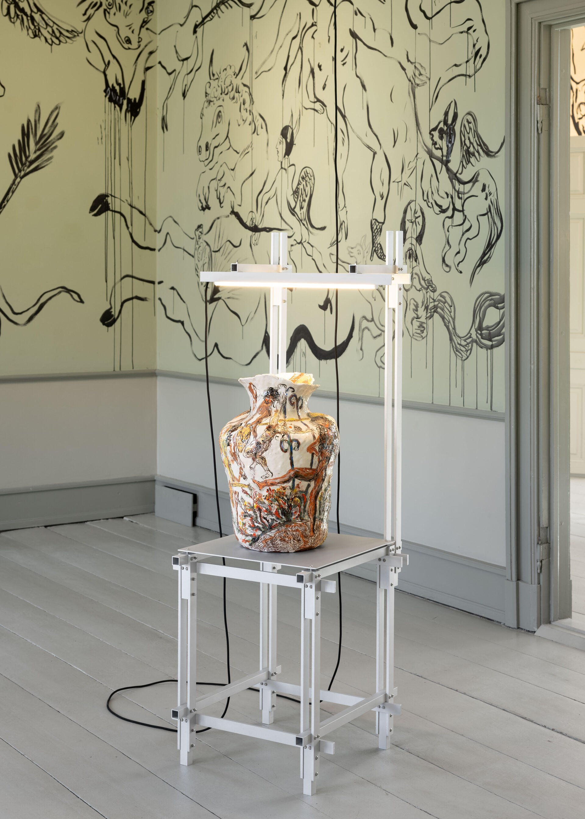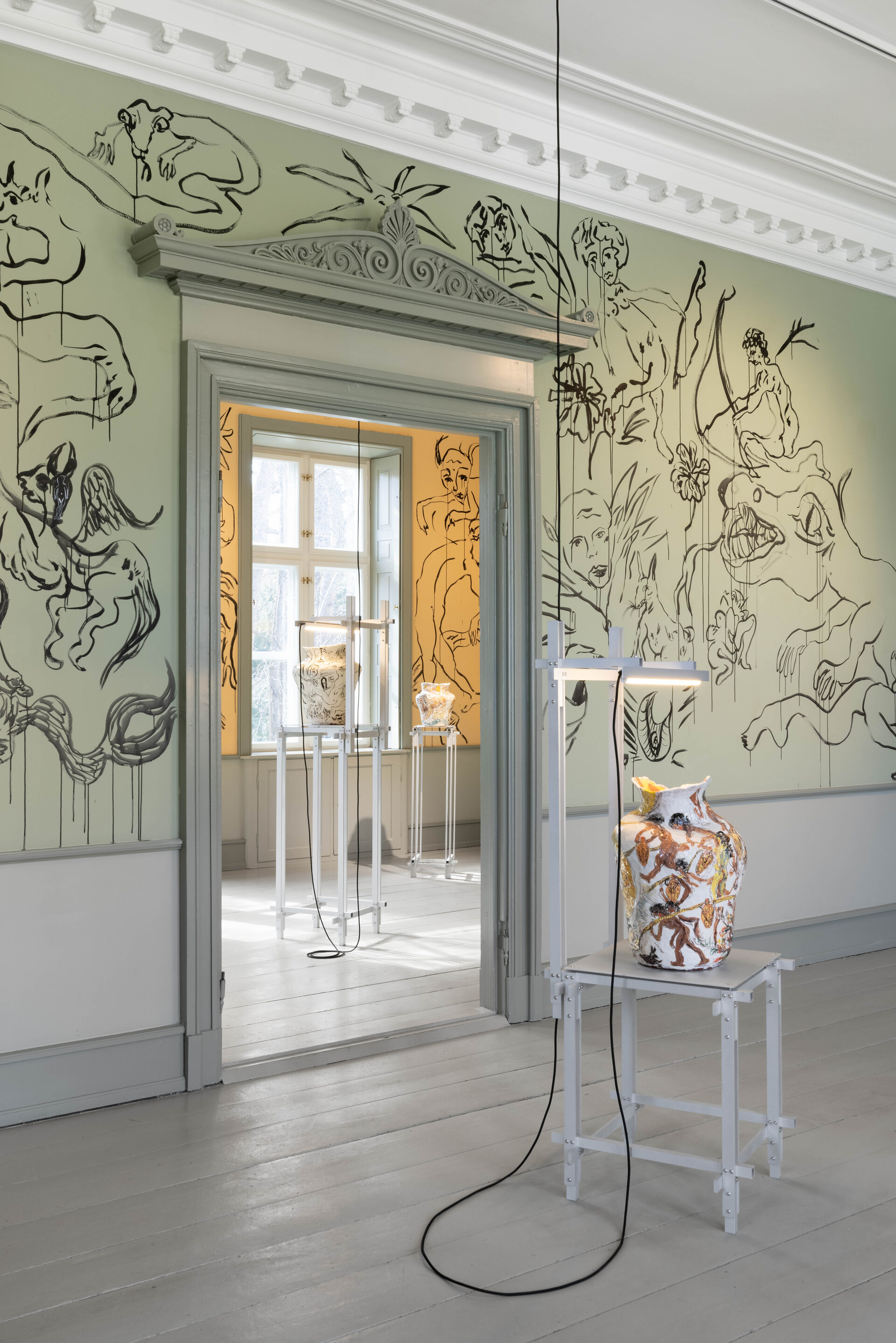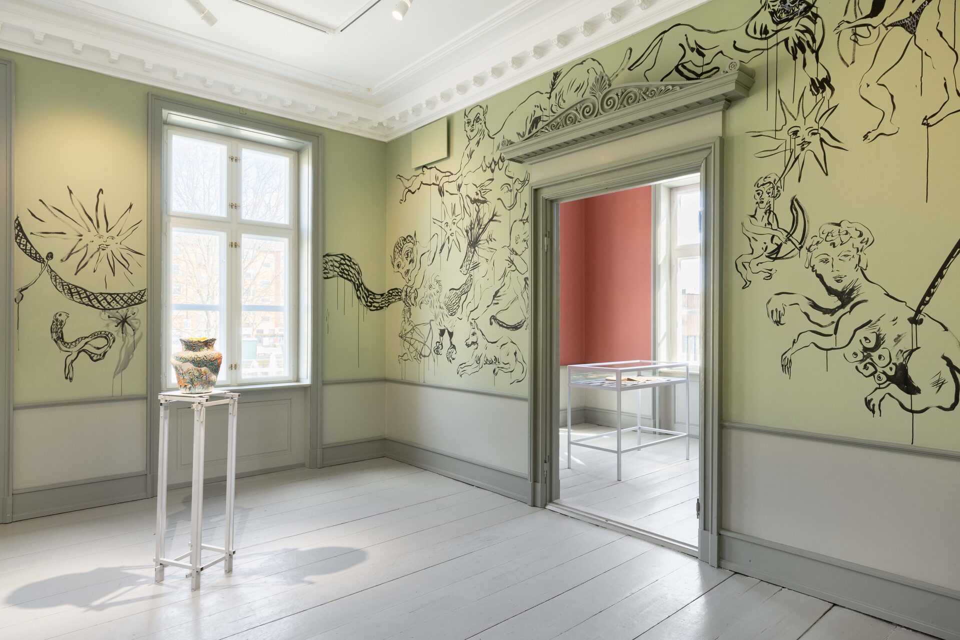 In Boumjimar’s works – here comprised of wall paintings, sculpture, ceramics, and silver casts of bodily fluids – the human being is not at the centre, but one organism among many, shaped, worn down, and decomposed by the same forces that are changing the ecosystems around it. Thus, the exhibition evokes an understanding of the body in…