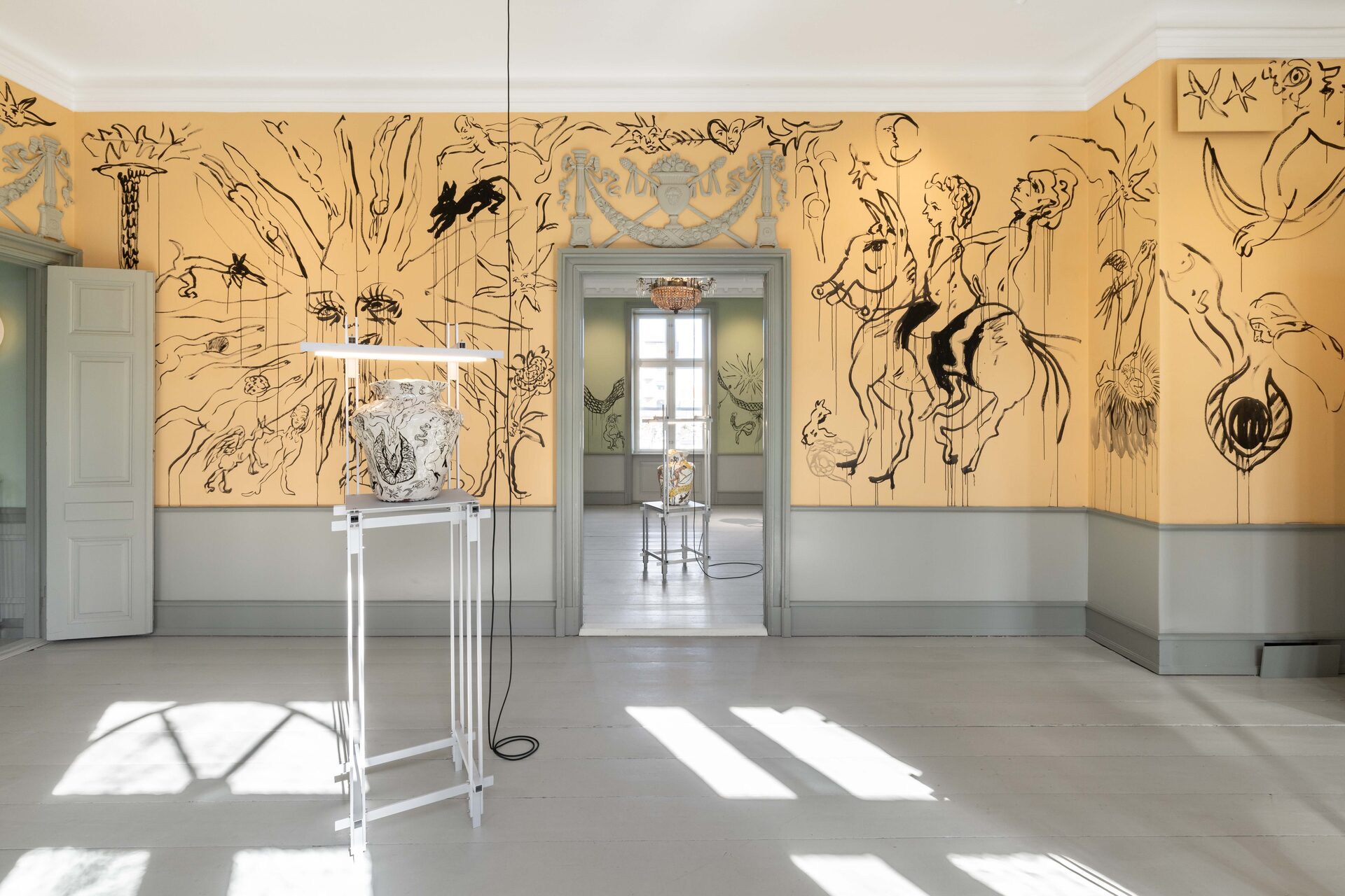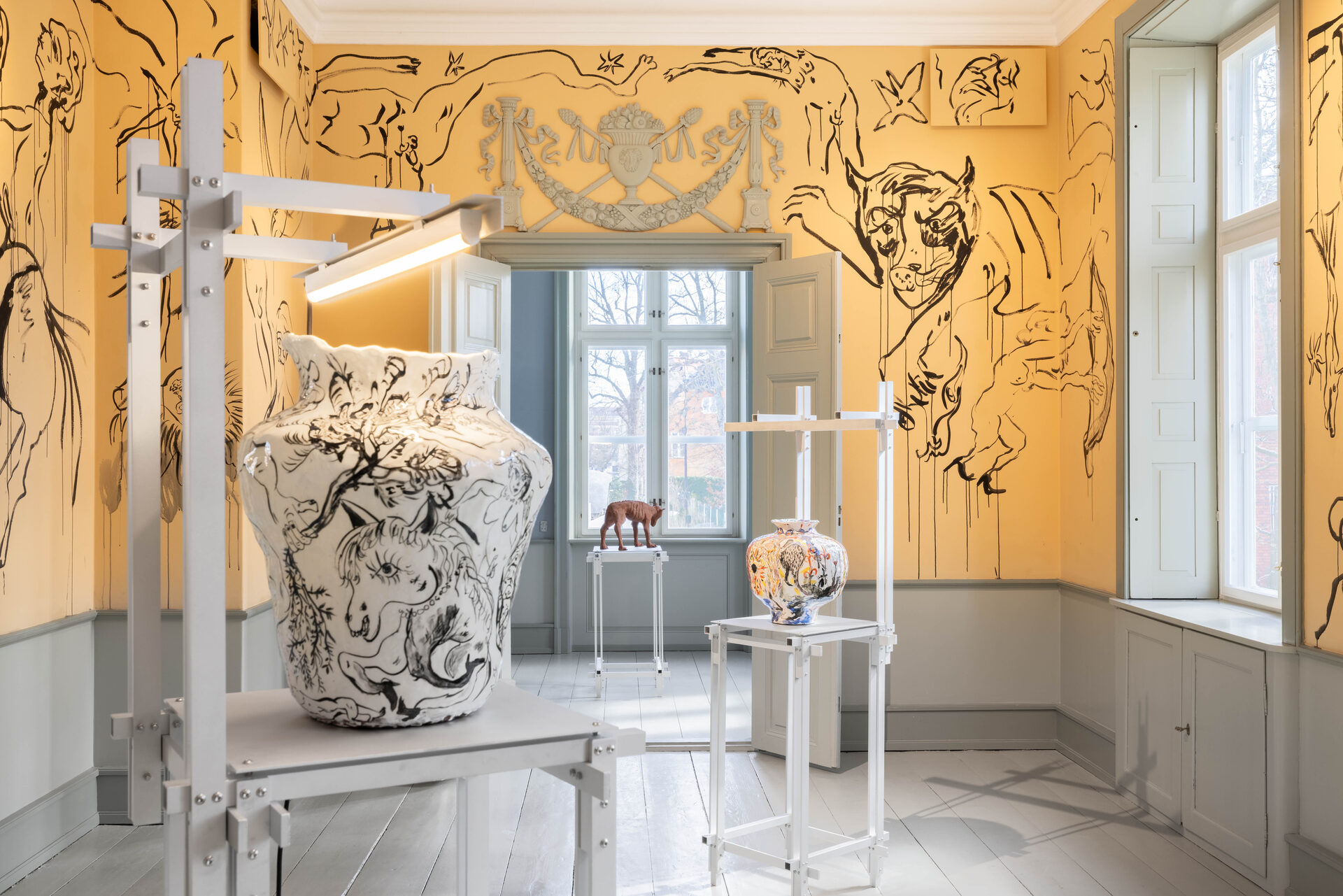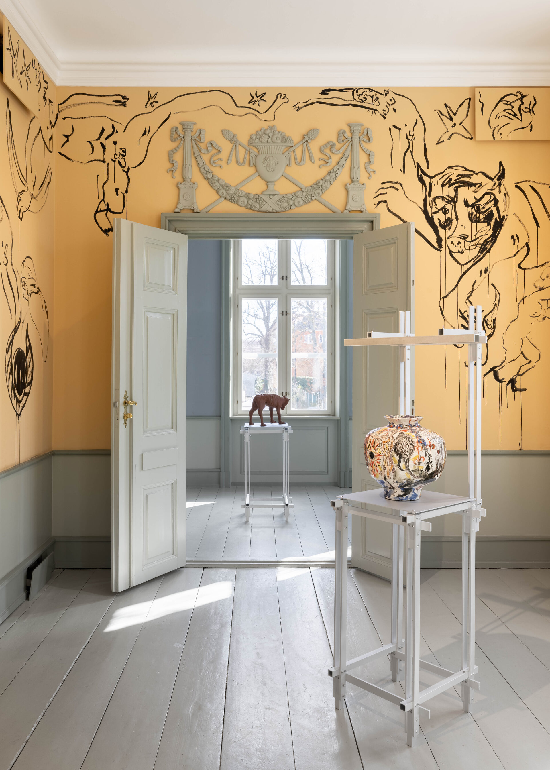 In Boumjimar’s works – here comprised of wall paintings, sculpture, ceramics, and silver casts of bodily fluids – the human being is not at the centre, but one organism among many, shaped, worn down, and decomposed by the same forces that are changing the ecosystems around it. Thus, the exhibition evokes an understanding of the body in…
